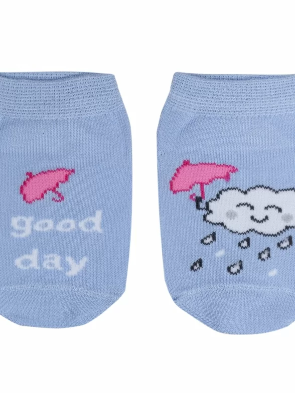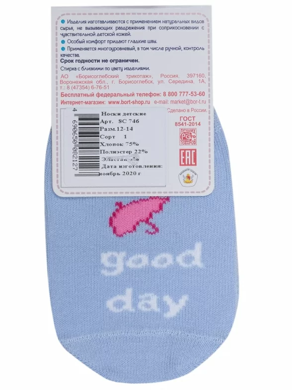 Круглогодичные короткие детские носки, цвет голубой, разного цвета, повседневные, шов обычный (не бесшовные), принт (рисунок): надписи, звезды / небо, с узором, состав: 75% хлопок, 22% полиэстер, 3% эластан, арт. 8С746. Производитель «АО Борисоглебский трикотаж, Воронежская обл, Россия» под брендом «Борисоглебский трикотаж».