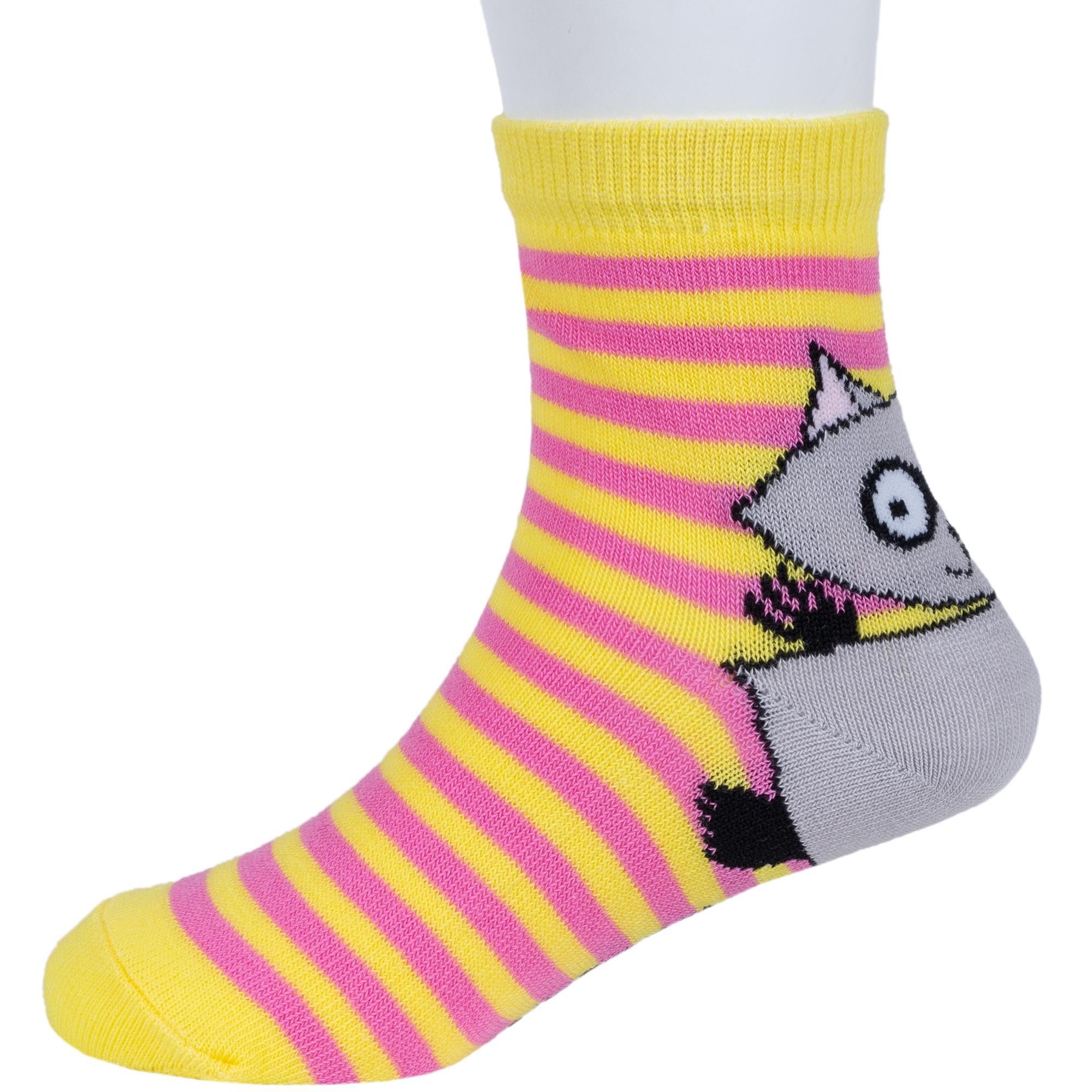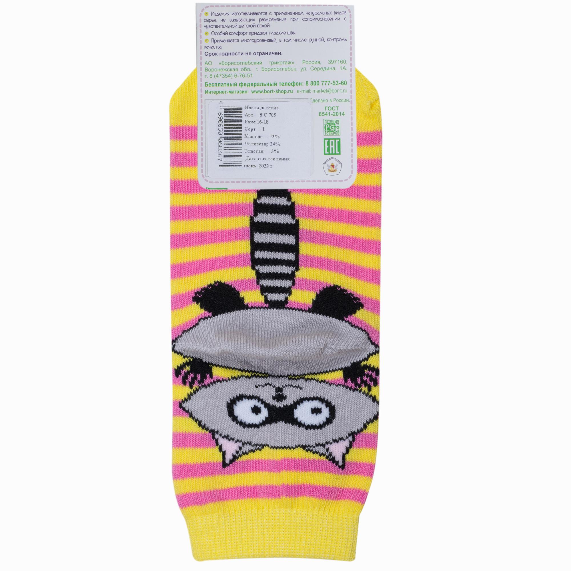 Круглогодичные укороченные детские носки, цвет многоцветные (мультиколор), повседневные, шов обычный (не бесшовные), принт (рисунок): животные, с узором, состав: 73% хлопок, 24% полиэстер, 3% эластан, арт. 8С705. Производитель «АО Борисоглебский трикотаж, Воронежская обл, Россия» под брендом «Борисоглебский трикотаж».
