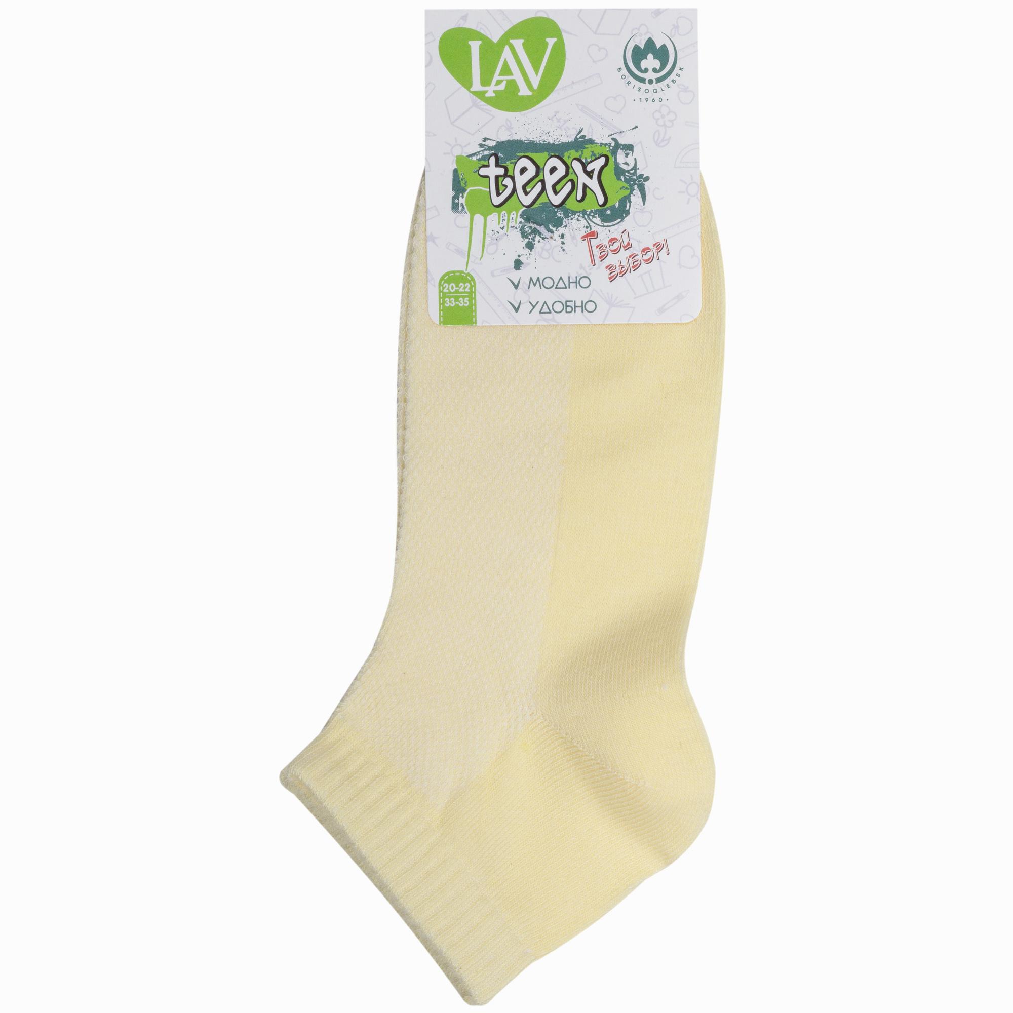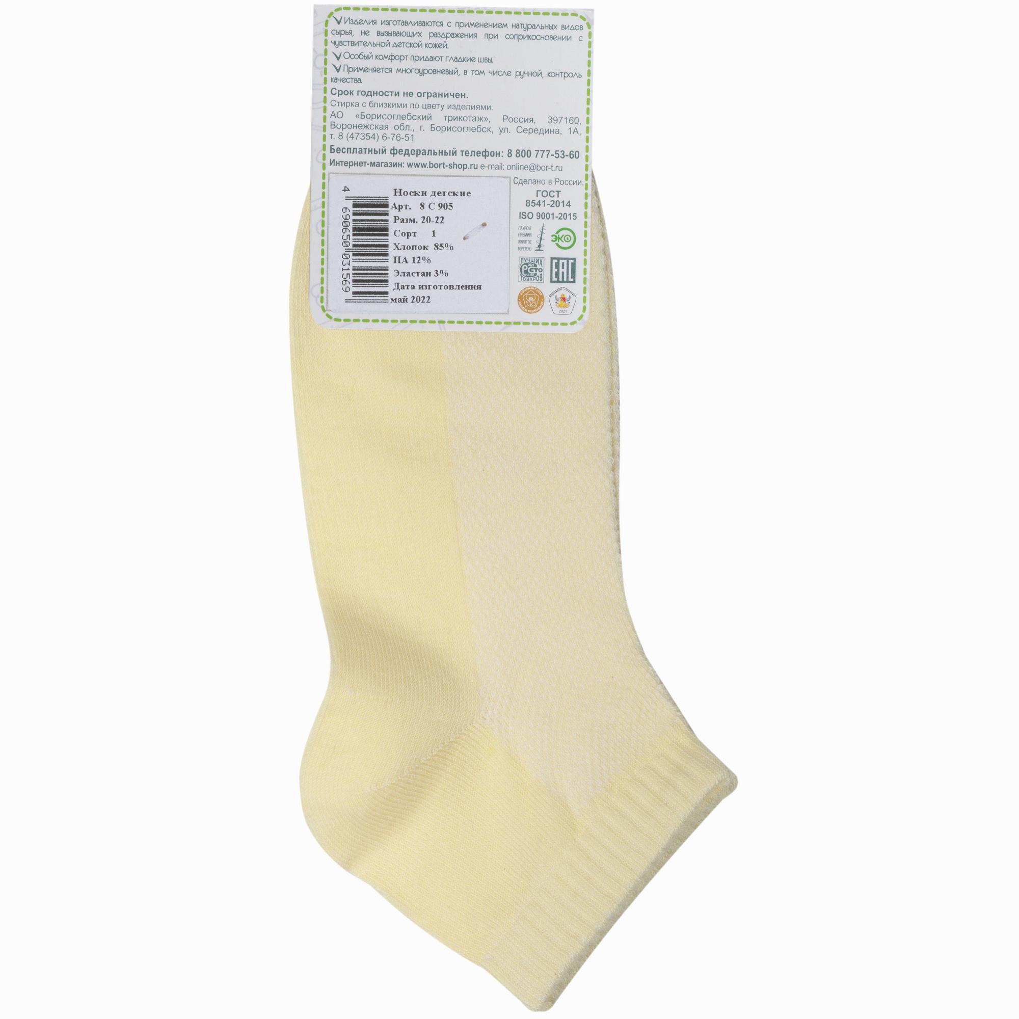 Летние короткие детские носки, цвет желтый, в сеточку, спортивные, классические, шов обычный (не бесшовные), принт (рисунок): однотонный, состав: 85% хлопок, 12% полиамид, 3% эластан, арт. 8С905. Производитель «АО Борисоглебский трикотаж, Воронежская обл, Россия» под брендом «Борисоглебский трикотаж».