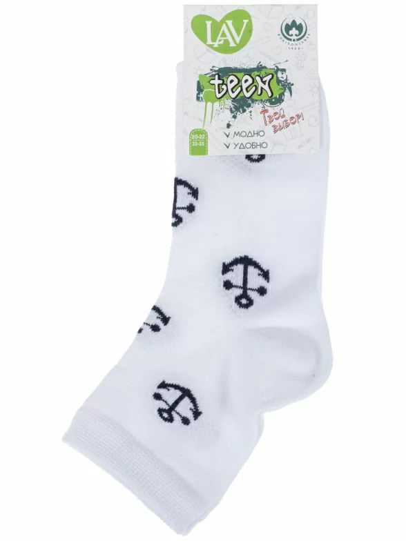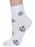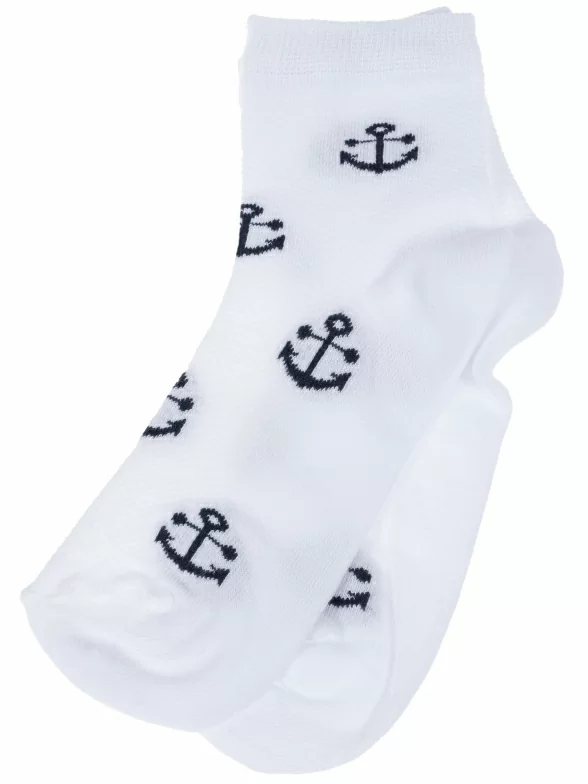 Летние укороченные детские носки, цвет белый, в сеточку, ажурные, повседневные, шов обычный (не бесшовные), принт (рисунок): море, с узором, состав: 67% хлопок, 30% полиэстер, 3% эластан, арт. 8С3000/4. Производитель «АО Борисоглебский трикотаж, Воронежская обл, Россия» под брендом «Борисоглебский трикотаж».