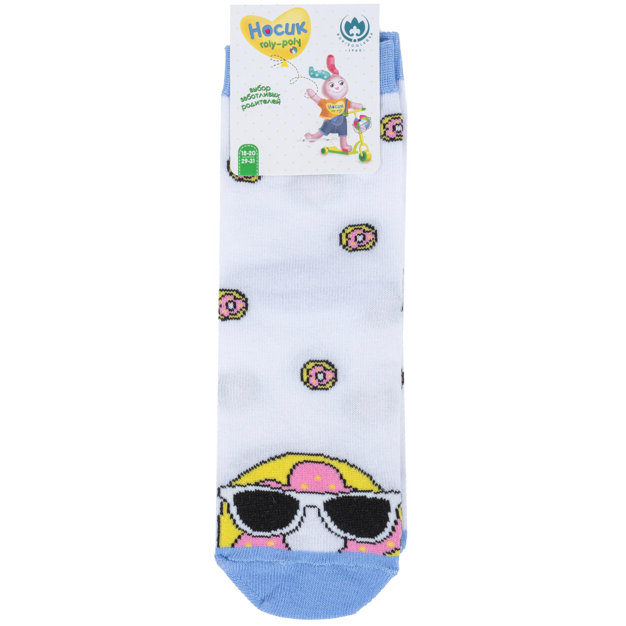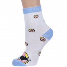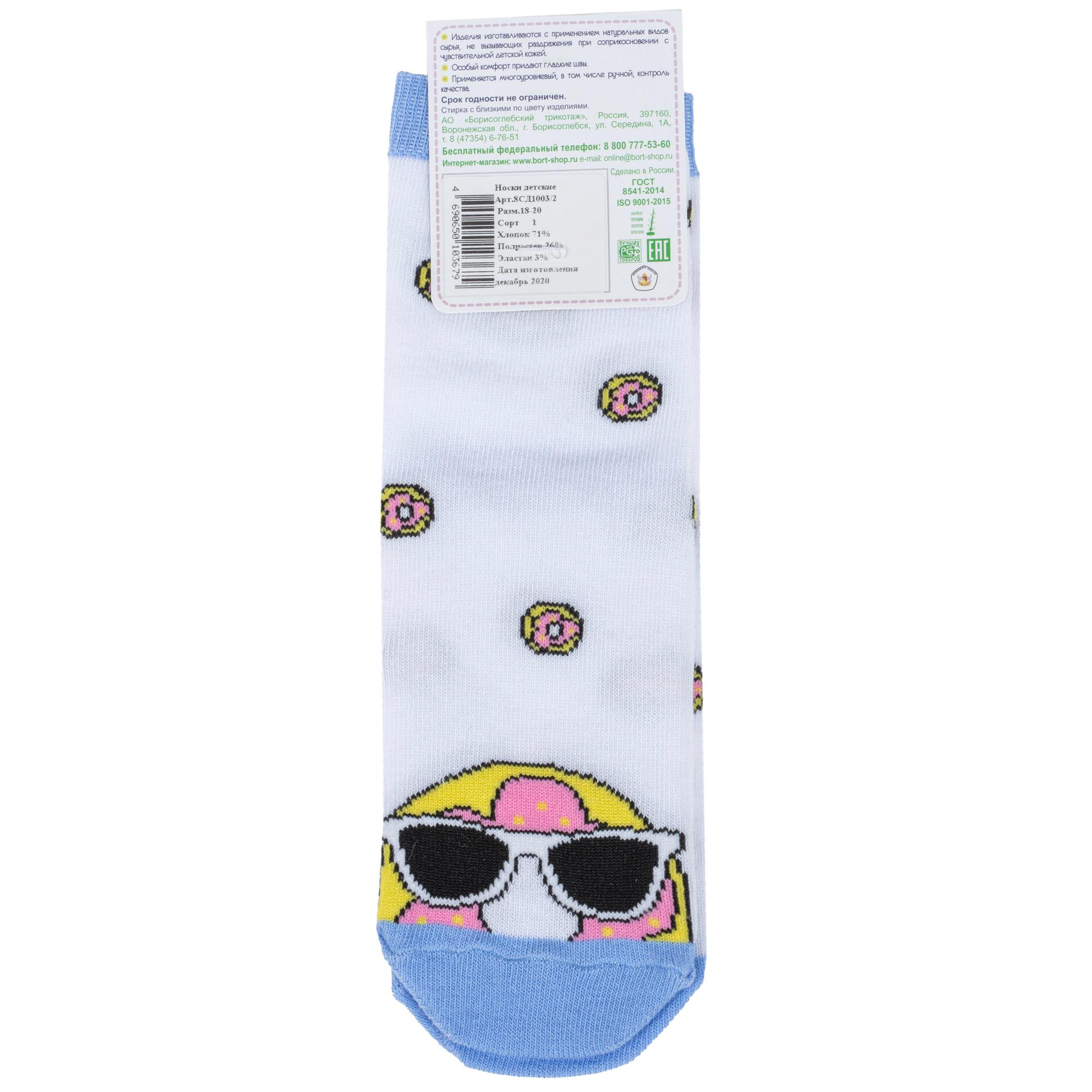 Круглогодичные укороченные детские носки, цвет белый, повседневные, шов обычный (не бесшовные), принт (рисунок): контрастные пятка / мысок / резинка, еда и напитки, с узором, состав: 71% хлопок, 26% полиэстер, 3% эластан, арт. 8СД1003/2. Производитель «АО Борисоглебский трикотаж, Воронежская обл, Россия» под брендом «Борисоглебский трикотаж».