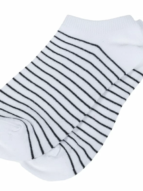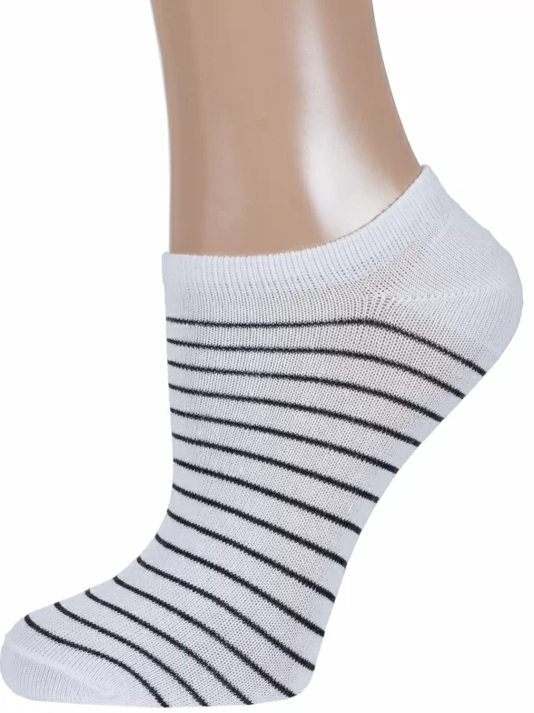 Круглогодичные ультракороткие детские носки, цвет белый, классические, шов обычный (не бесшовные), принт (рисунок): полоски, с узором, состав: 72% хлопок, 25% полиэстер, 3% эластан, арт. 8СД3003/2. Производитель «АО Борисоглебский трикотаж, Воронежская обл, Россия» под брендом «Борисоглебский трикотаж».