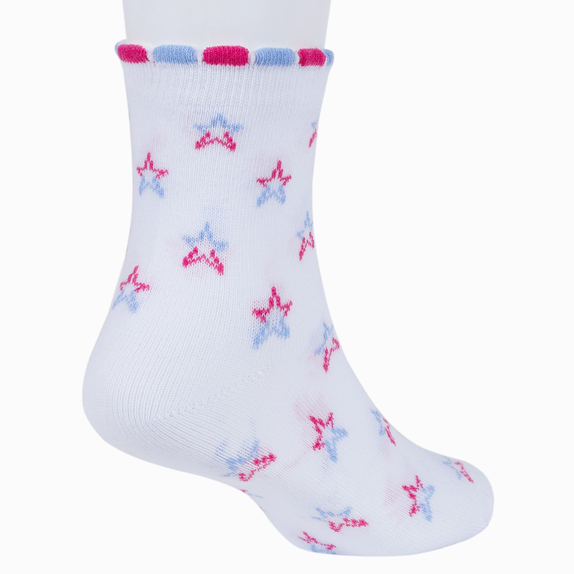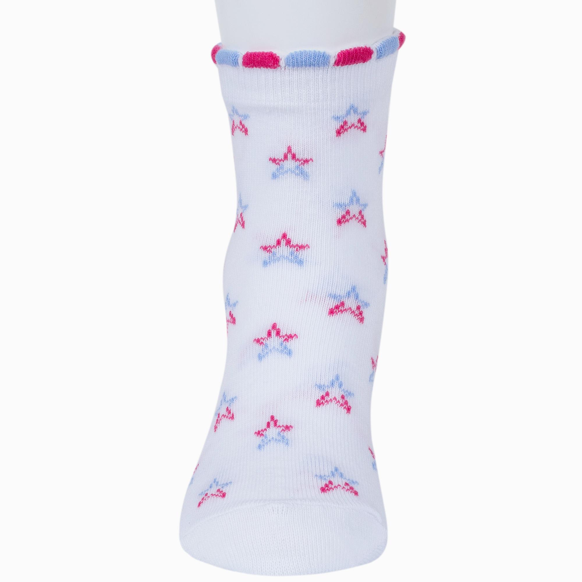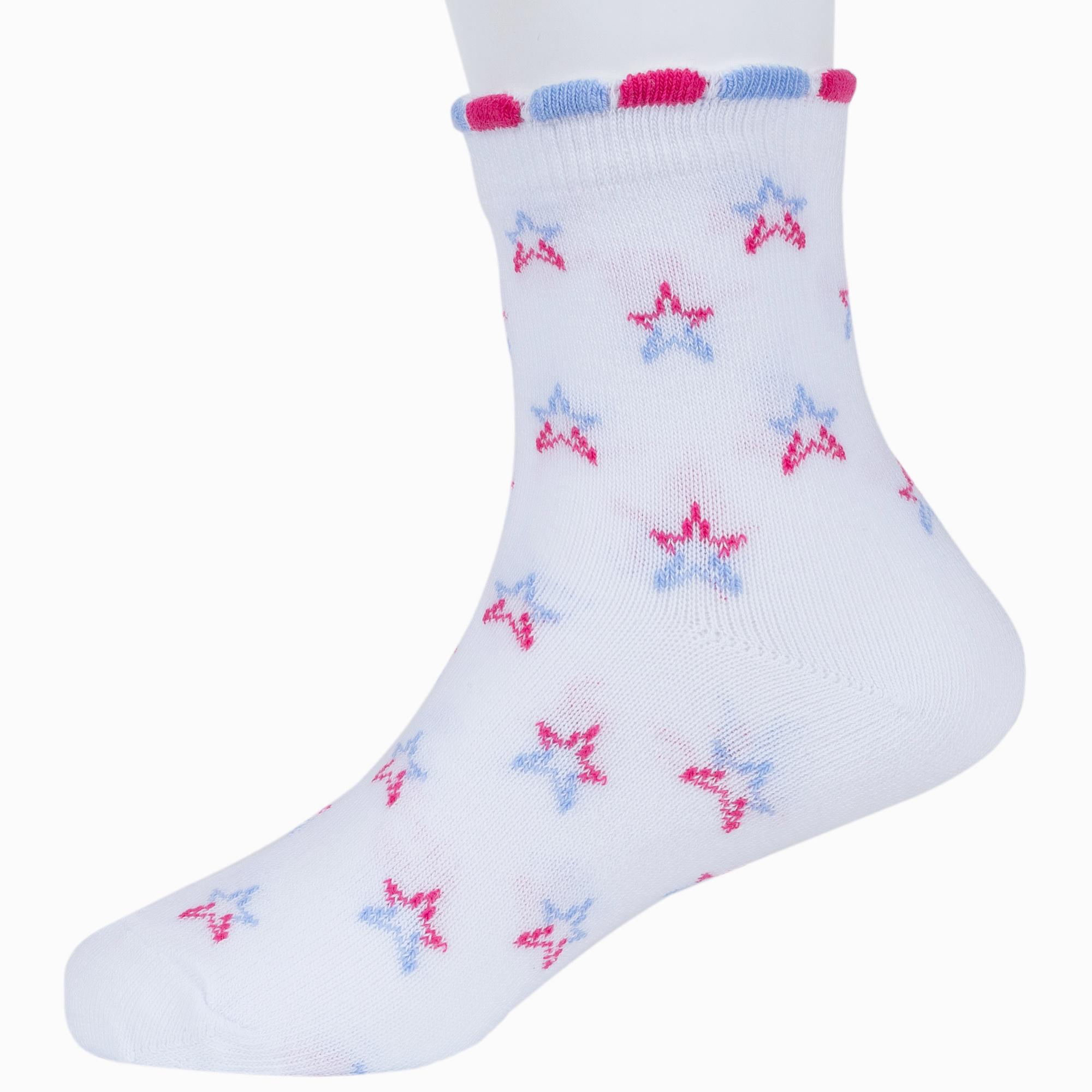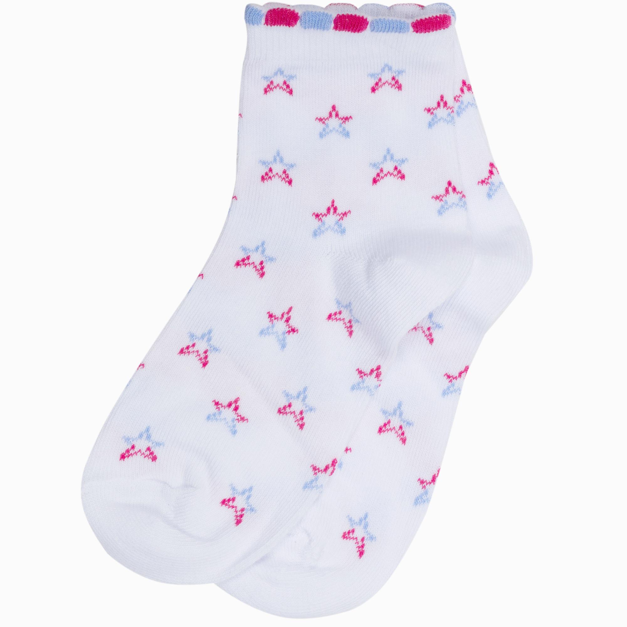 Круглогодичные укороченные детские носки, цвет белый, повседневные, шов обычный (не бесшовные), принт (рисунок): с узором, звезды / небо, состав: 72% хлопок, 25% полиэстер, 3% эластан, арт. 8С3. Производитель «АО Борисоглебский трикотаж, Воронежская обл, Россия» под брендом «Борисоглебский трикотаж».