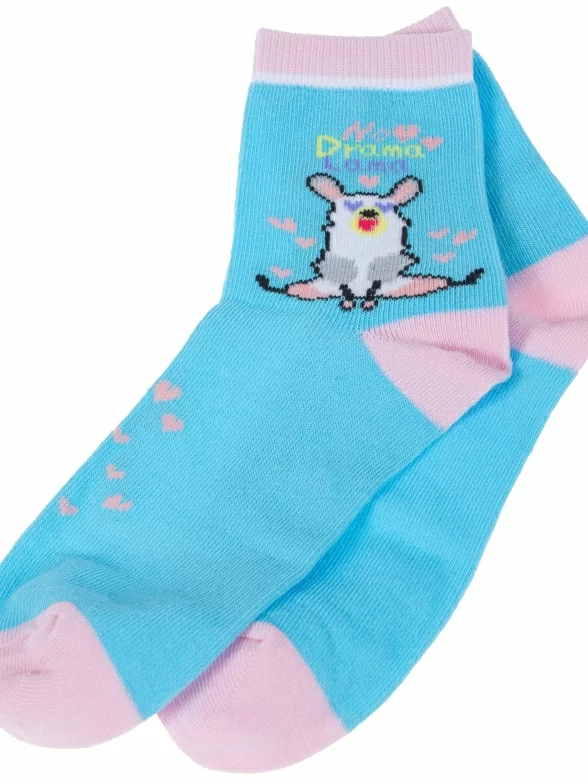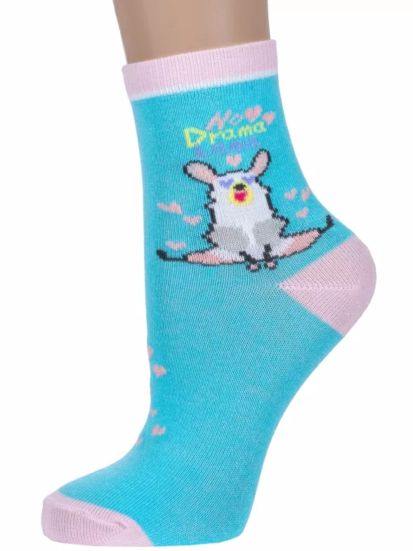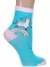 Круглогодичные укороченные детские носки, цвет бирюзовый, разного цвета, повседневные, шов обычный (не бесшовные), принт (рисунок): надписи, контрастные пятка / мысок / резинка, животные, с узором, состав: 70% хлопок, 27% полиэстер, 3% эластан, арт. 8С226/2. Производитель «АО Борисоглебский трикотаж, Воронежская обл, Россия» под брендом «Борисоглебский трикотаж».