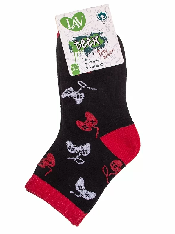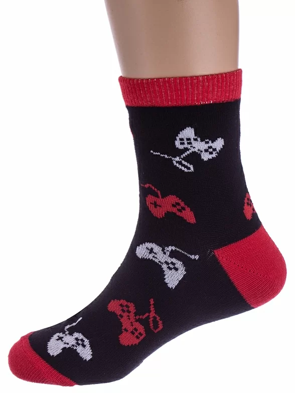 Круглогодичные средней длины детские носки, цвет черный, прикольные, состав: 71% хлопок, 26% полиэстер, 3% эластан, фабричный артикул 8С230. Производитель «АО Борисоглебский трикотаж, Воронежская обл, Россия» под брендом «Борисоглебский трикотаж».