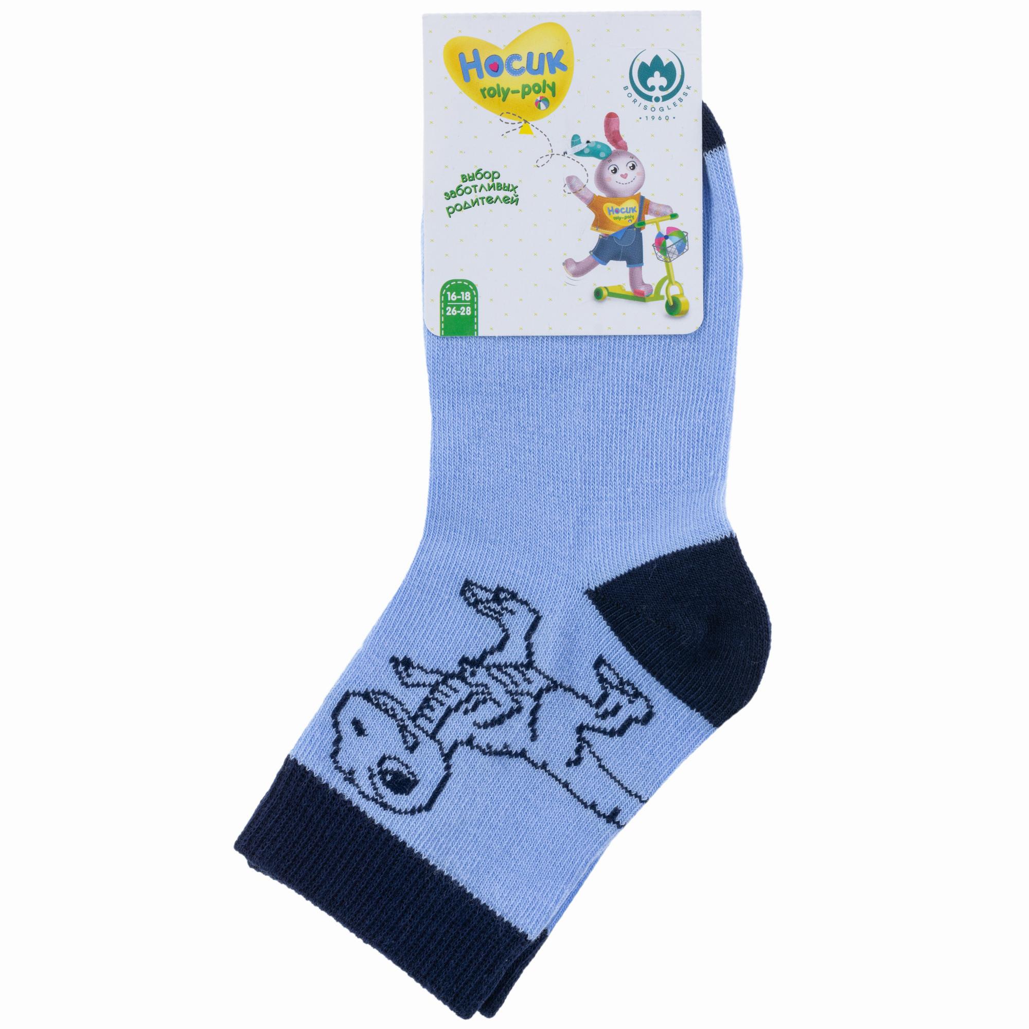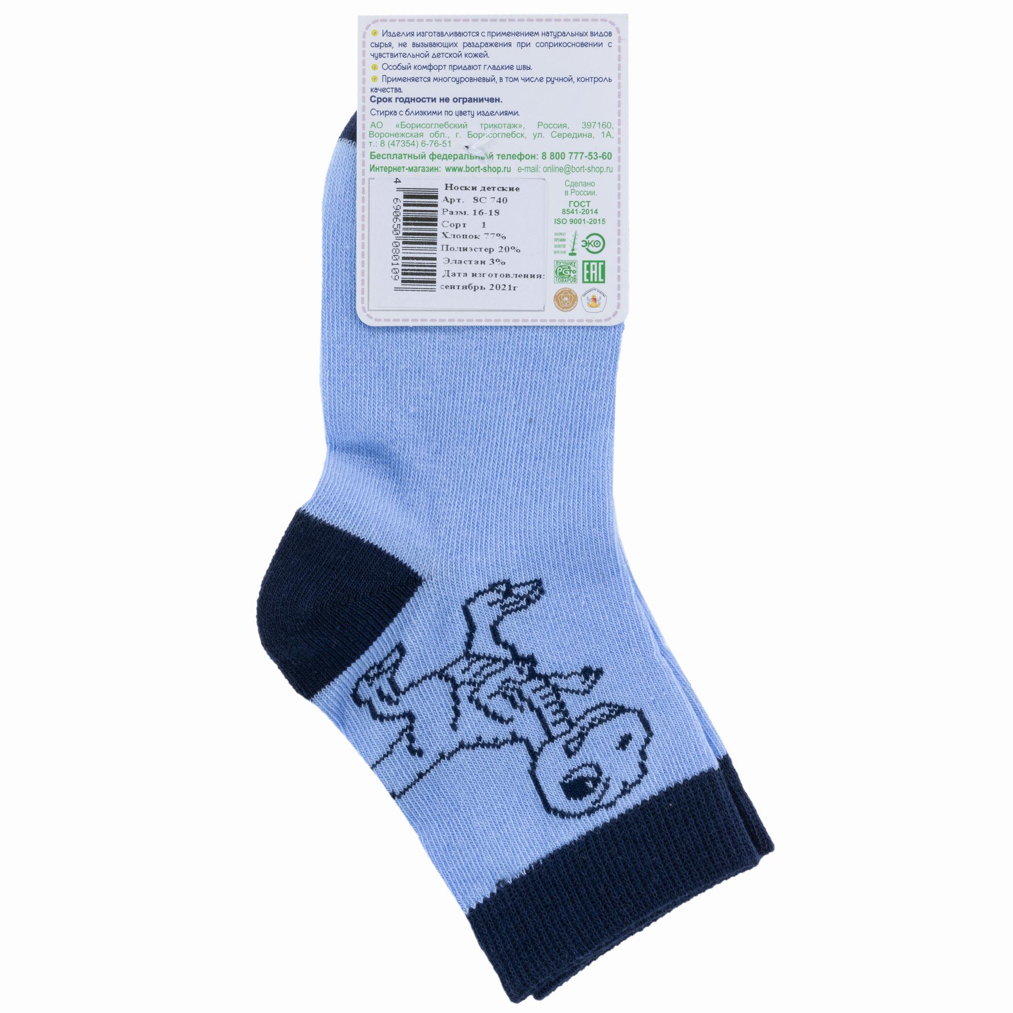 Круглогодичные укороченные детские носки, цвет голубой, повседневные, шов обычный (не бесшовные), принт (рисунок): животные, с узором, состав: 77% хлопок, 20% полиэстер, 3% эластан, арт. 8С740. Производитель «АО Борисоглебский трикотаж, Воронежская обл, Россия» под брендом «Борисоглебский трикотаж».
