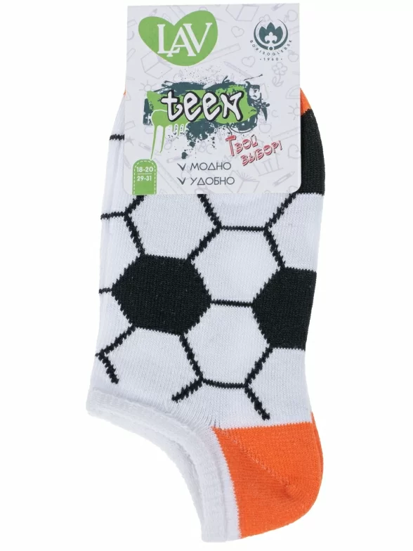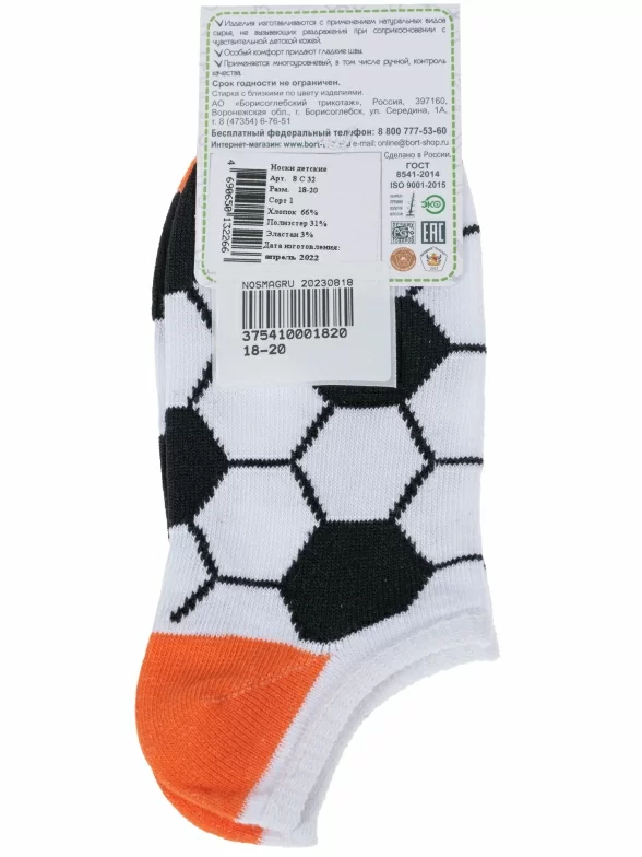 Летние ультракороткие детские носки, цвет многоцветные (мультиколор), повседневные, шов обычный (не бесшовные), принт (рисунок): спортивные, контрастные пятка / мысок / резинка, с узором, состав: 66% хлопок, 31% полиэстер, 3% эластан, арт. 8С32. Производитель «АО Борисоглебский трикотаж, Воронежская обл, Россия» под брендом «Борисоглебский трикотаж».