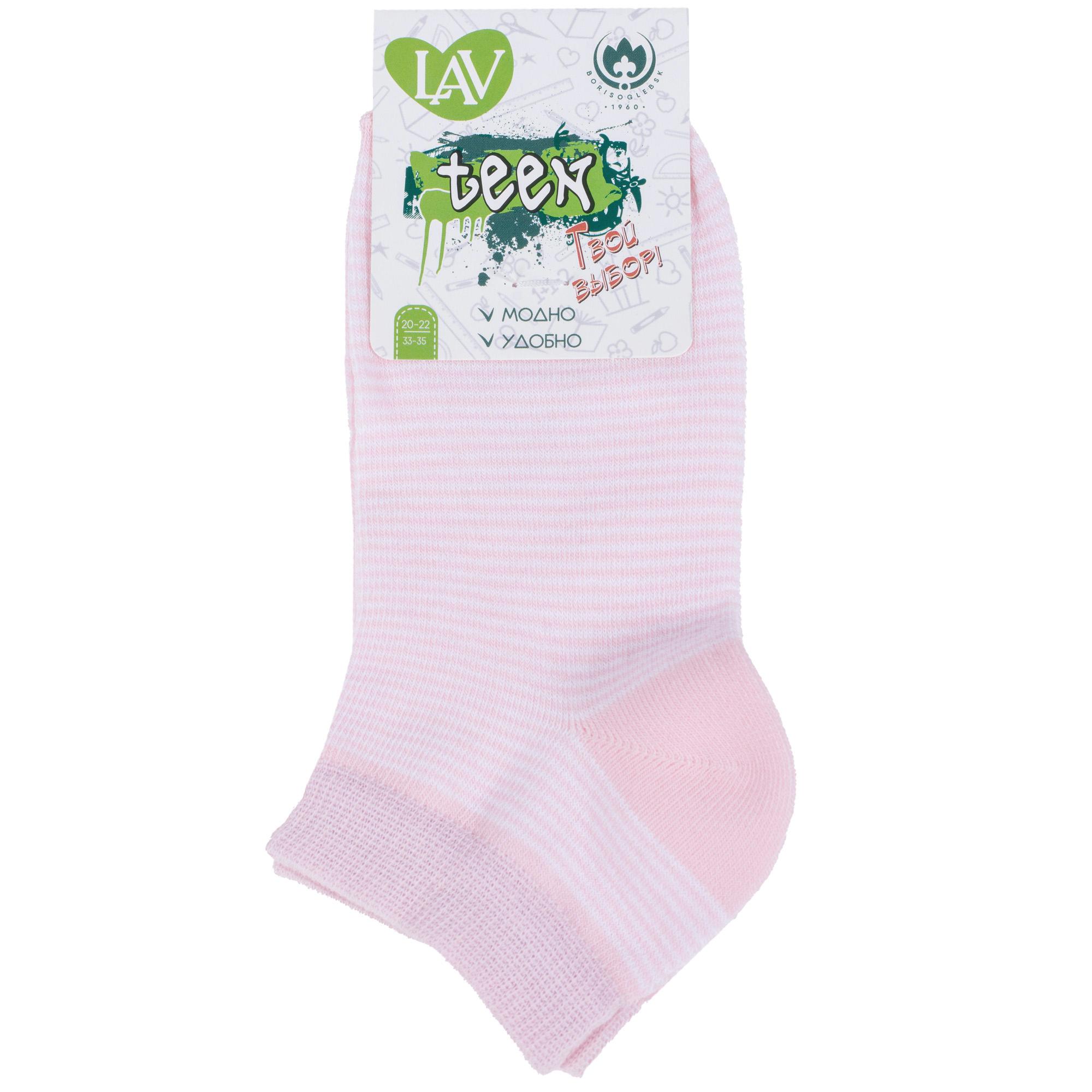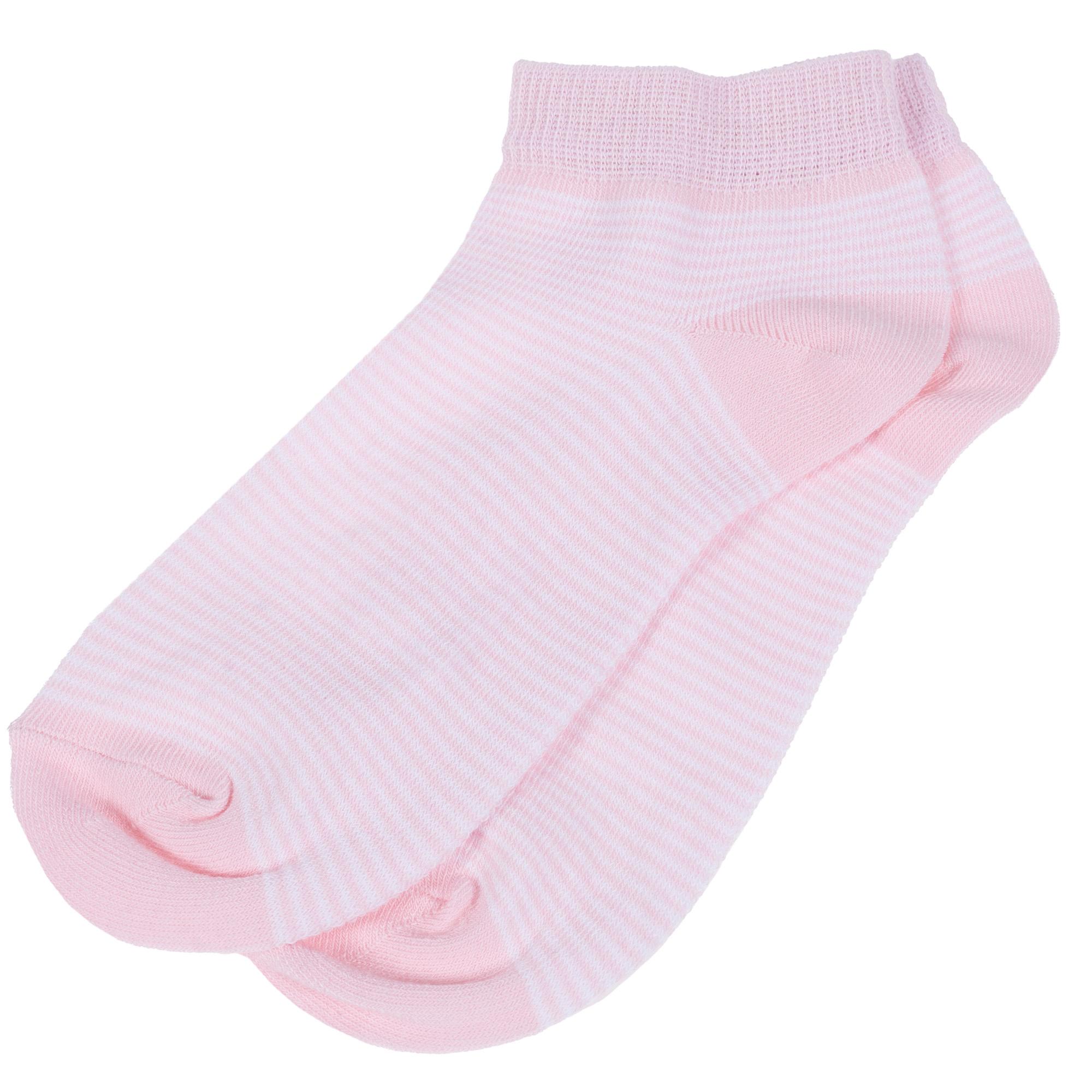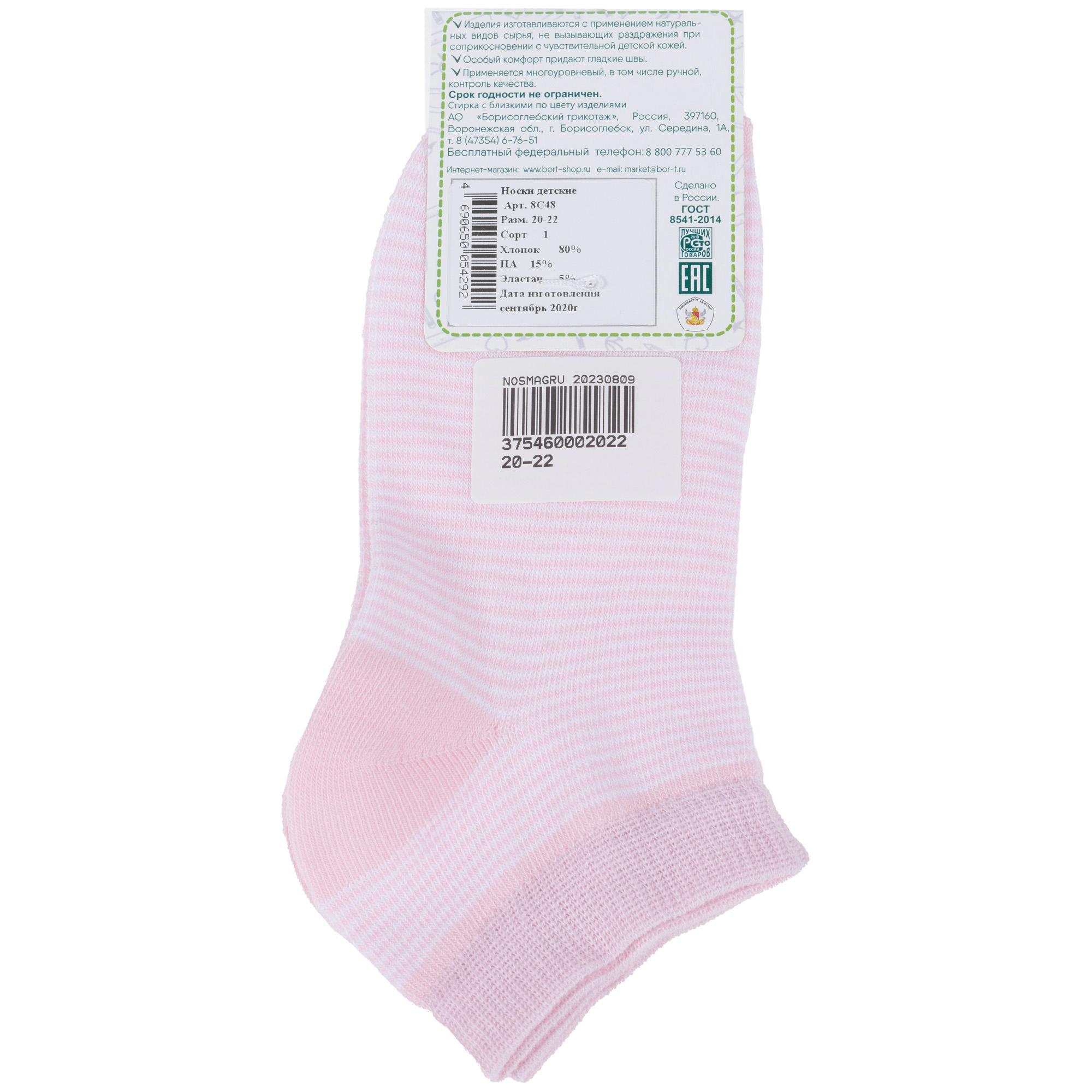 Летние короткие детские носки, цвет розовый, классические, шов обычный (не бесшовные), принт (рисунок): полоски, с узором, состав: 80% хлопок, 15% полиамид, 5% эластан, арт. 8С48. Производитель «АО Борисоглебский трикотаж, Воронежская обл, Россия» под брендом «Борисоглебский трикотаж».
