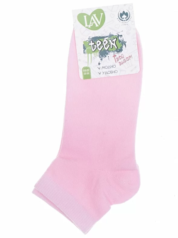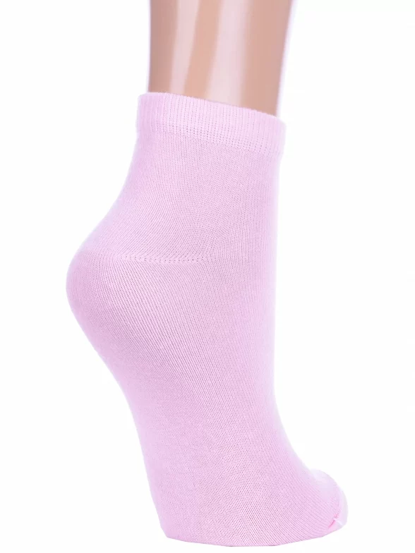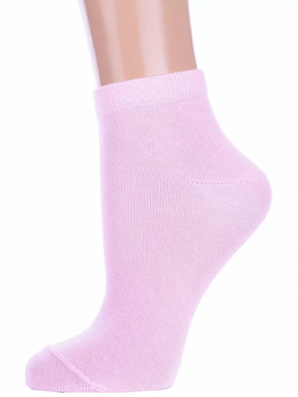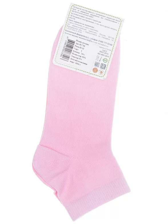 Круглогодичные укороченные детские носки, цвет розовый, классические, шов обычный (не бесшовные), принт (рисунок): однотонный, без рисунков/узоров, состав: 74% хлопок, 23% полиэстер, 3% эластан, арт. 8С720. Производитель «АО Борисоглебский трикотаж, Воронежская обл, Россия» под брендом «Борисоглебский трикотаж».