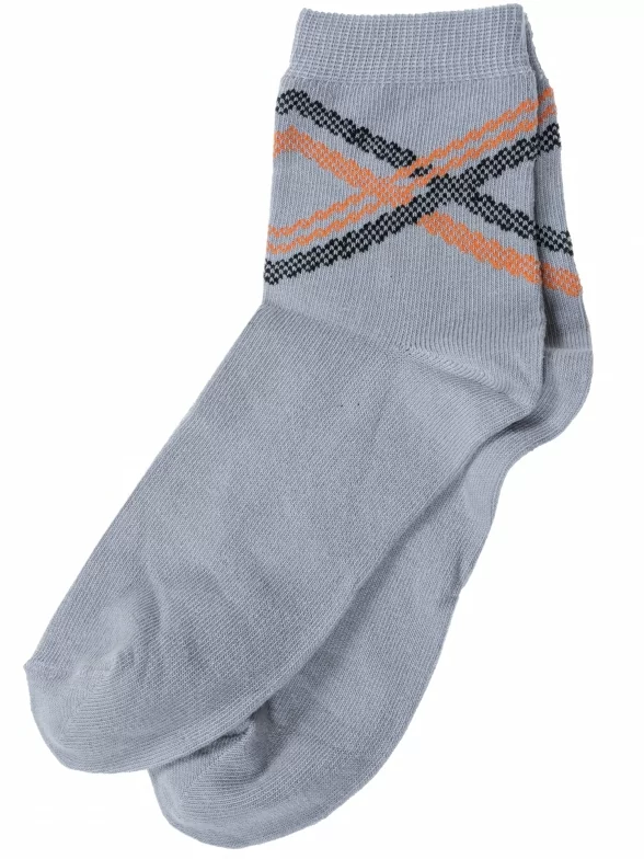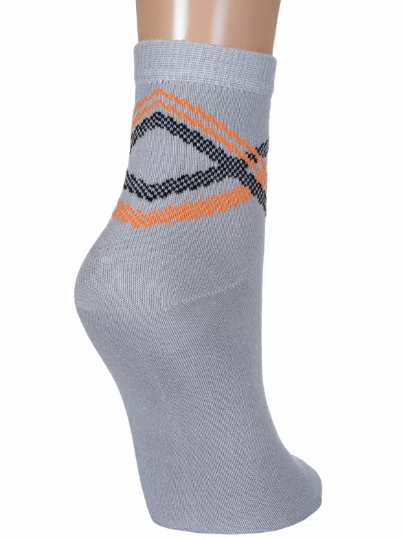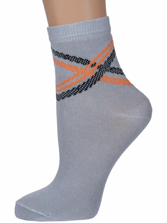 Круглогодичные укороченные детские носки, цвет серый, классические, шов обычный (не бесшовные), принт (рисунок): полоски, абстрактный, с узором, состав: 73% хлопок, 24% полиэстер, 3% эластан, арт. 8С761. Производитель «АО Борисоглебский трикотаж, Воронежская обл, Россия» под брендом «Борисоглебский трикотаж».