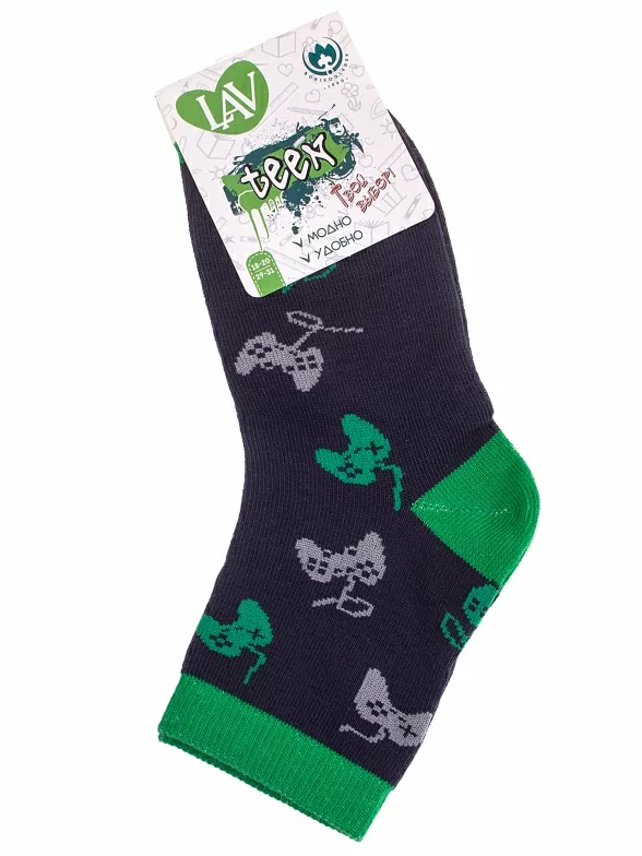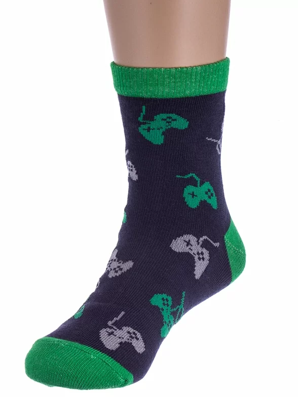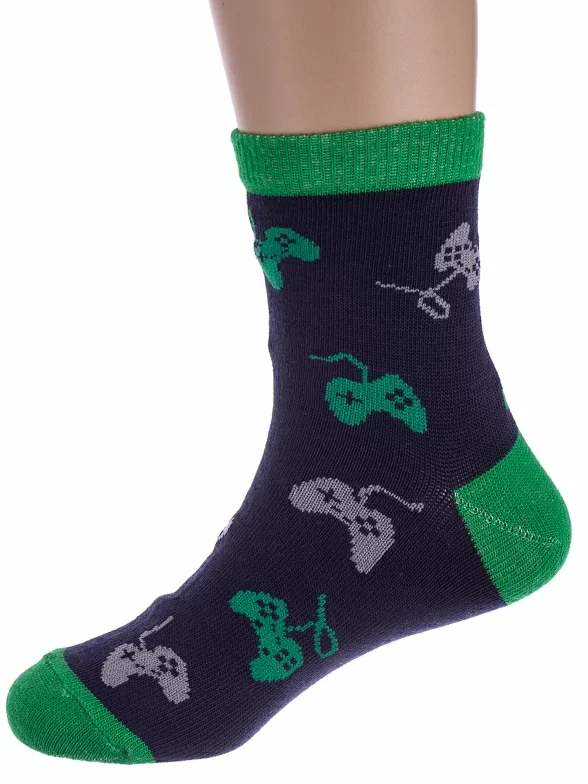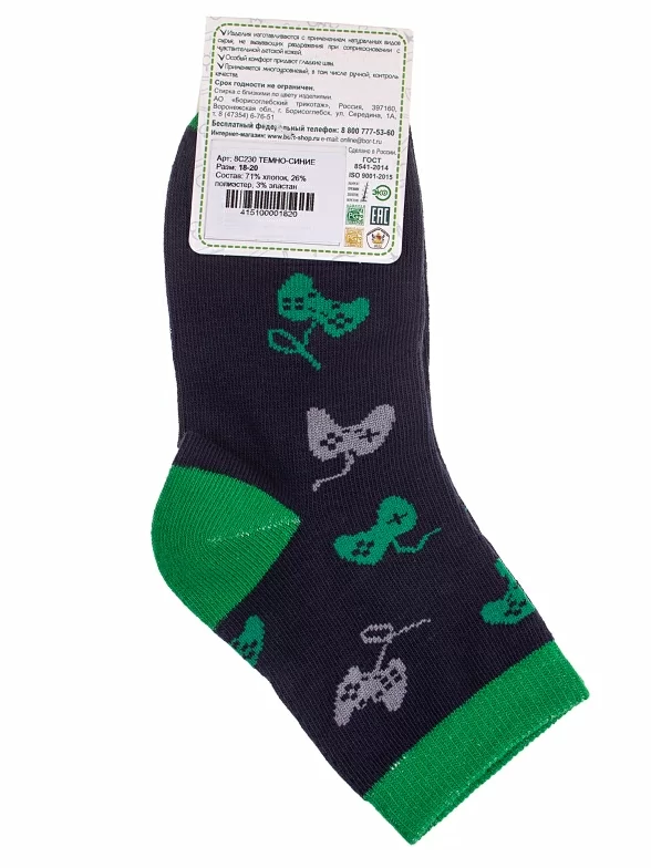 Круглогодичные средней длины детские носки, цвет темно-синий, прикольные, состав: 71% хлопок, 26% полиэстер, 3% эластан, фабричный артикул 8С230. Производитель «АО Борисоглебский трикотаж, Воронежская обл, Россия» под брендом «Борисоглебский трикотаж».