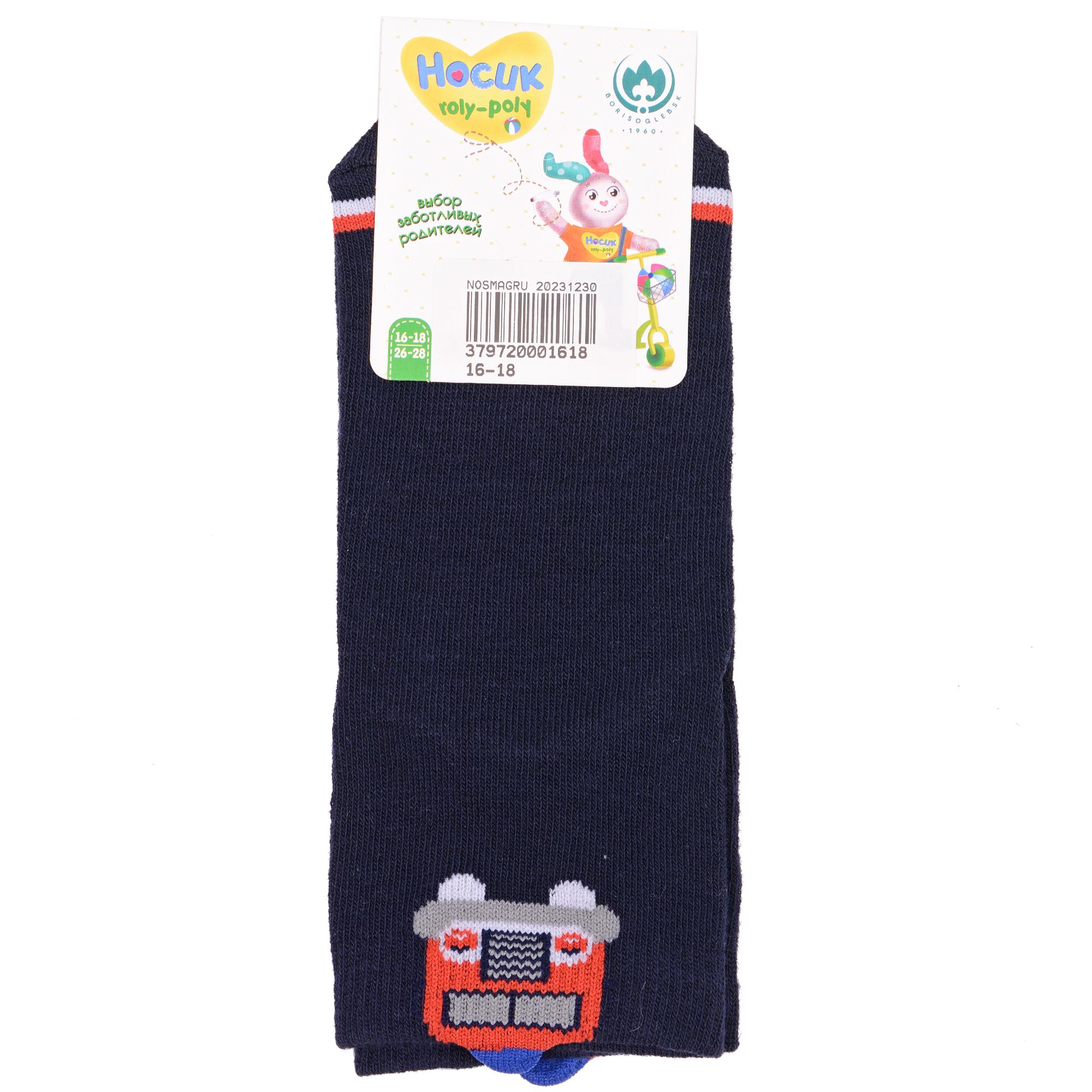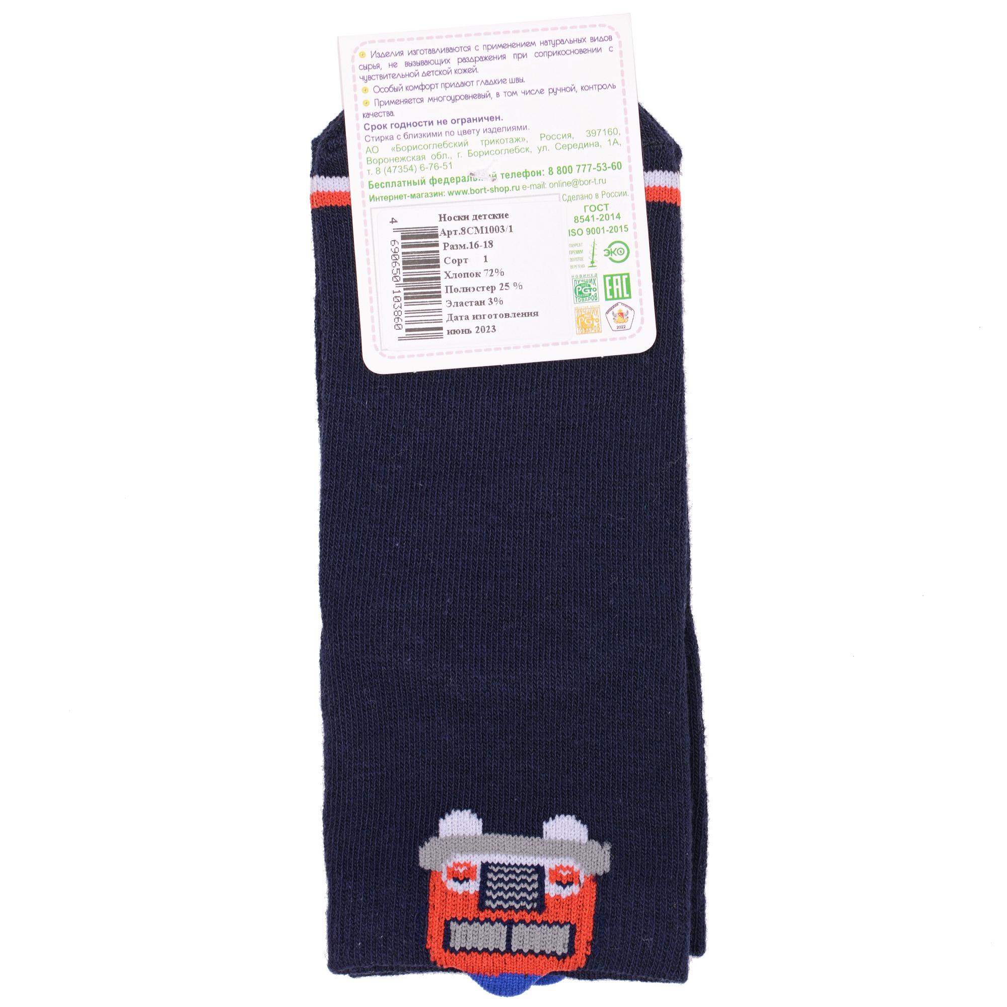 Круглогодичные укороченные детские носки, цвет темно-синий, повседневные, шов обычный (не бесшовные), принт (рисунок): транспорт, с узором, состав: 72% хлопок, 25% полиэстер, 3% эластан, арт. 8СМ1003/1. Производитель «АО Борисоглебский трикотаж, Воронежская обл, Россия» под брендом «Борисоглебский трикотаж».