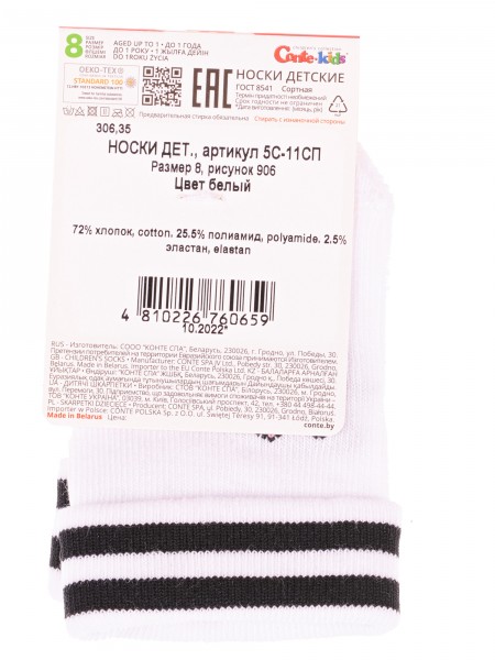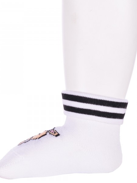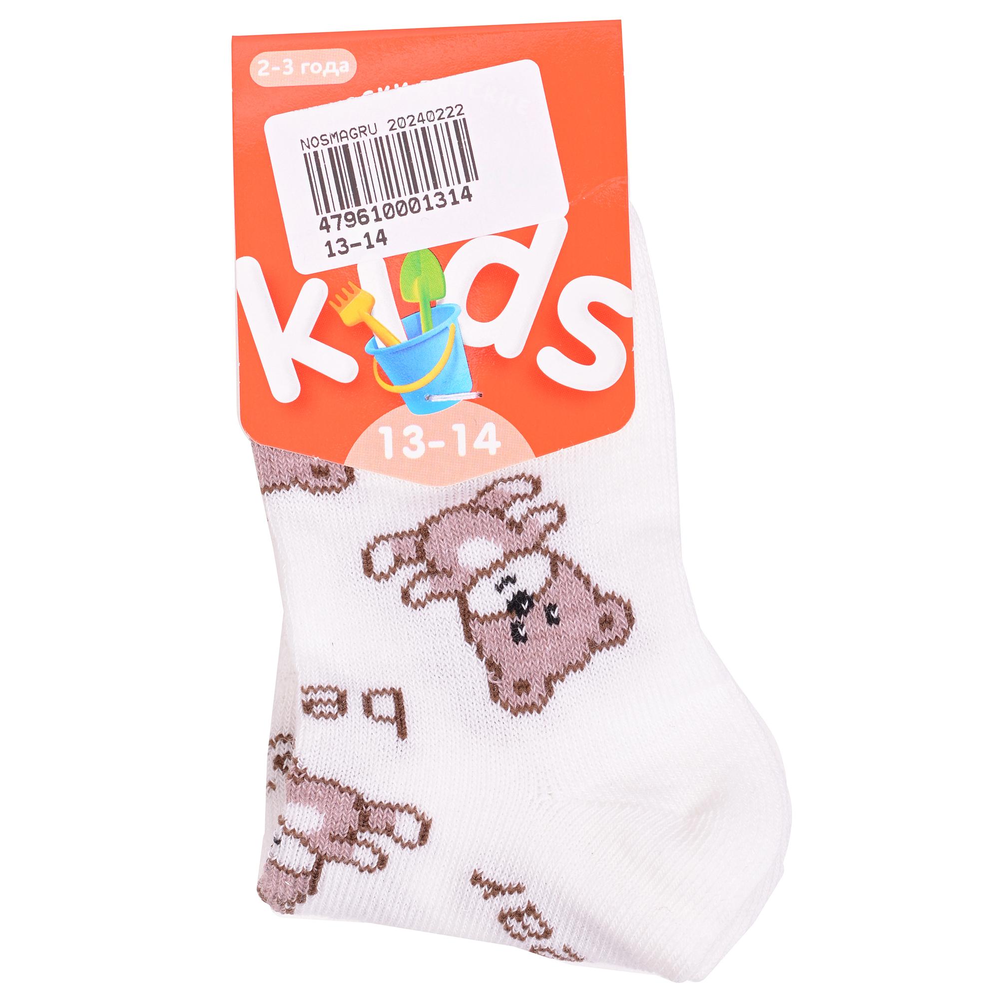 Круглогодичные укороченные детские носки, цвет белый, повседневные, возможно бесшовные, принт (рисунок): надписи, животные, с узором, состав: 75% хлопок, 23% полиамид, 2% эластан, арт. 14С3081. Производитель «Брестский чулочный комбинат ОАО, Беларусь» под брендом «Брестские (бчк)».