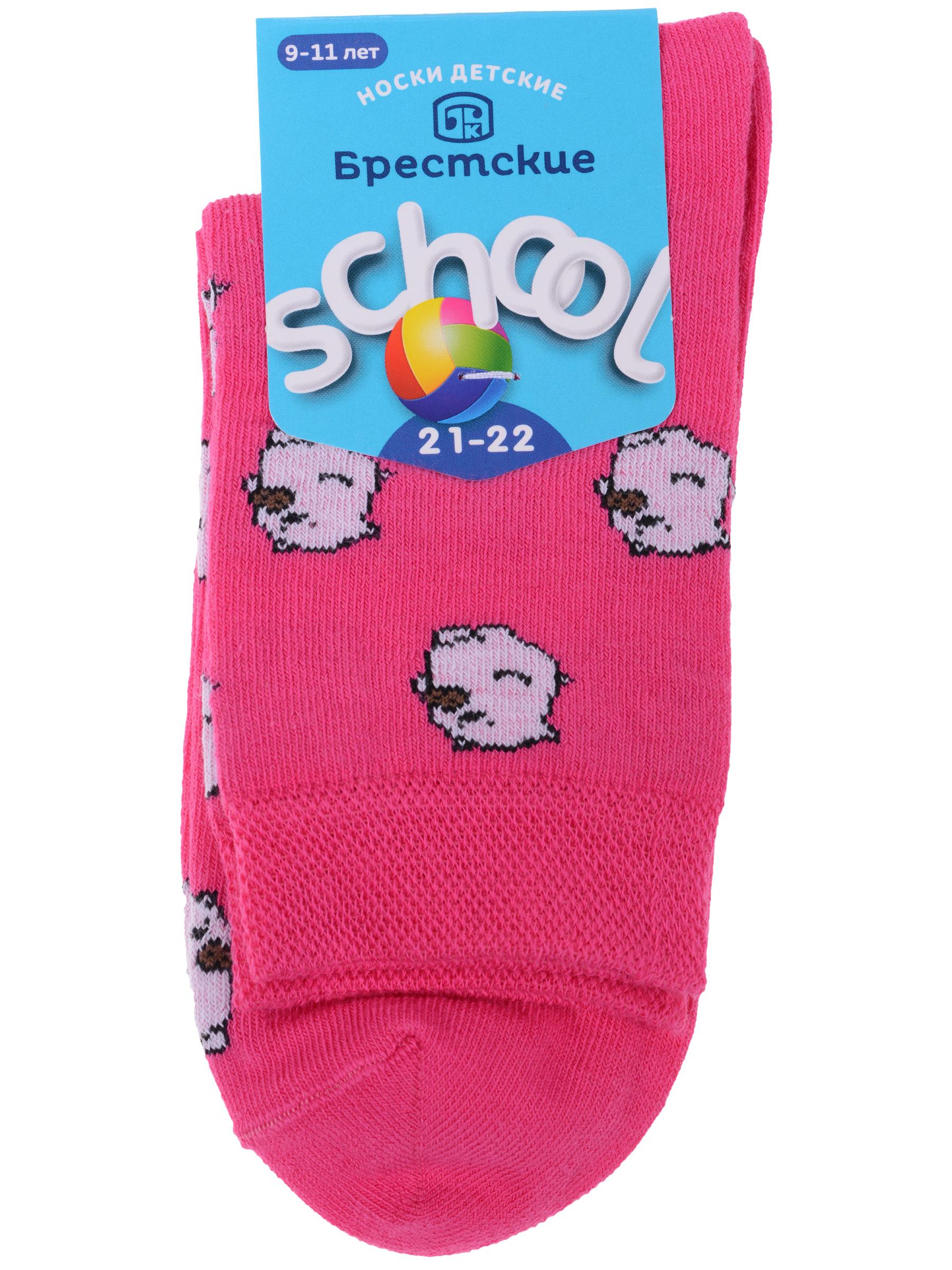 Круглогодичные средней длины детские носки, цвет фуксия, шов обычный (не бесшовные), принт (рисунок): животные, состав: 70% хлопок, 28% полиамид, 2% эластан, арт. 14С3081. Производитель «Брестский чулочный комбинат ОАО, Беларусь» под брендом «Брестские (бчк)».