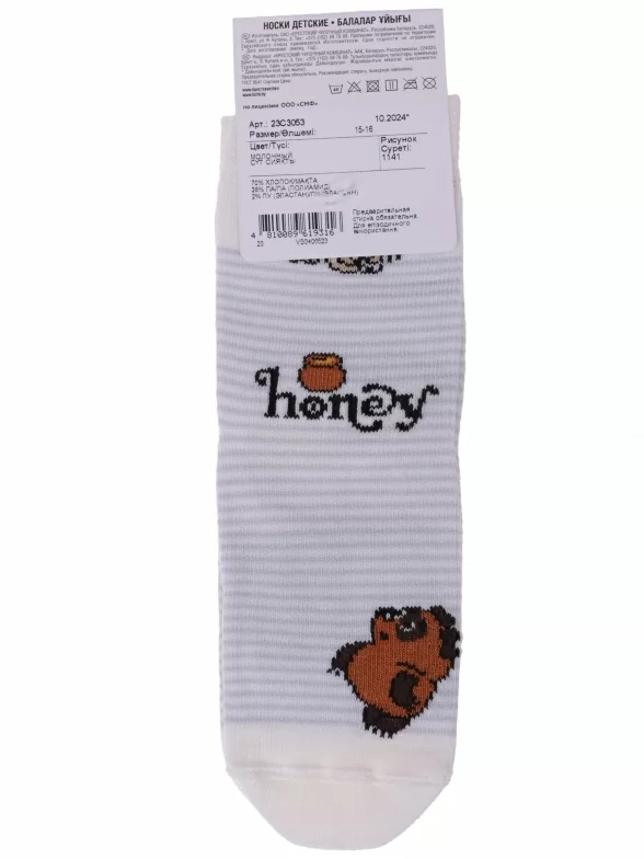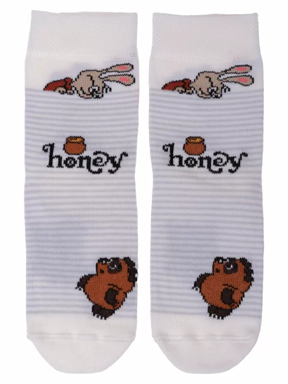 Круглогодичные укороченные детские носки, цвет светло-серый, разного цвета, шов плоский, принт (рисунок): животные, состав: 70% хлопок, 28% полиамид, 2% эластан, арт. 23С3053. Производитель «Брестский чулочный комбинат ОАО, Беларусь» под брендом «Брестские (бчк)».