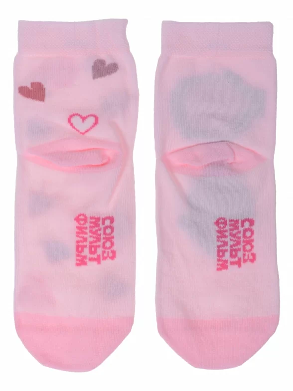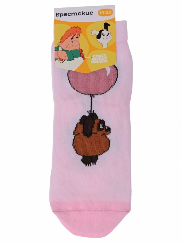 Круглогодичные укороченные детские носки, цвет розовый, разного цвета, шов плоский, принт (рисунок): животные, состав: 70% хлопок, 28% полиамид, 2% эластан, арт. 23С3053. Производитель «Брестский чулочный комбинат ОАО, Беларусь» под брендом «Брестские (бчк)».