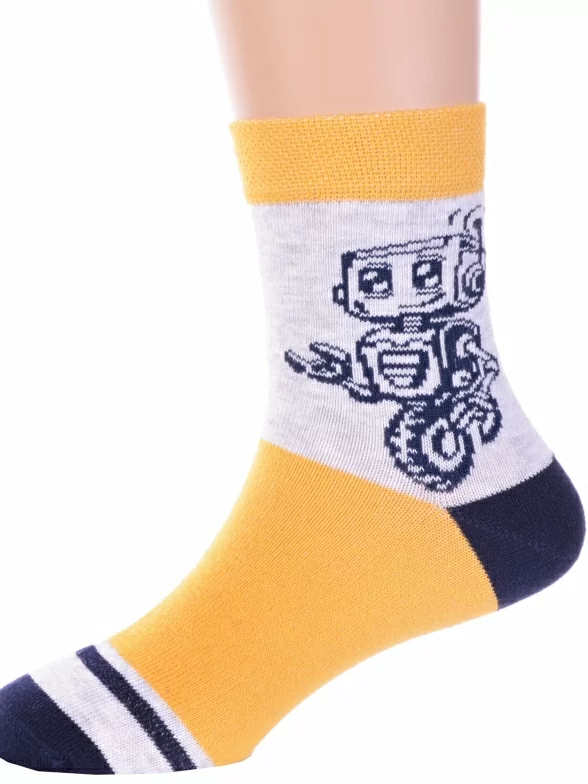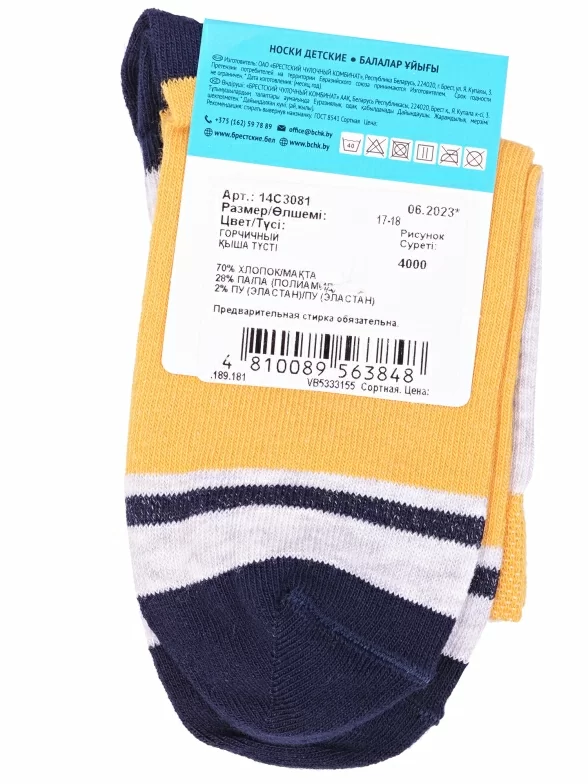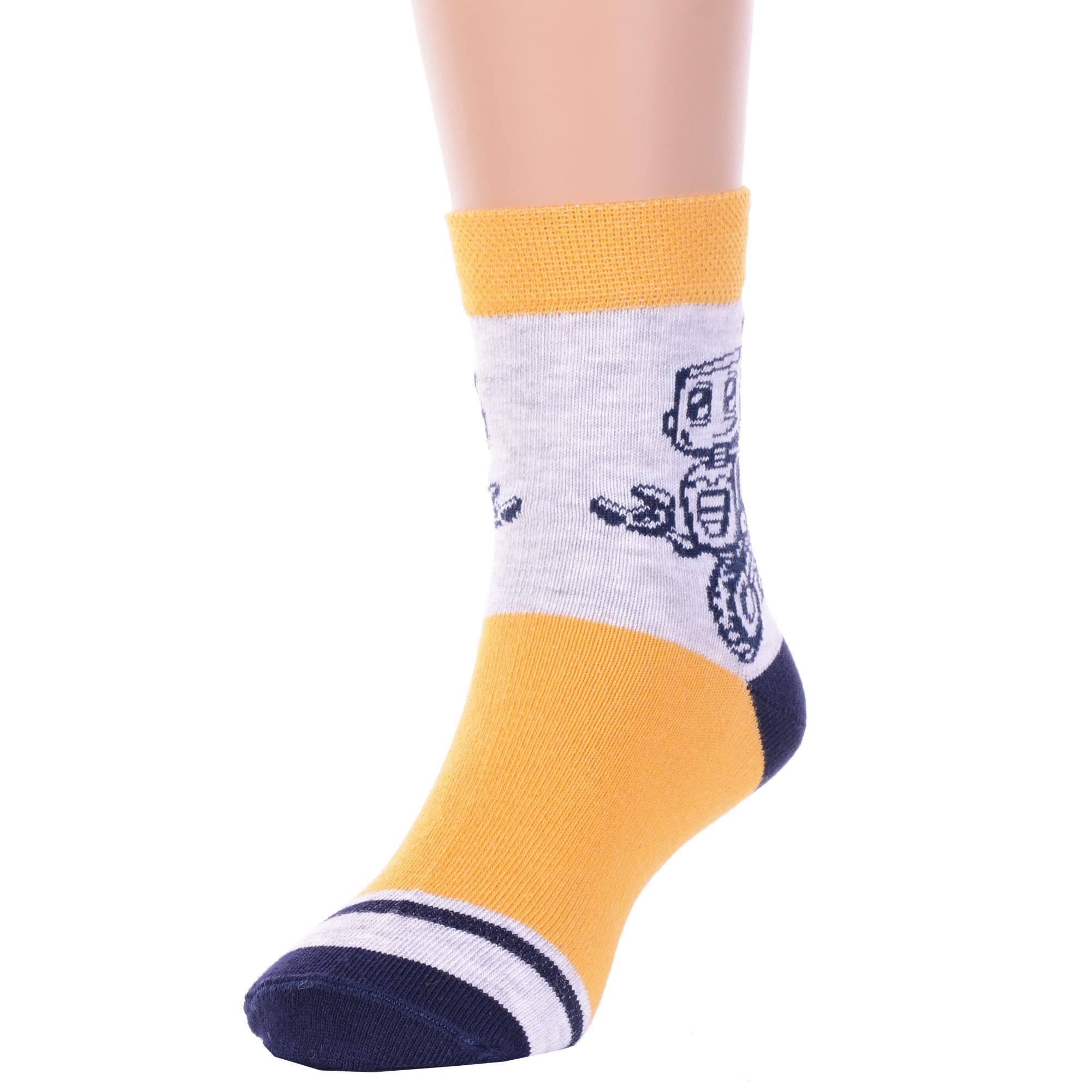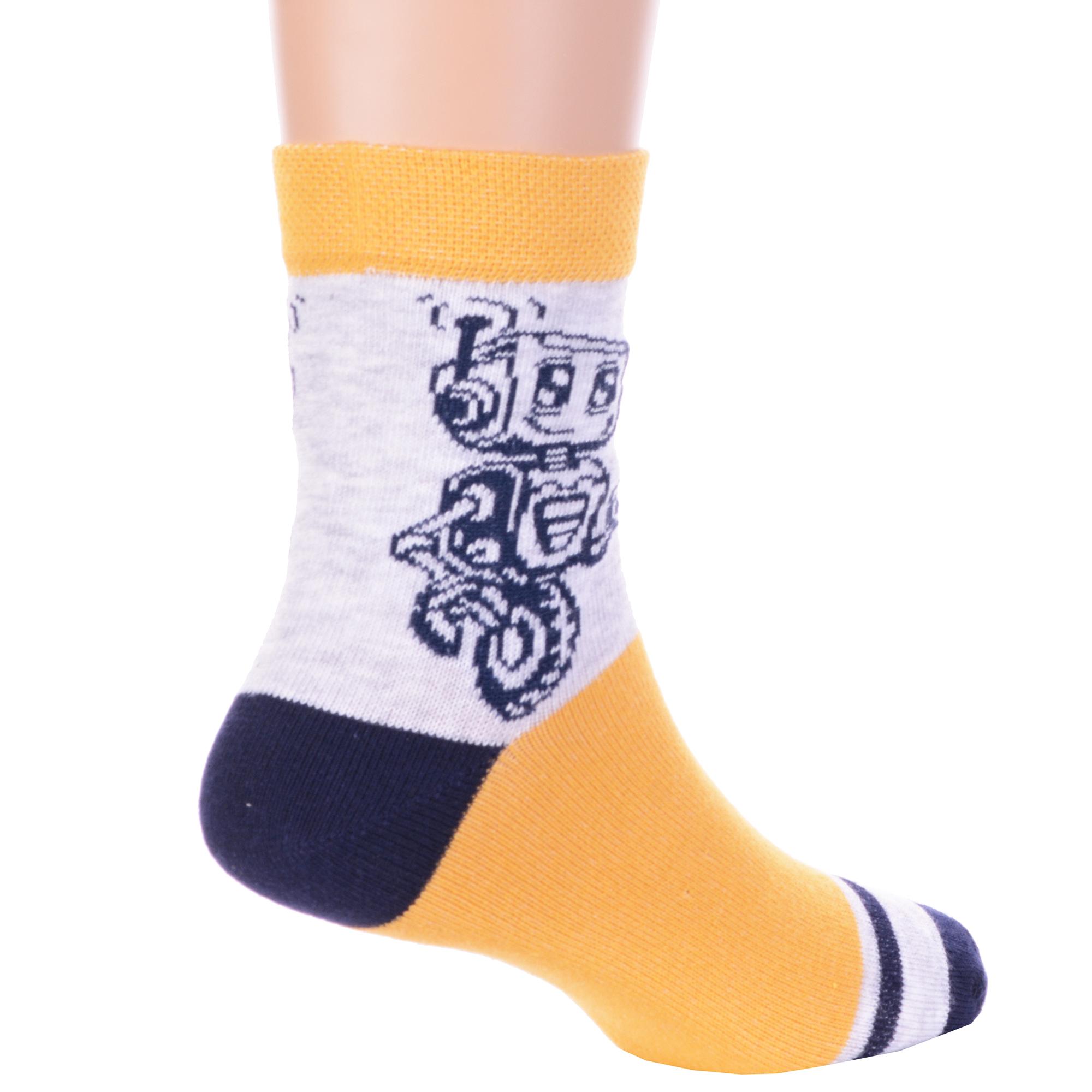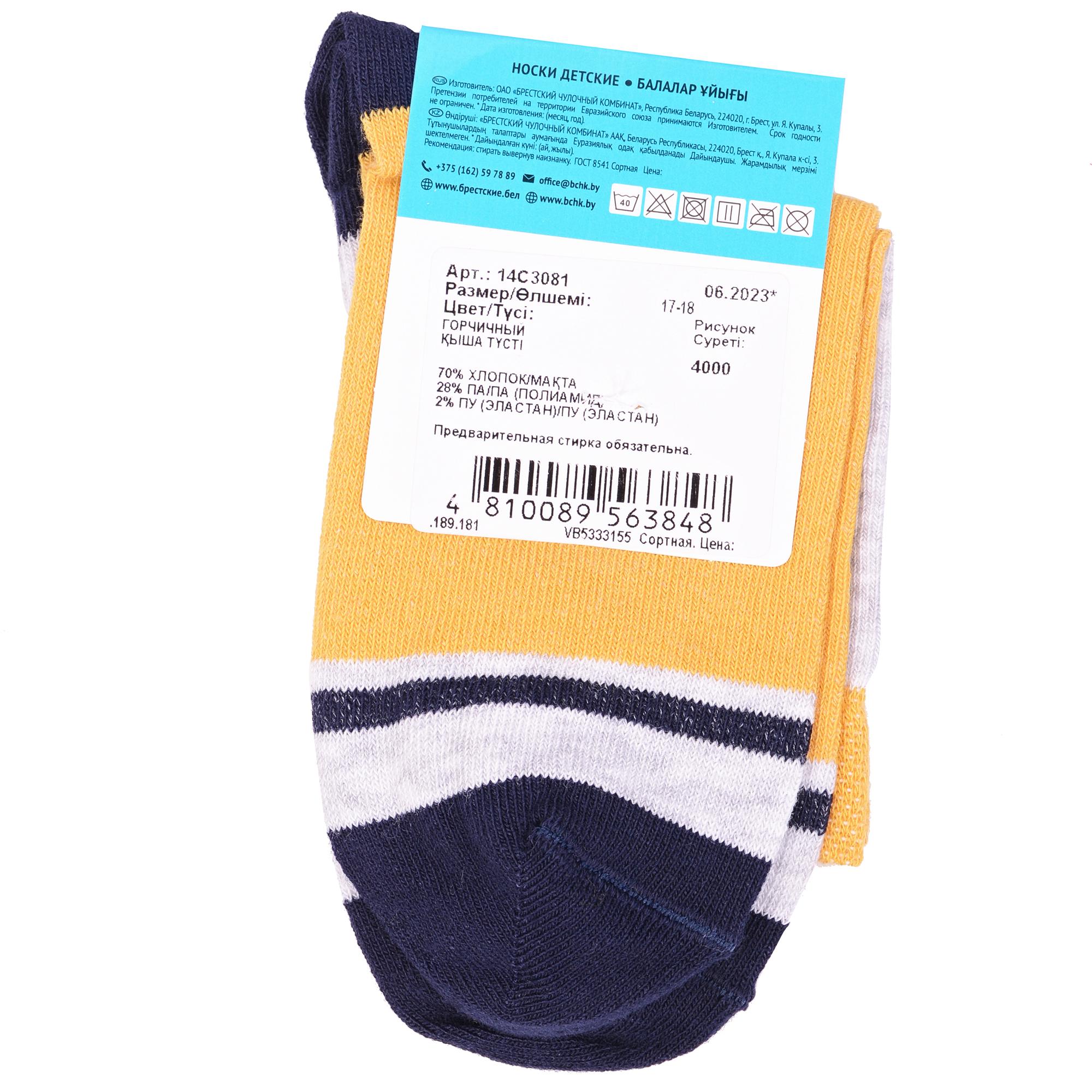 Круглогодичные укороченные детские носки, цвет желтый, повседневные, возможно бесшовные, принт (рисунок): контрастные пятка / мысок / резинка, с узором, крупные контрастные рисунки, состав: 70% хлопок, 28% полиамид, 2% эластан, арт. 14С3081. Производитель «Брестский чулочный комбинат ОАО, Беларусь» под брендом «Брестские (бчк)».