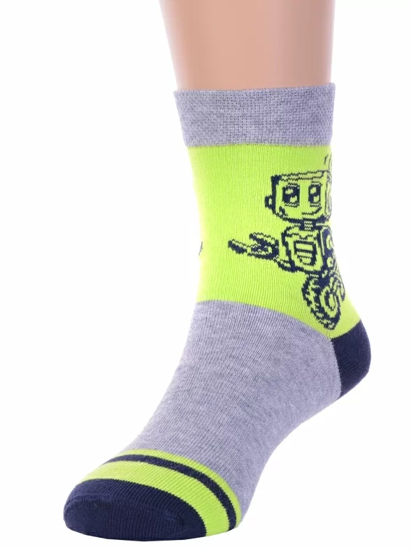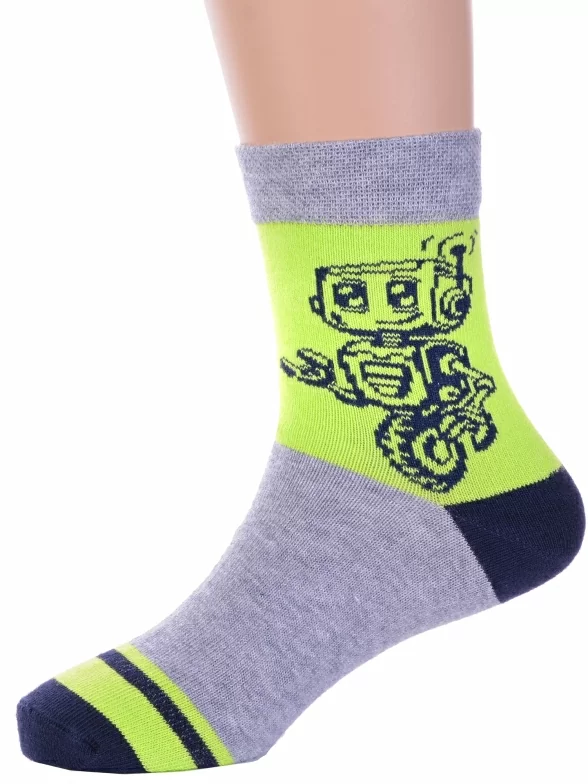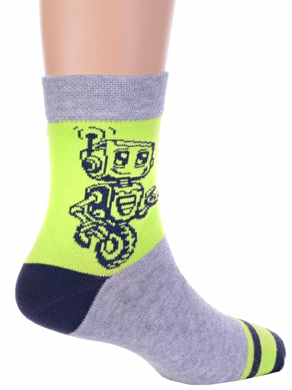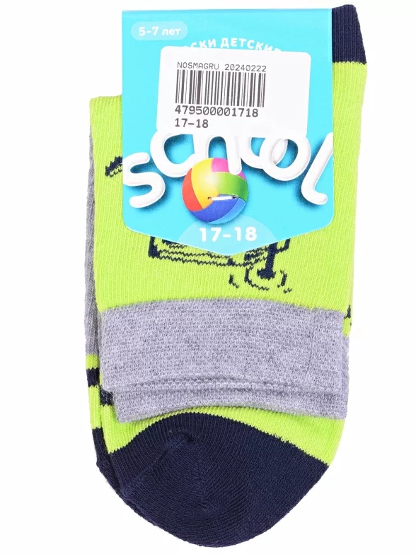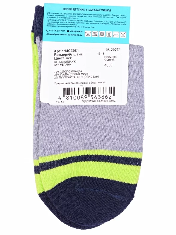 Круглогодичные укороченные детские носки, цвет серый, повседневные, возможно бесшовные, принт (рисунок): контрастные пятка / мысок / резинка, с узором, крупные контрастные рисунки, состав: 70% хлопок, 28% полиамид, 2% эластан, арт. 14С3081. Производитель «Брестский чулочный комбинат ОАО, Беларусь» под брендом «Брестские (бчк)».