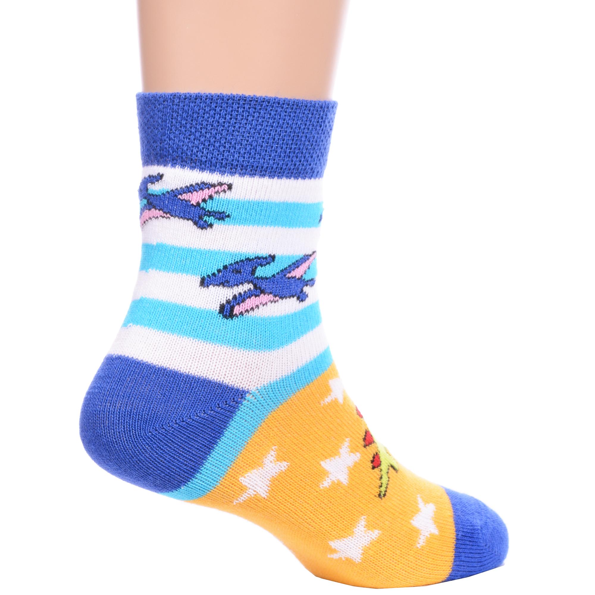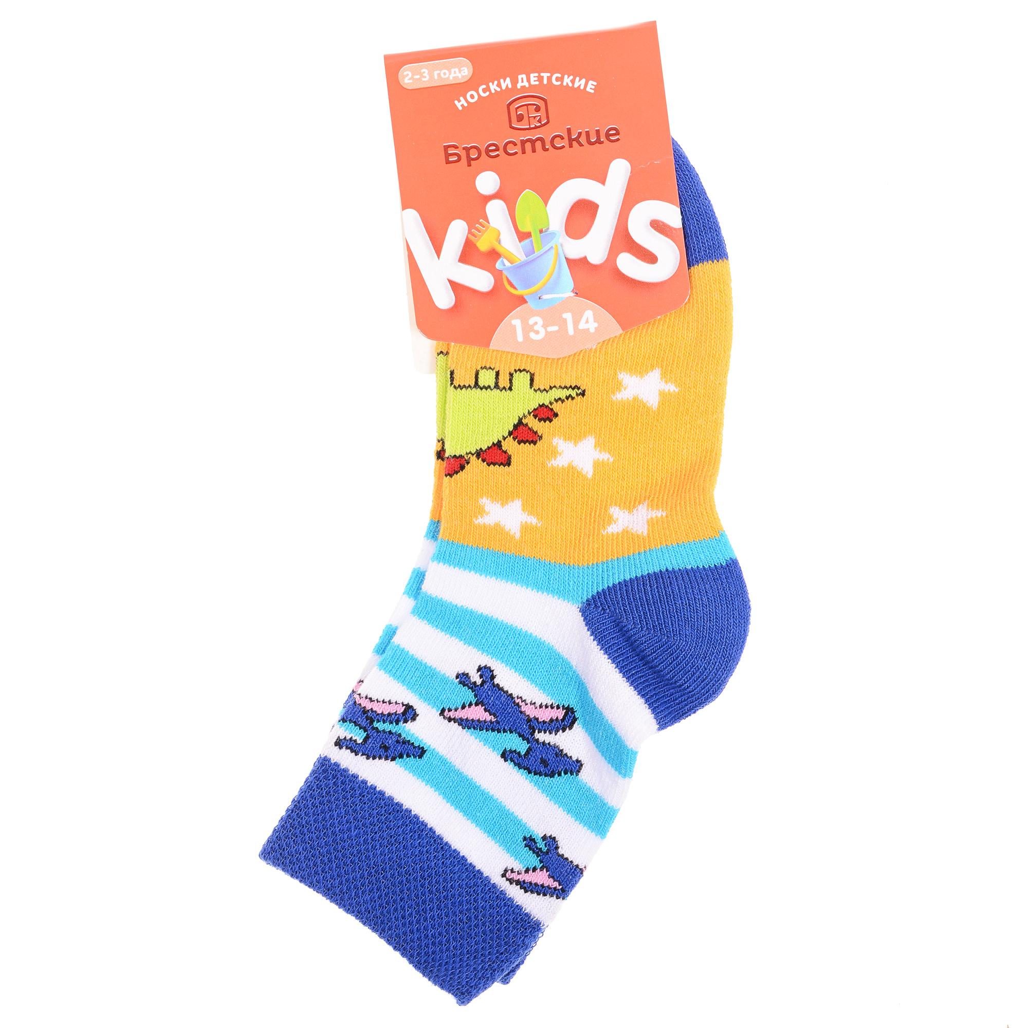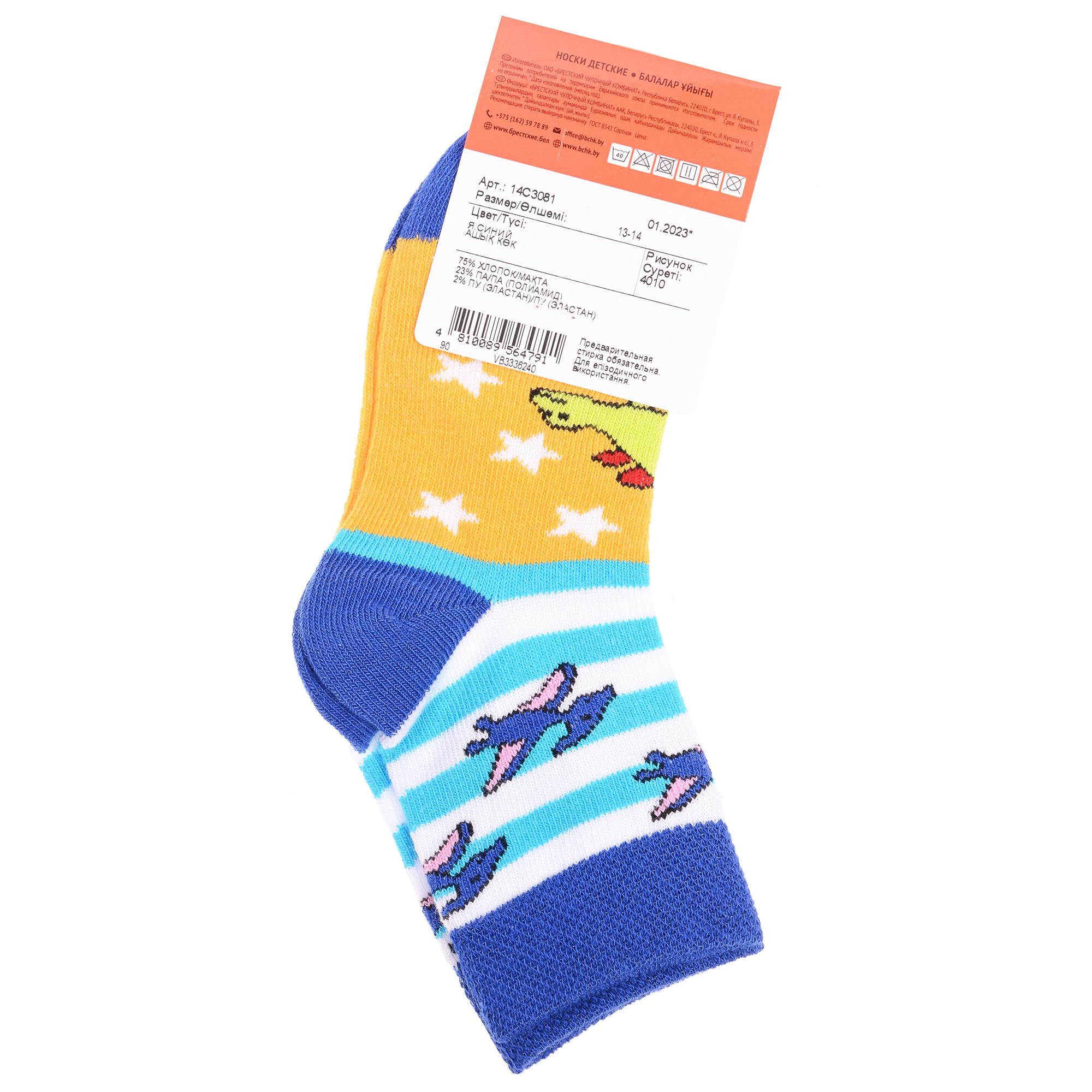 Круглогодичные укороченные детские носки, цвет синий, повседневные, возможно бесшовные, принт (рисунок): полоски, контрастные пятка/мысок/резинка, звезды / небо, животные, с узором, состав: 75% хлопок, 23% полиамид, 2% эластан, арт. 14С3081. Производитель «Брестский чулочный комбинат ОАО, Беларусь» под брендом «Брестские (бчк)».