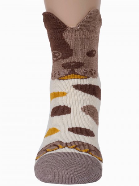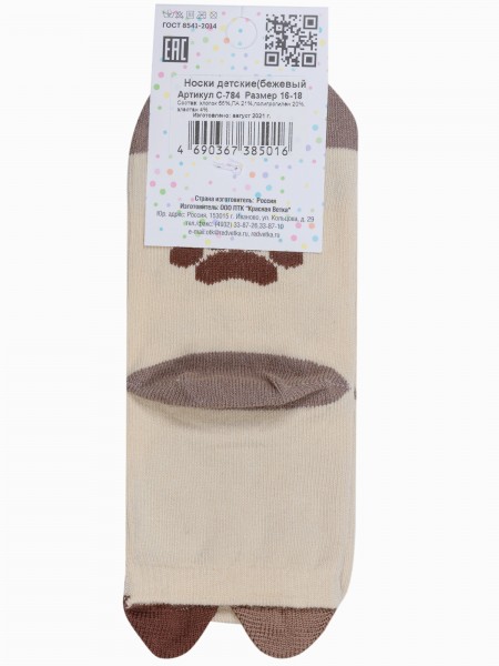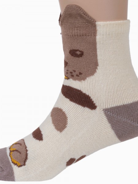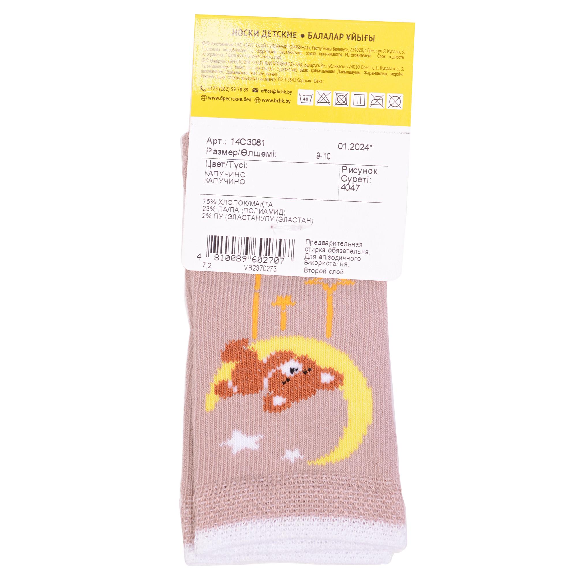 Круглогодичные укороченные детские носки, цвет бежевый, повседневные, возможно бесшовные, принт (рисунок): звезды / небо, животные, с узором, крупные контрастные рисунки, состав: 75% хлопок, 23% полиамид, 2% эластан, арт. 14С3081. Производитель «Брестский чулочный комбинат ОАО, Беларусь» под брендом «Брестские (бчк)».