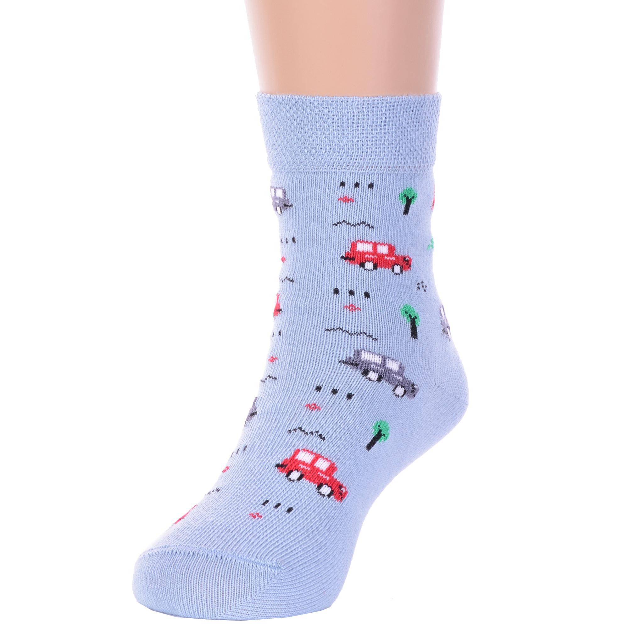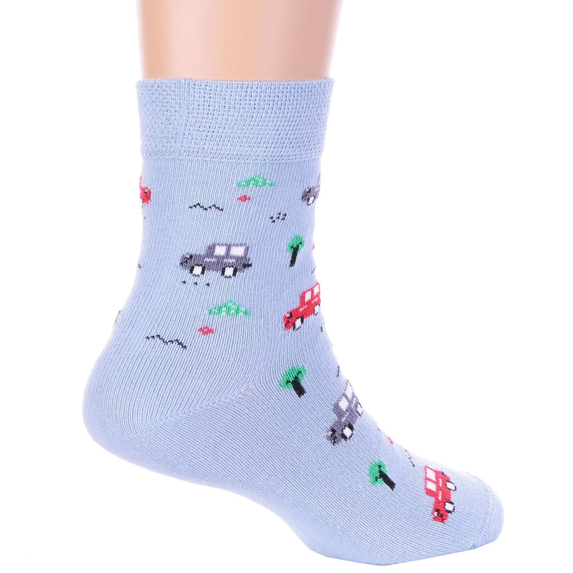 Круглогодичные укороченные детские носки, цвет голубой, повседневные, возможно бесшовные, принт (рисунок): транспорт, с узором, состав: 75% хлопок, 23% полиамид, 2% эластан, арт. 14С3081. Производитель «Брестский чулочный комбинат ОАО, Беларусь» под брендом «Брестские (бчк)».