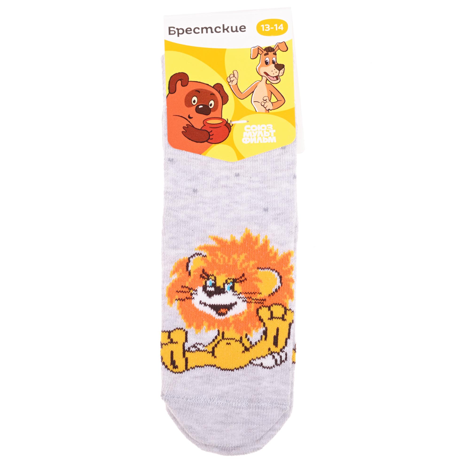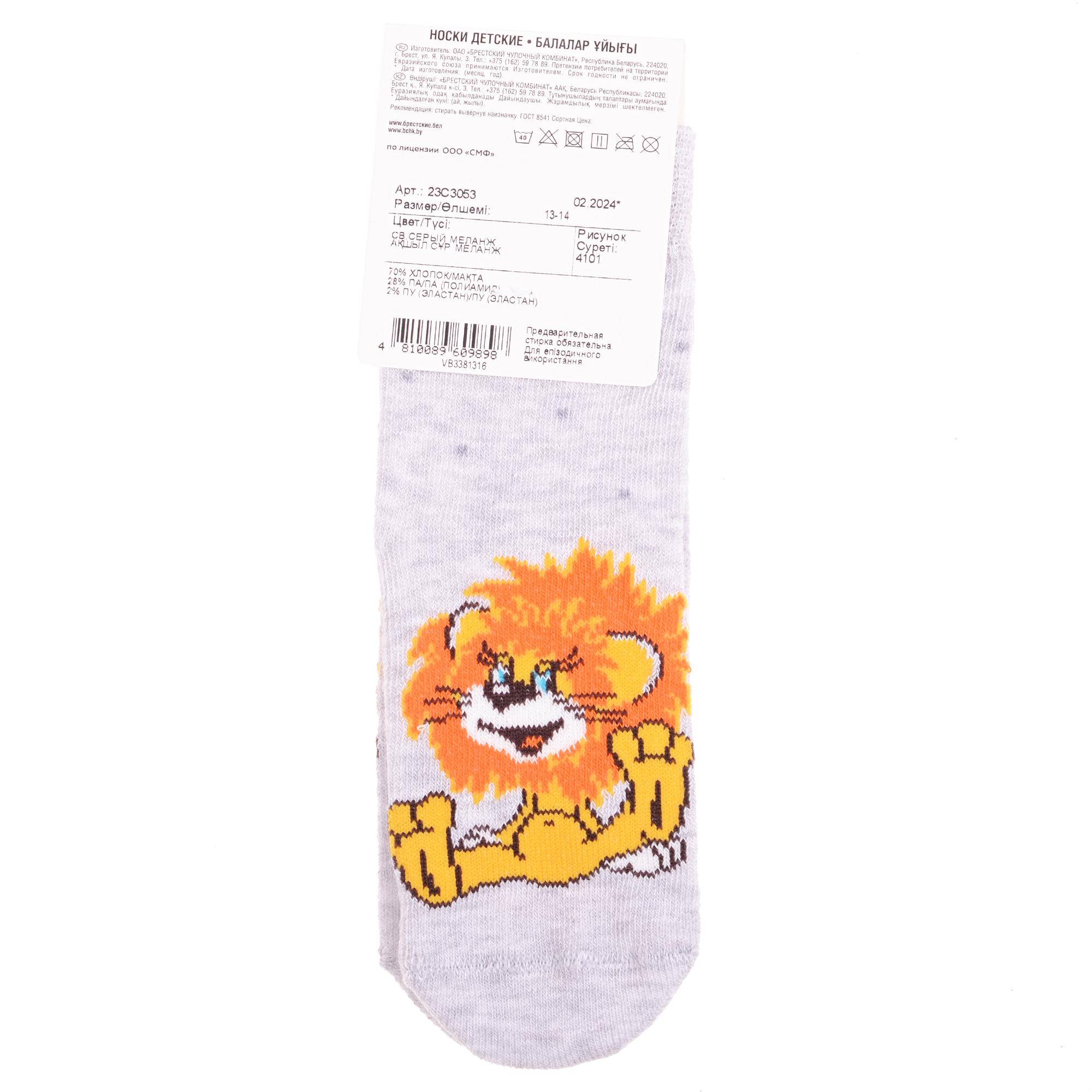 Круглогодичные укороченные детские носки, цвет светло-серый, повседневные, возможно бесшовные, принт (рисунок): фильмы / сериалы / мультики, животные, горох / точка, с узором, крупные контрастные рисунки, состав: 70% хлопок, 28% полиамид, 2% эластан, арт. 23С3053. Производитель «Брестский чулочный комбинат ОАО, Беларусь» под брендом «Брестские (бчк)».