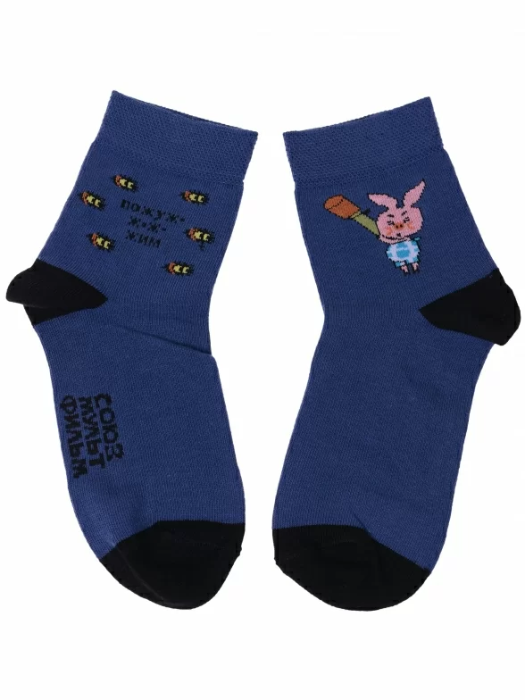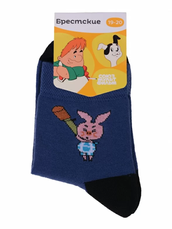 Круглогодичные укороченные детские носки, цвет джинс, разного цвета, шов плоский, принт (рисунок): животные, состав: 70% хлопок, 28% полиамид, 2% эластан, арт. 23С3053. Производитель «Брестский чулочный комбинат ОАО, Беларусь» под брендом «Брестские (бчк)».