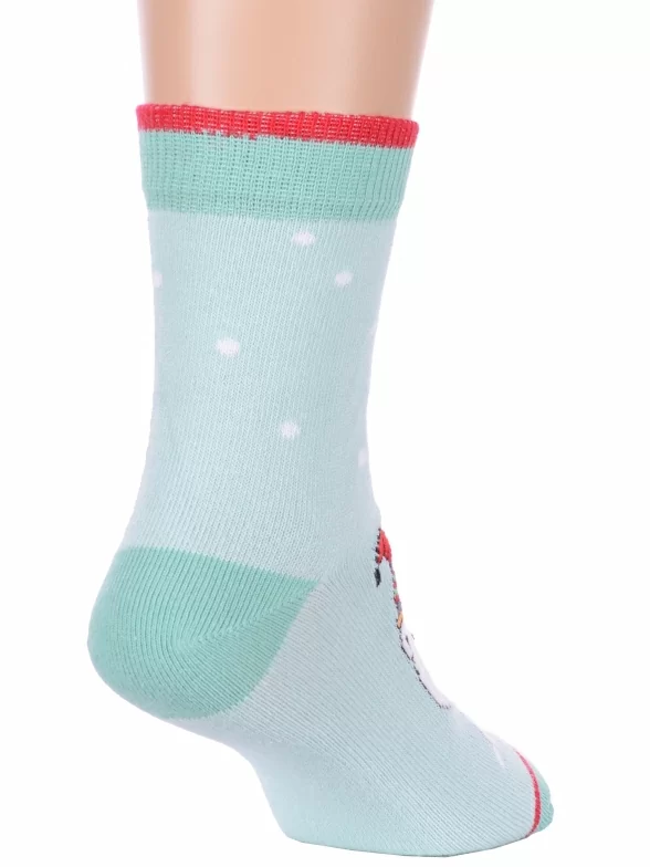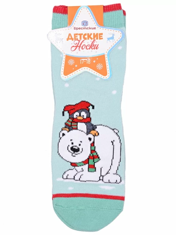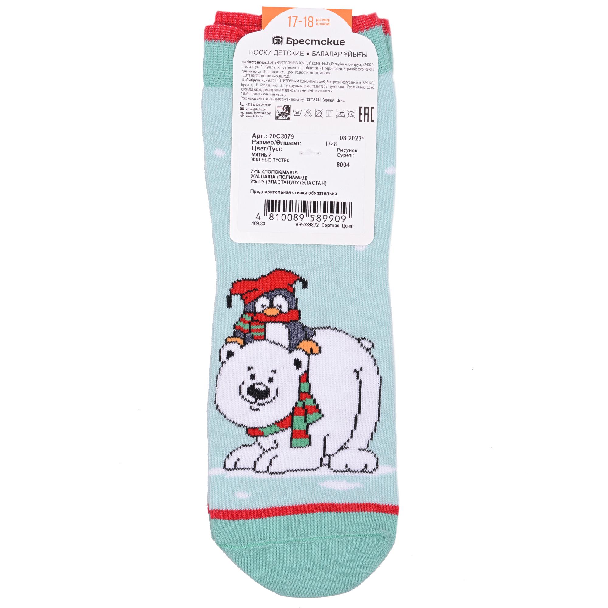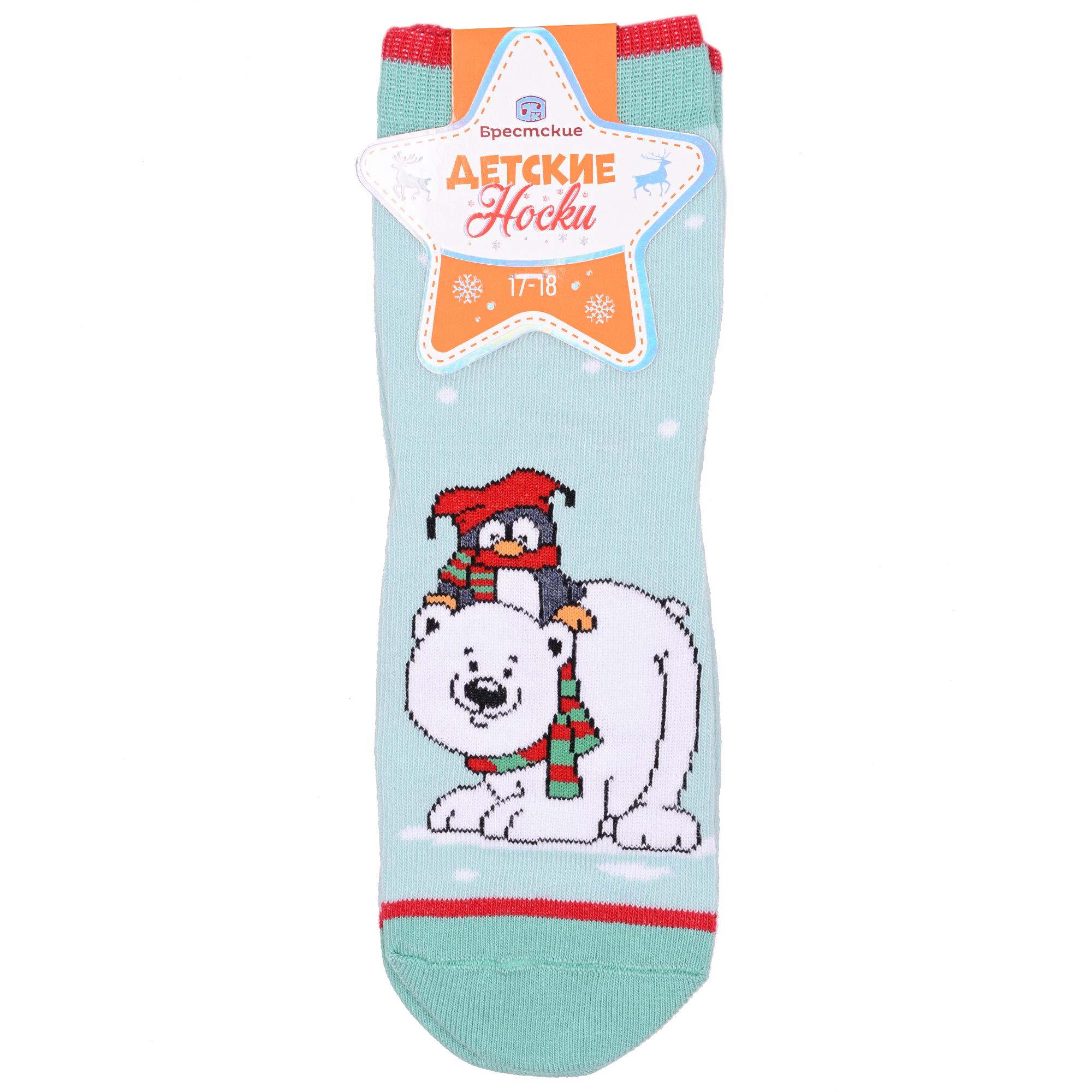 Круглогодичные укороченные детские носки, цвет бирюзовый, повседневные, шов кеттельный (бесшовная технология), принт (рисунок): новый год, контрастные пятка / мысок / резинка, зимний, животные, горох / точка, с узором, крупные контрастные рисунки, состав: 72% хлопок, 26% полиамид, 2% эластан, арт. 20С3079. Производитель «Брестский чулочный комбинат ОАО, Беларусь» под брендом «Брестские (бчк)».