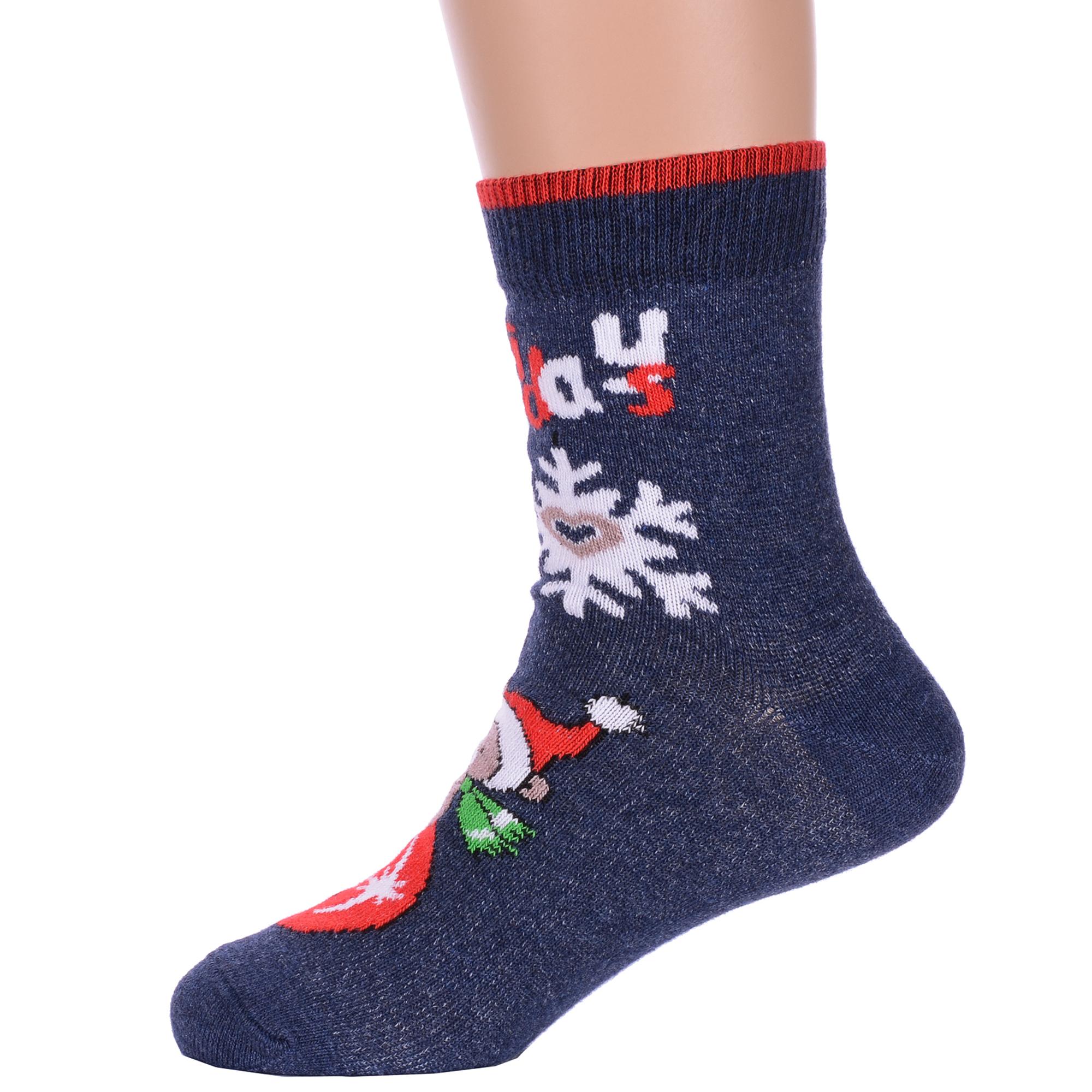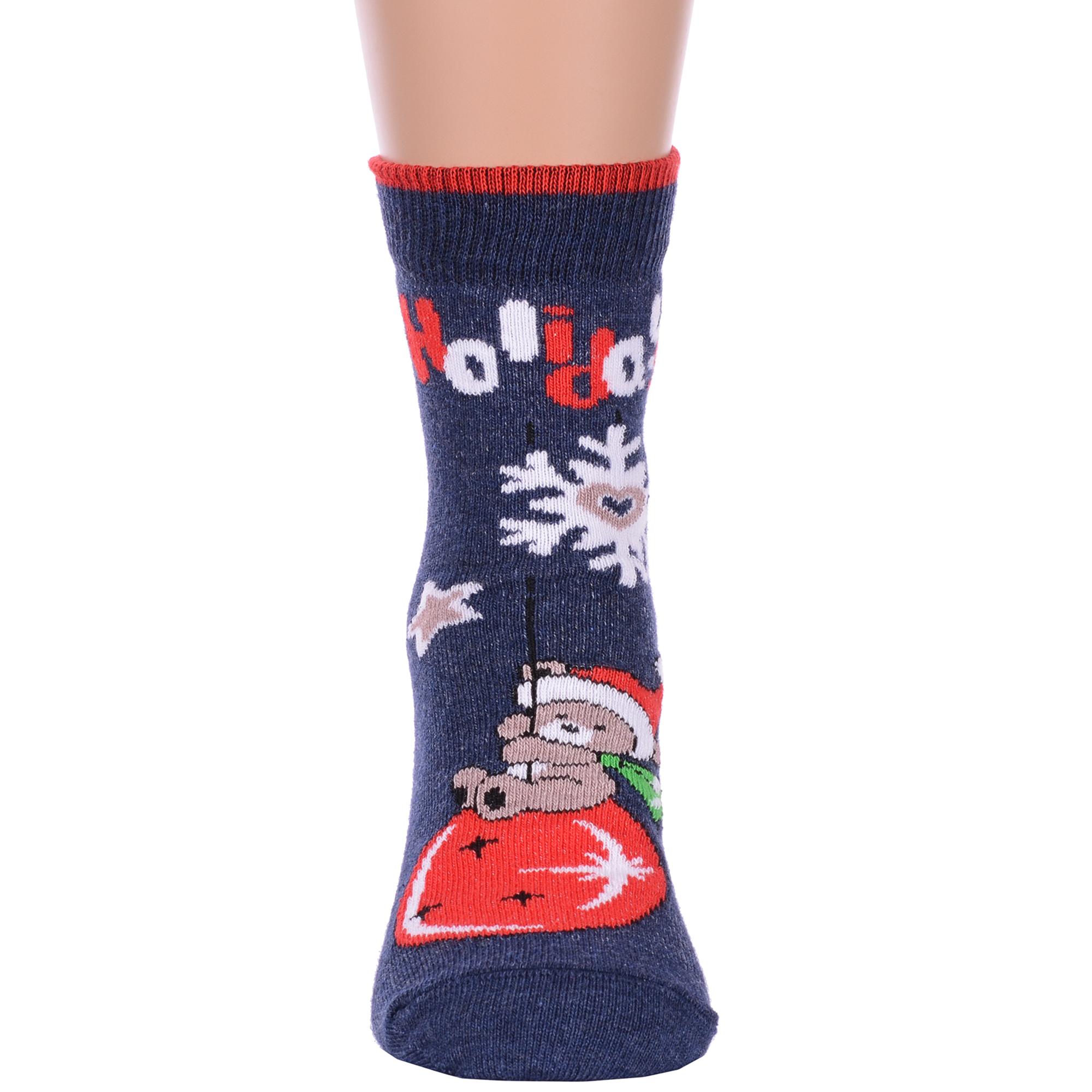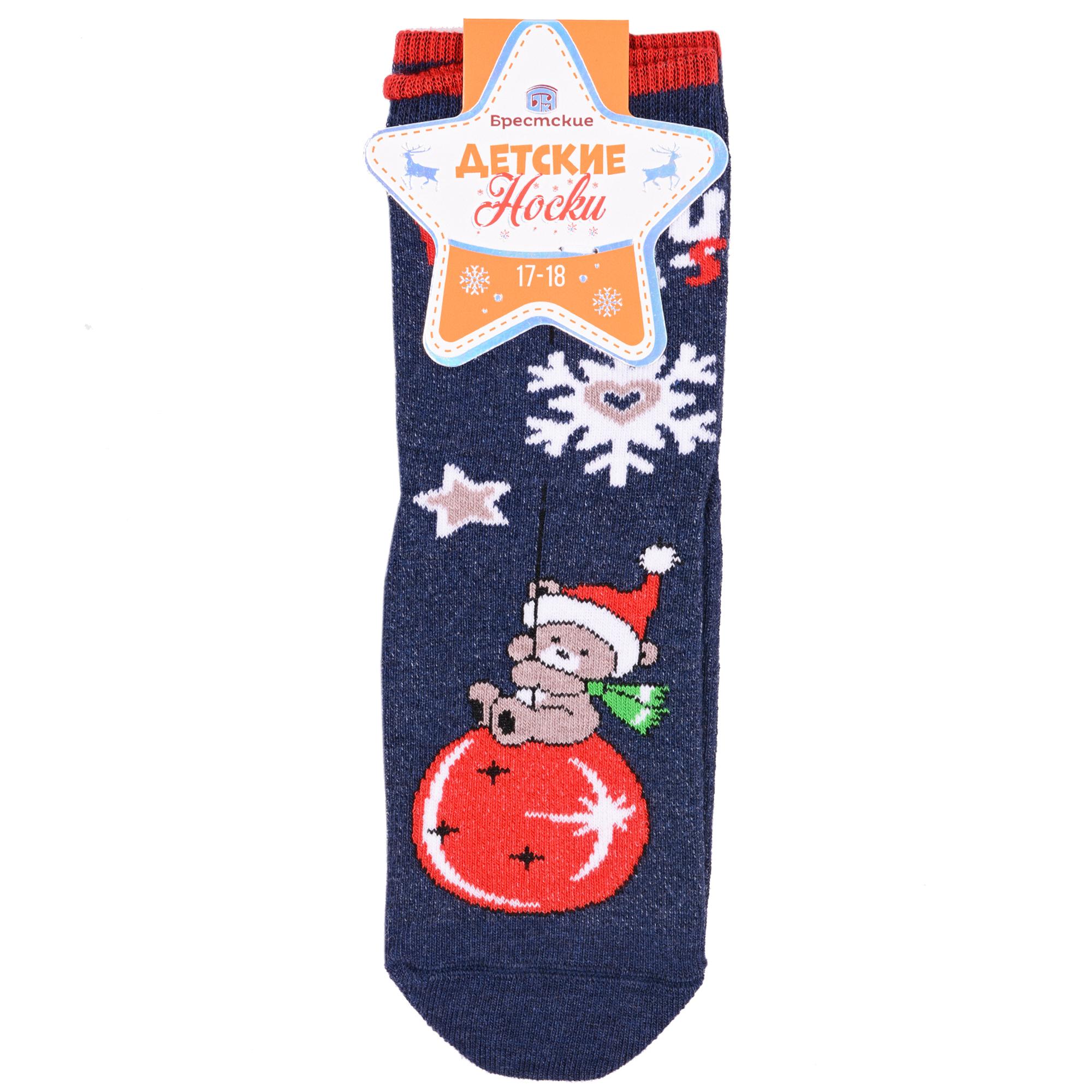Круглогодичные укороченные детские носки, цвет темно-синий, повседневные, шов кеттельный (бесшовная технология), принт (рисунок): новый год, надписи, зимний, животные, с узором, крупные контрастные рисунки, состав: 72% хлопок, 26% полиамид, 2% эластан, арт. 20С3079. Производитель «Брестский чулочный комбинат ОАО, Беларусь» под брендом «Брестские (бчк)».