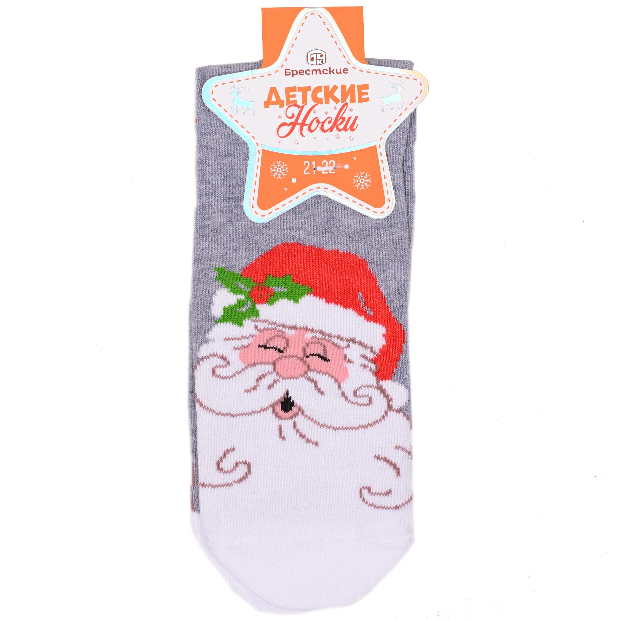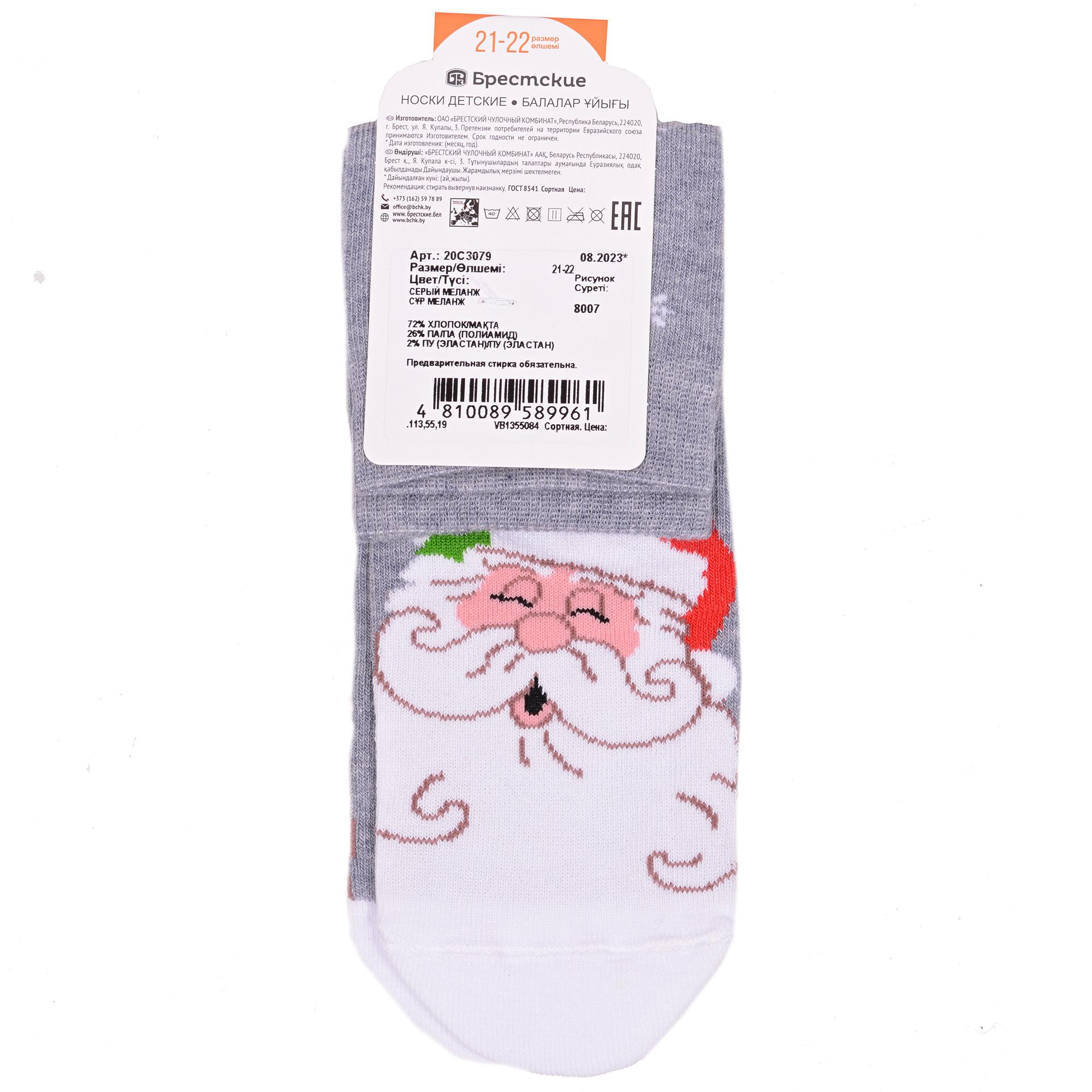 Круглогодичные укороченные детские носки, цвет серый, повседневные, возможно бесшовные, принт (рисунок): новый год, люди, зимний, с узором, крупные контрастные рисунки, состав: 72% хлопок, 26% полиамид, 2% эластан, арт. 20С3079. Производитель «Брестский чулочный комбинат ОАО, Беларусь» под брендом «Брестские (бчк)».