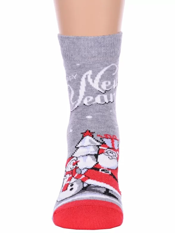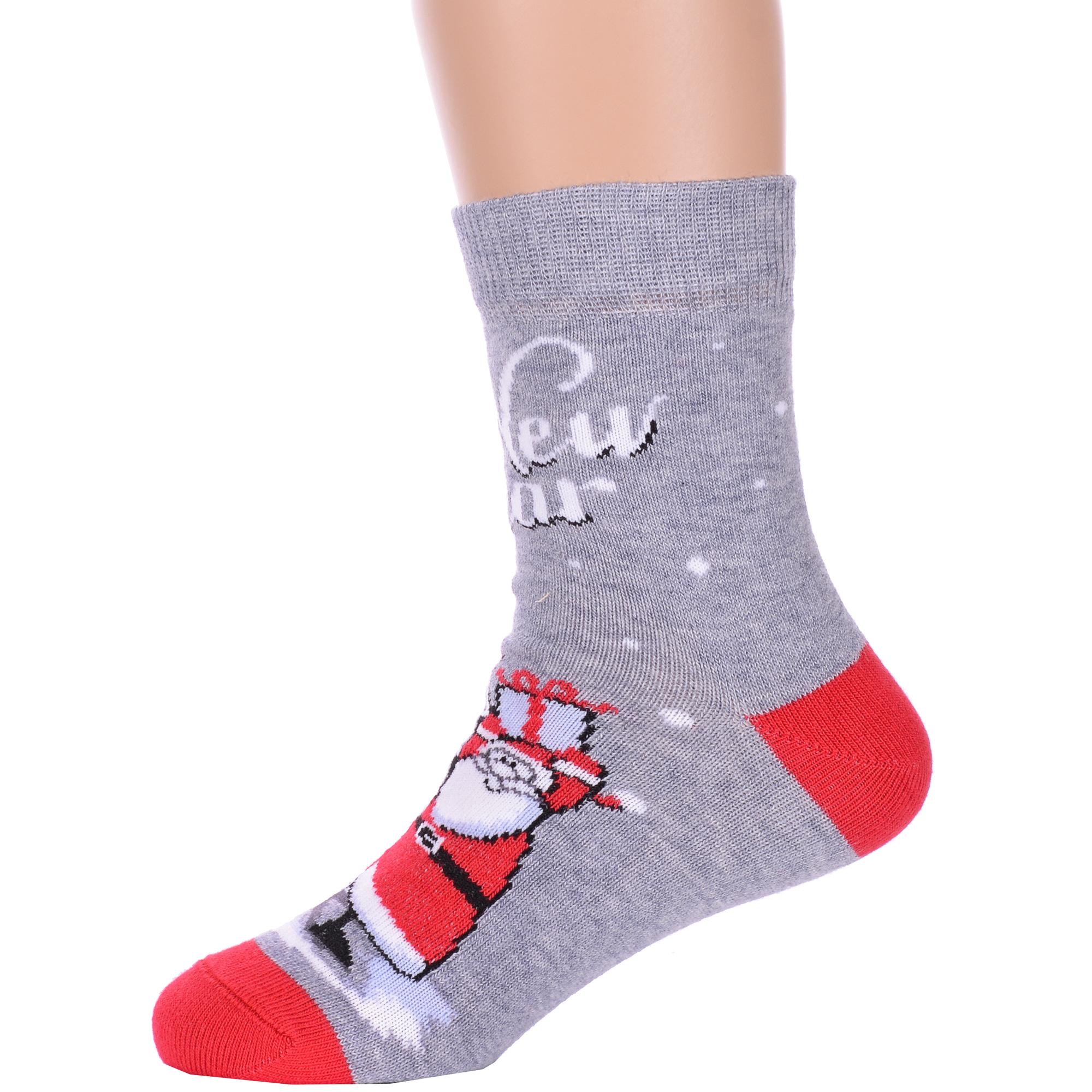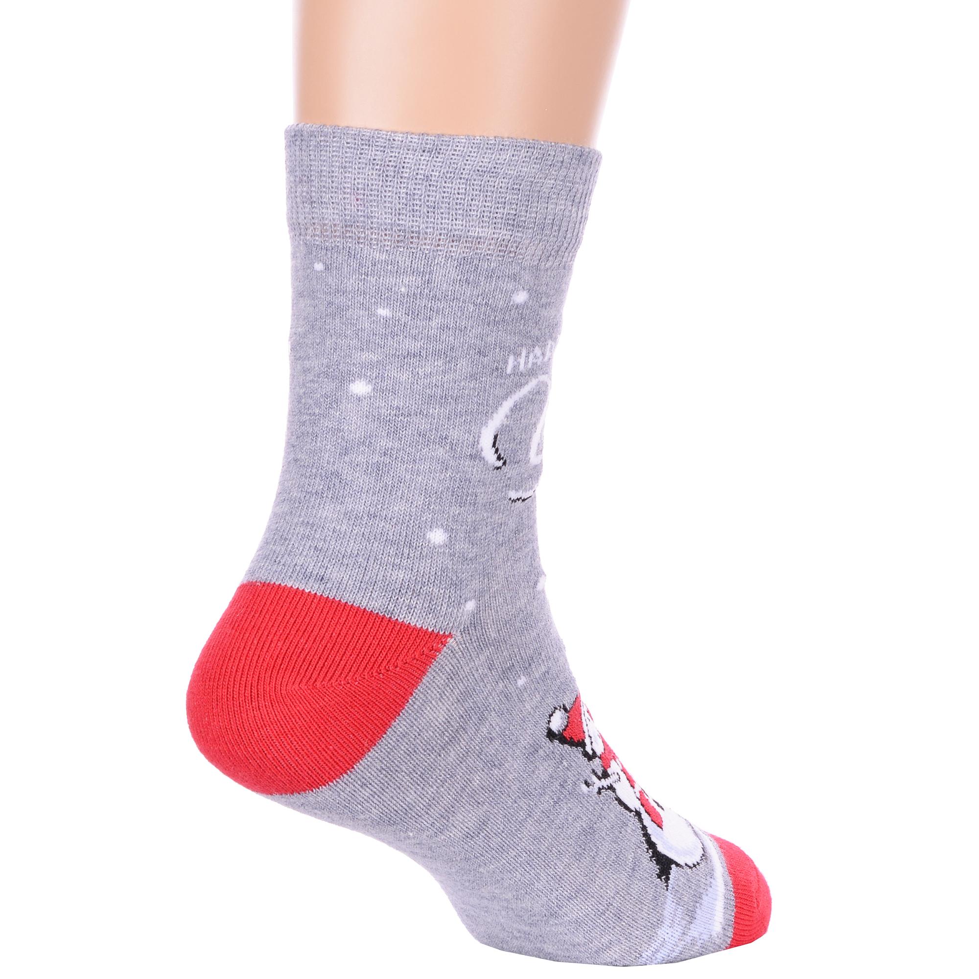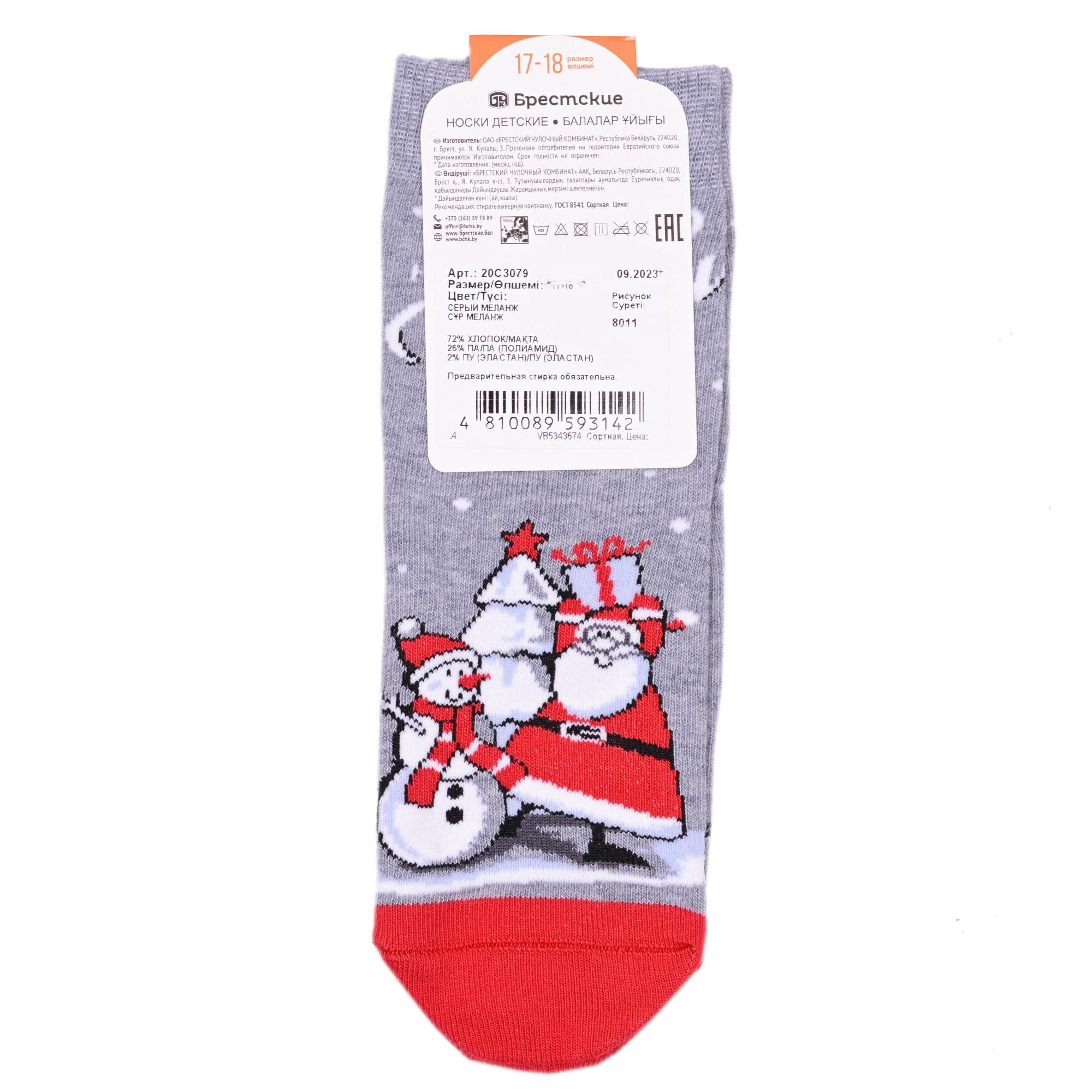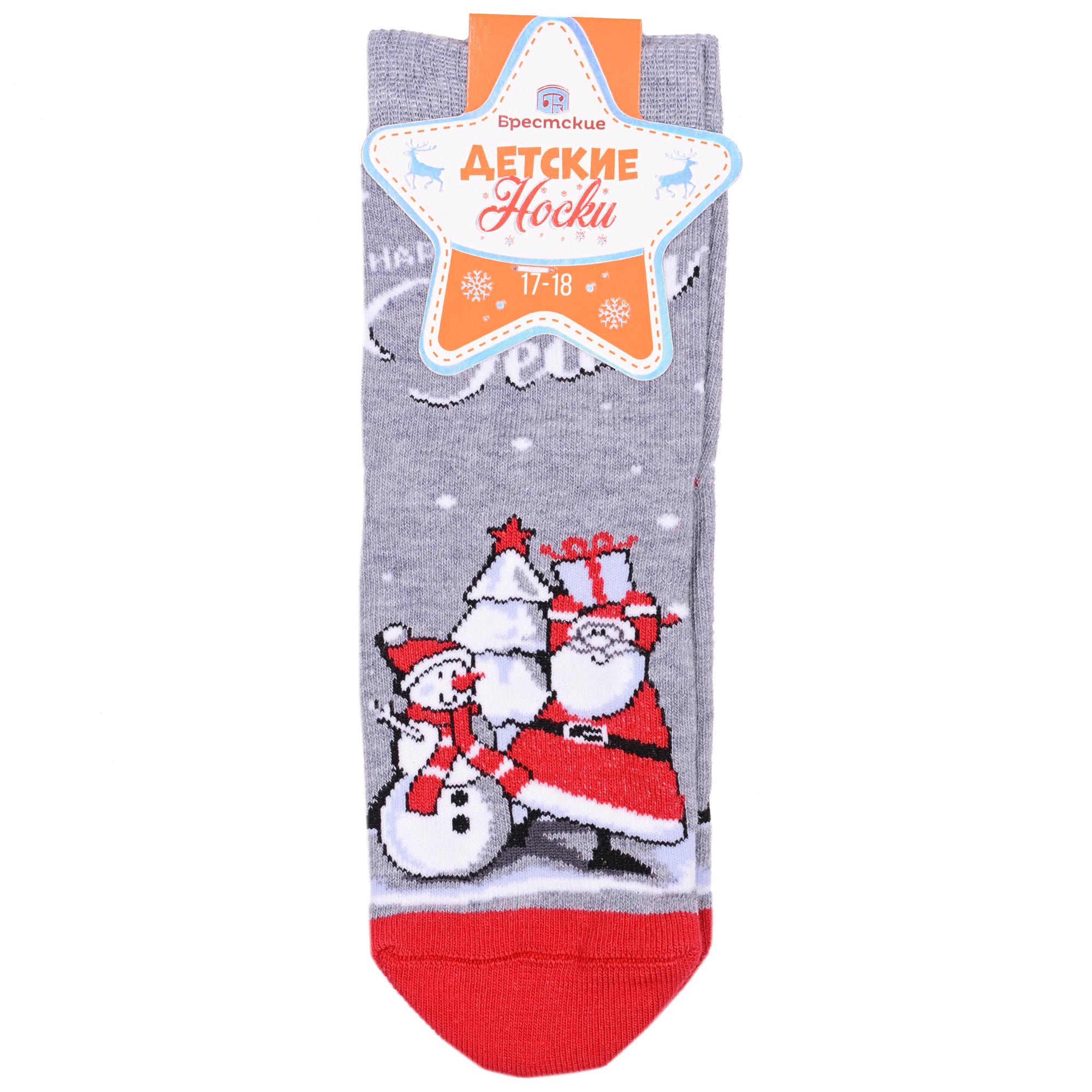 Круглогодичные укороченные детские носки, цвет серый, повседневные, возможно бесшовные, принт (рисунок): новый год, надписи, контрастные пятка / мысок / резинка, зимний, с узором, состав: 72% хлопок, 26% полиамид, 2% эластан, арт. 20С3079. Производитель «Брестский чулочный комбинат ОАО, Беларусь» под брендом «Брестские (бчк)».