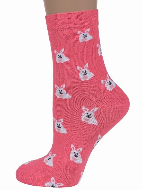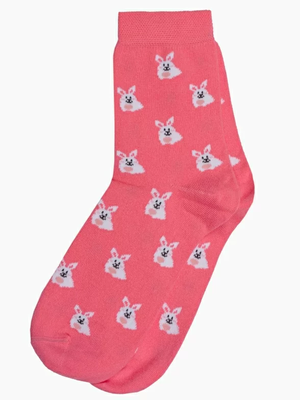 Детские носки связаны из хлопка с добавлением полиамида и эластана. Модель от Бресткого Чулочного Комбината украшена принтом в виде зайчиков.