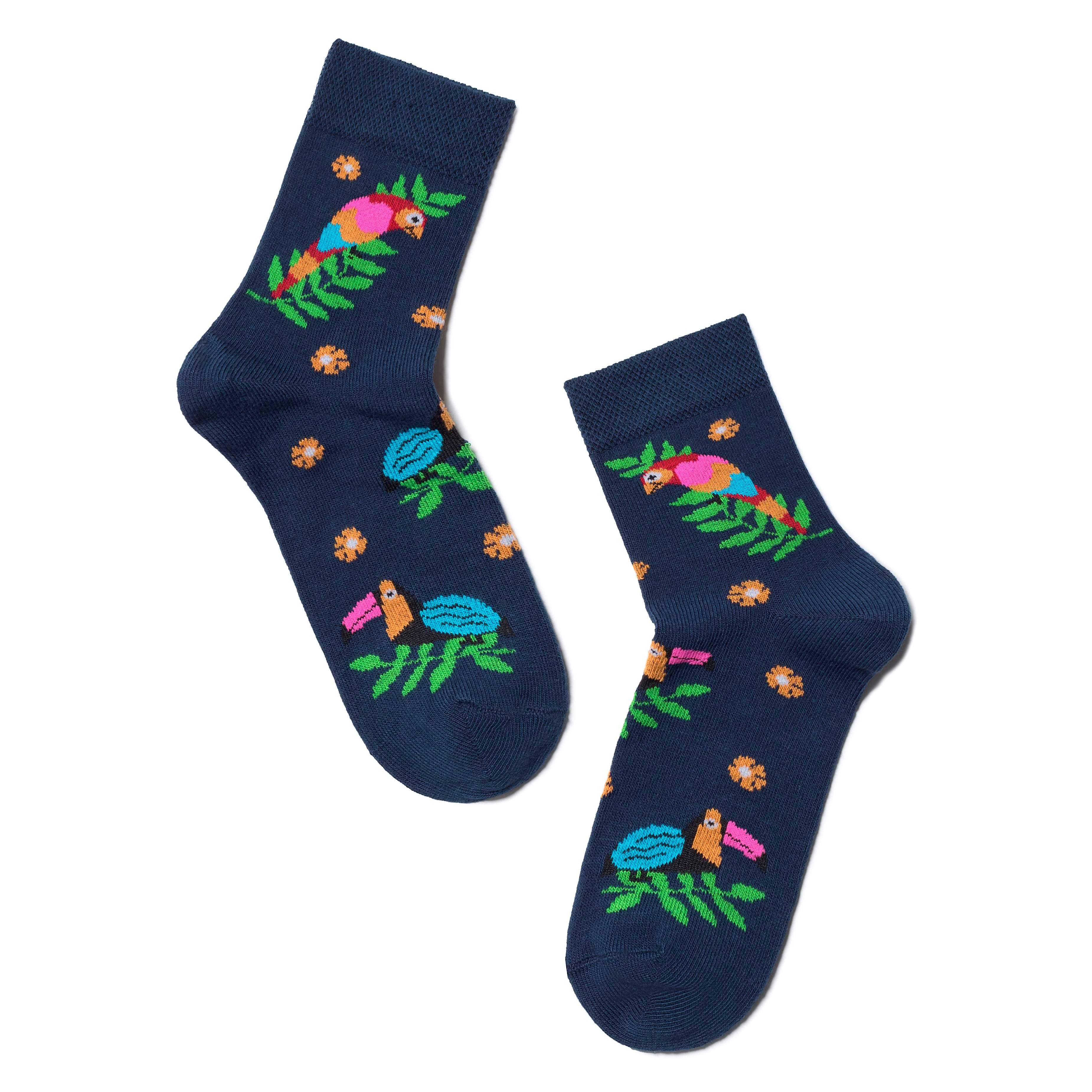 Круглогодичные укороченные детские носки, цвет темно-синий, повседневные, шов обычный (не бесшовные), принт (рисунок): животные, с узором, крупные контрастные рисунки, состав: 70% хлопок, 28% полиамид, 2% эластан, арт. 14С3081. Производитель «Брестский чулочный комбинат ОАО, Беларусь» под брендом «Брестские (бчк)».