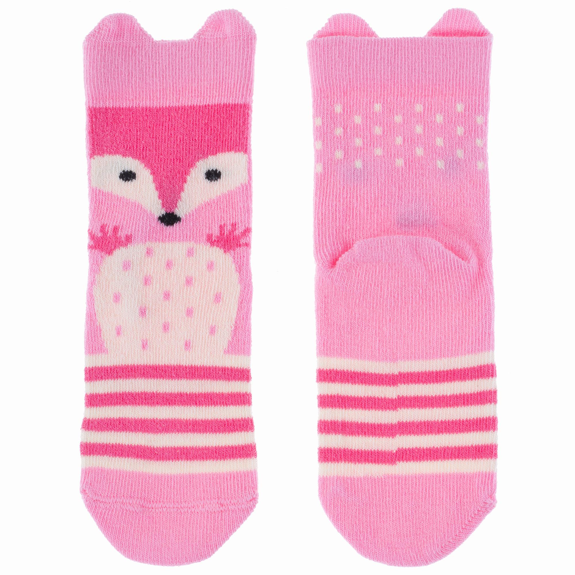 Круглогодичные укороченные детские носки, цвет розовый, повседневные, шов обычный (не бесшовные), принт (рисунок): животные, с узором, крупные контрастные рисунки, состав: 75% хлопок, 23% полиамид, 2% эластан, арт. 18С3086. Производитель «Брестский чулочный комбинат ОАО, Беларусь» под брендом «Брестские (бчк)».