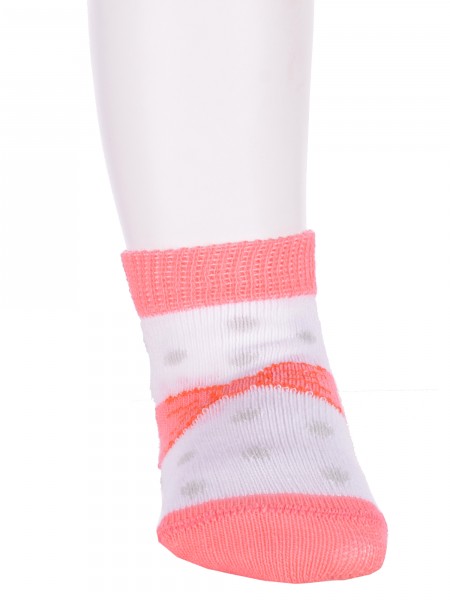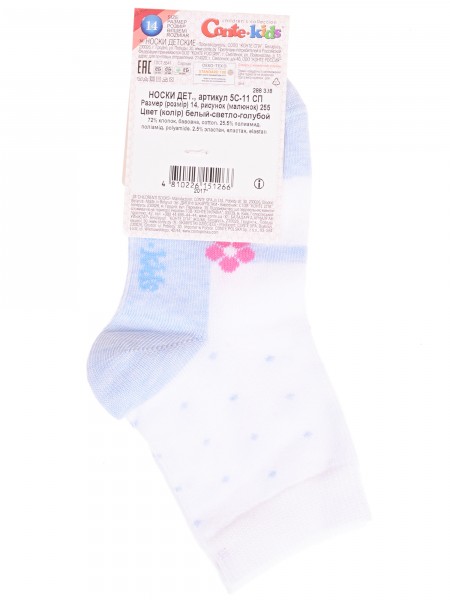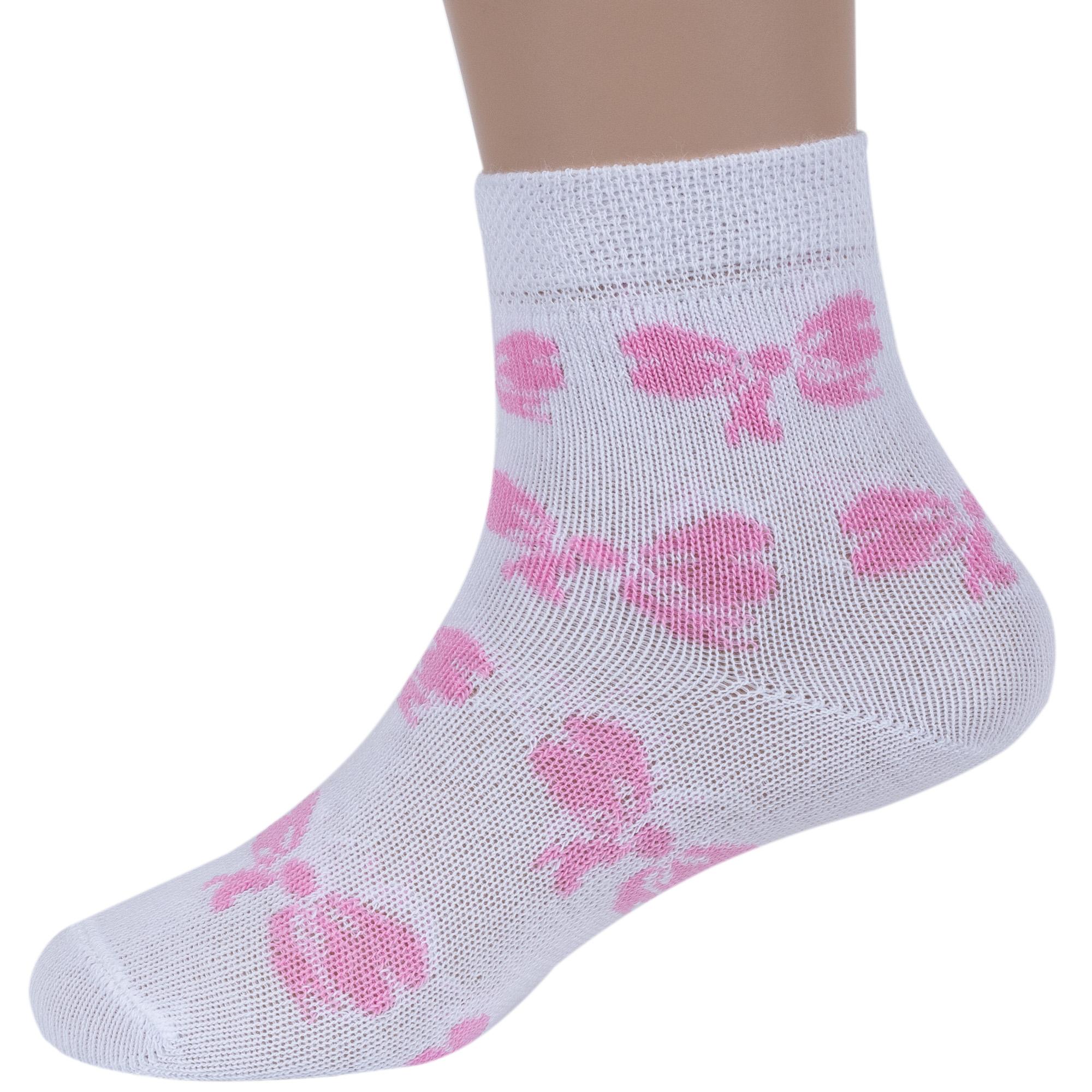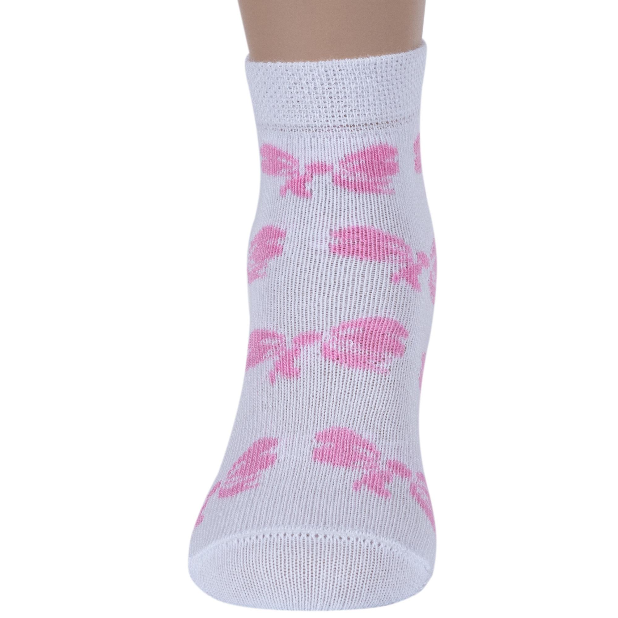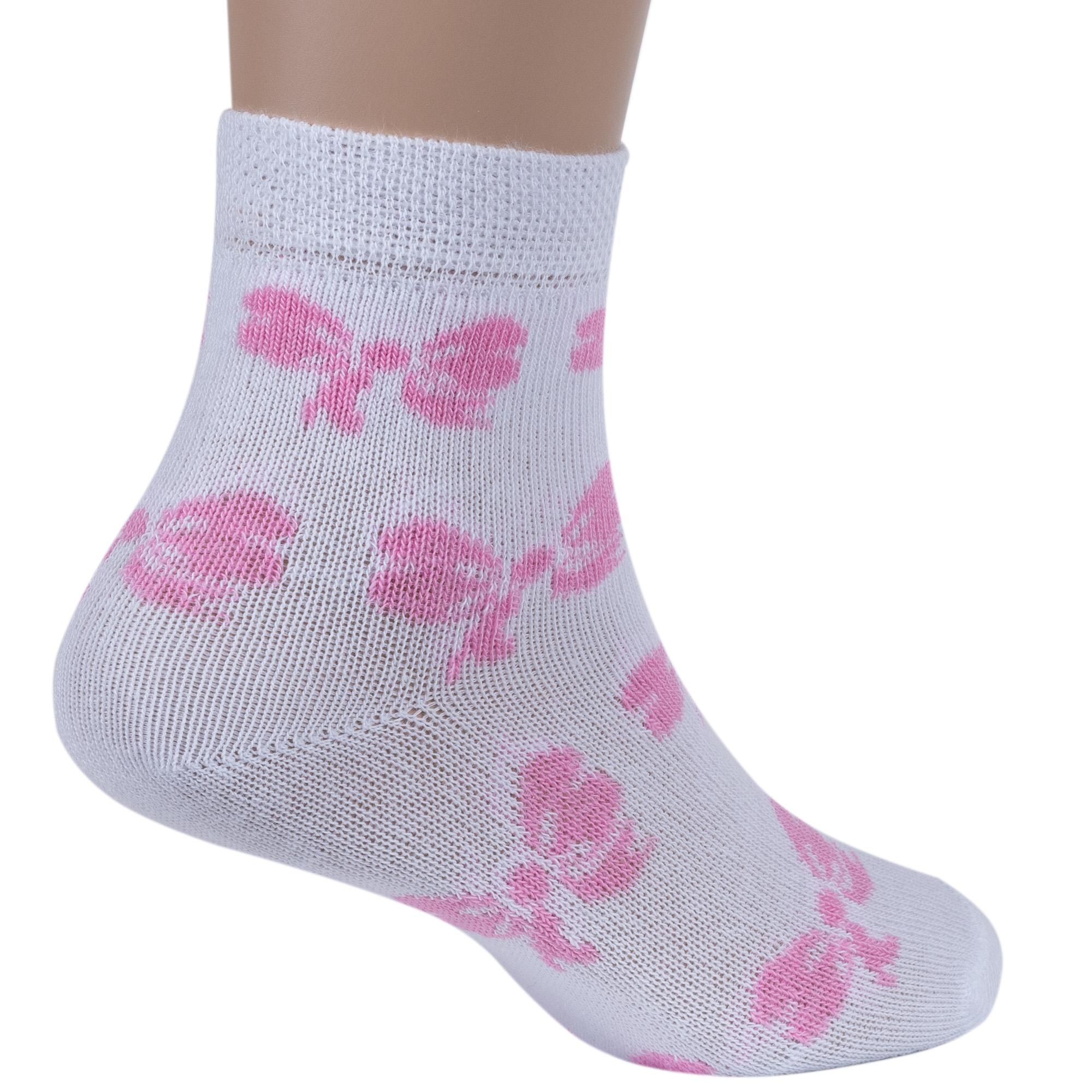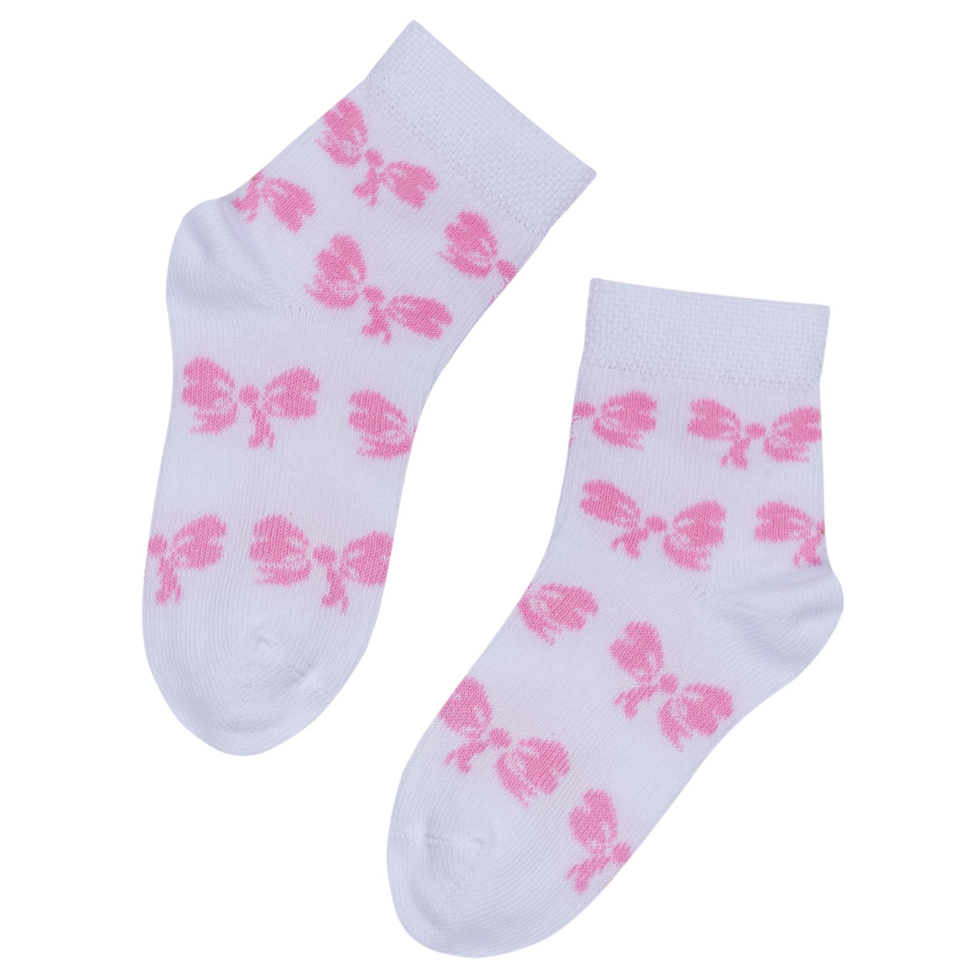 Круглогодичные укороченные детские носки, цвет белый, повседневные, шов обычный (не бесшовные), принт (рисунок): бабочки / бантики, с узором, состав: 75% хлопок, 23% полиамид, 2% эластан, арт. 14С3081. Производитель «Брестский чулочный комбинат ОАО, Беларусь» под брендом «Брестские (бчк)».