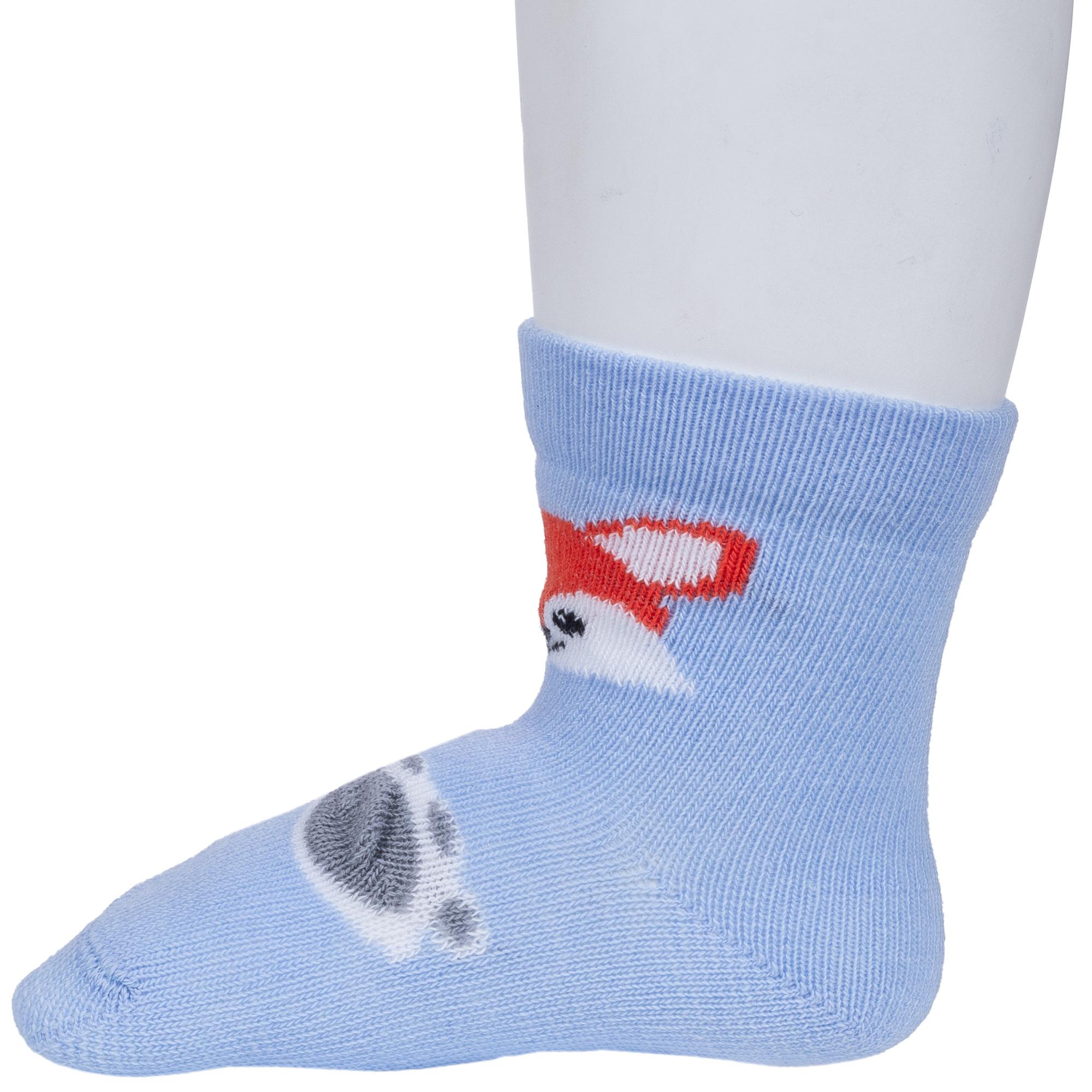 Круглогодичные укороченные детские носки, цвет голубой, повседневные, шов обычный (не бесшовные), принт (рисунок): животные, с узором, крупные контрастные рисунки, состав: 75% хлопок, 23% полиамид, 2% эластан, арт. 18С3086. Производитель «Брестский чулочный комбинат ОАО, Беларусь» под брендом «Брестские (бчк)».