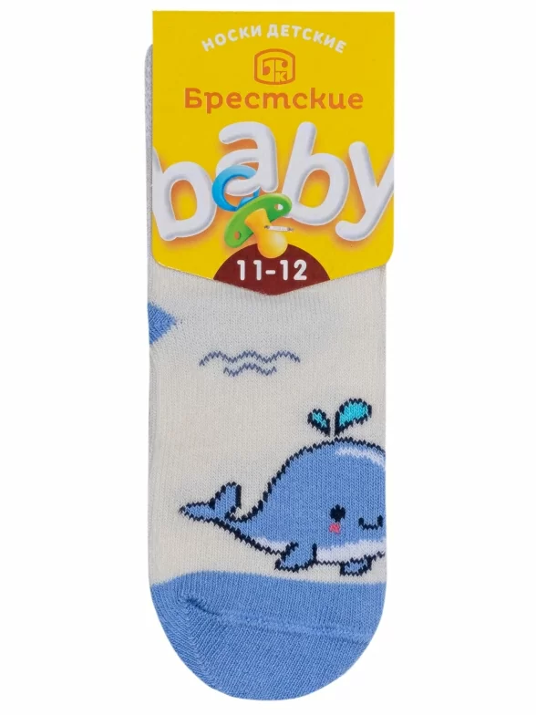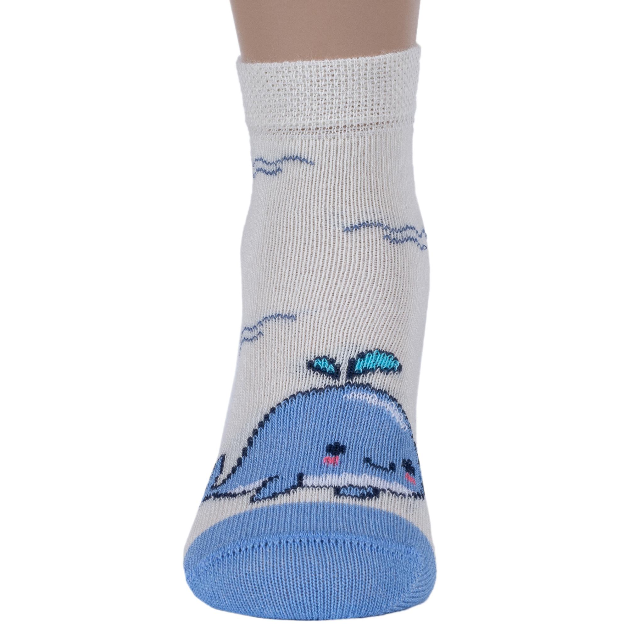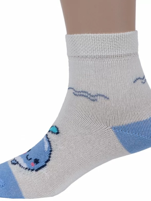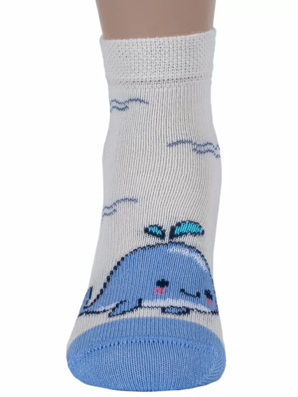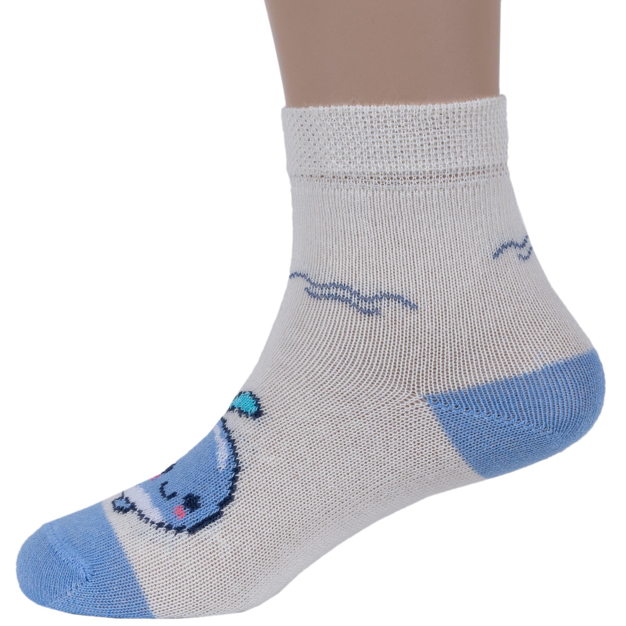 Круглогодичные укороченные детские носки, цвет белый, повседневные, шов обычный (не бесшовные), принт (рисунок): животные, с узором, состав: 75% хлопок, 23% полиамид, 2% эластан, арт. 14С3081. Производитель «Брестский чулочный комбинат ОАО, Беларусь» под брендом «Брестские (бчк)».