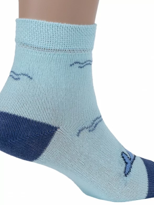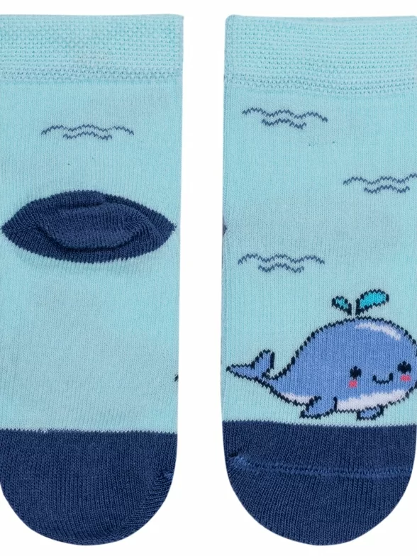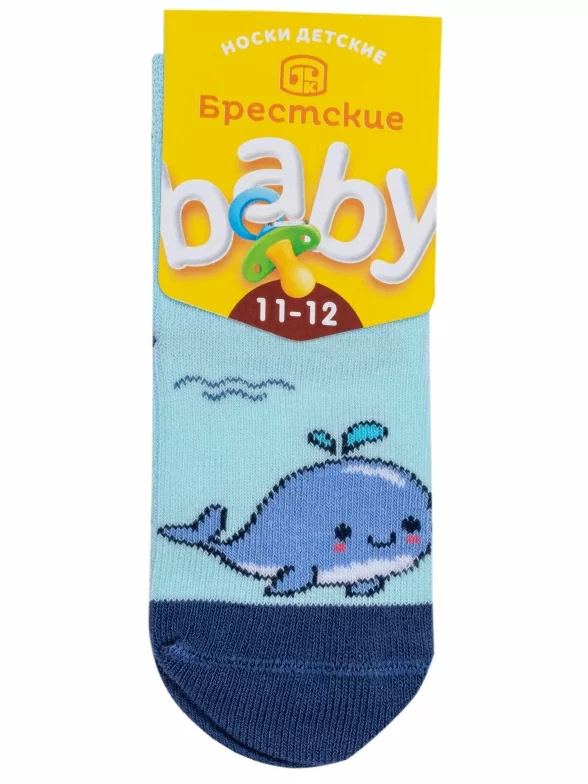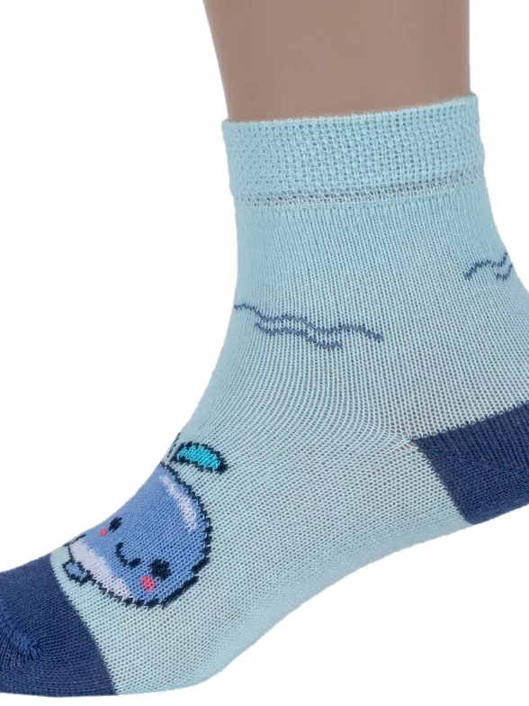 Круглогодичные укороченные детские носки, цвет бирюзовый, повседневные, шов обычный (не бесшовные), принт (рисунок): животные, с узором, состав: 75% хлопок, 23% полиамид, 2% эластан, арт. 14С3081. Производитель «Брестский чулочный комбинат ОАО, Беларусь» под брендом «Брестские (бчк)».