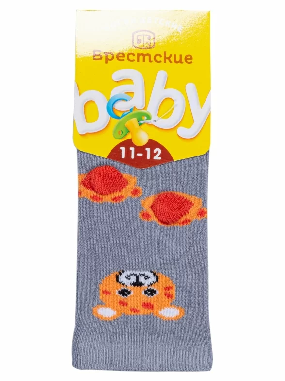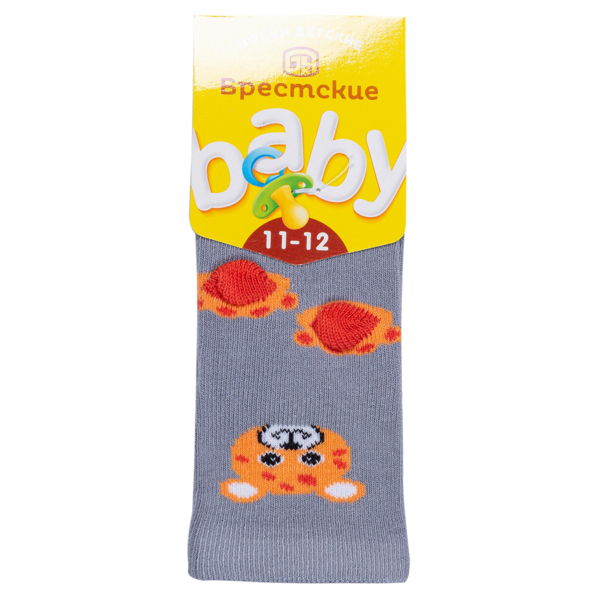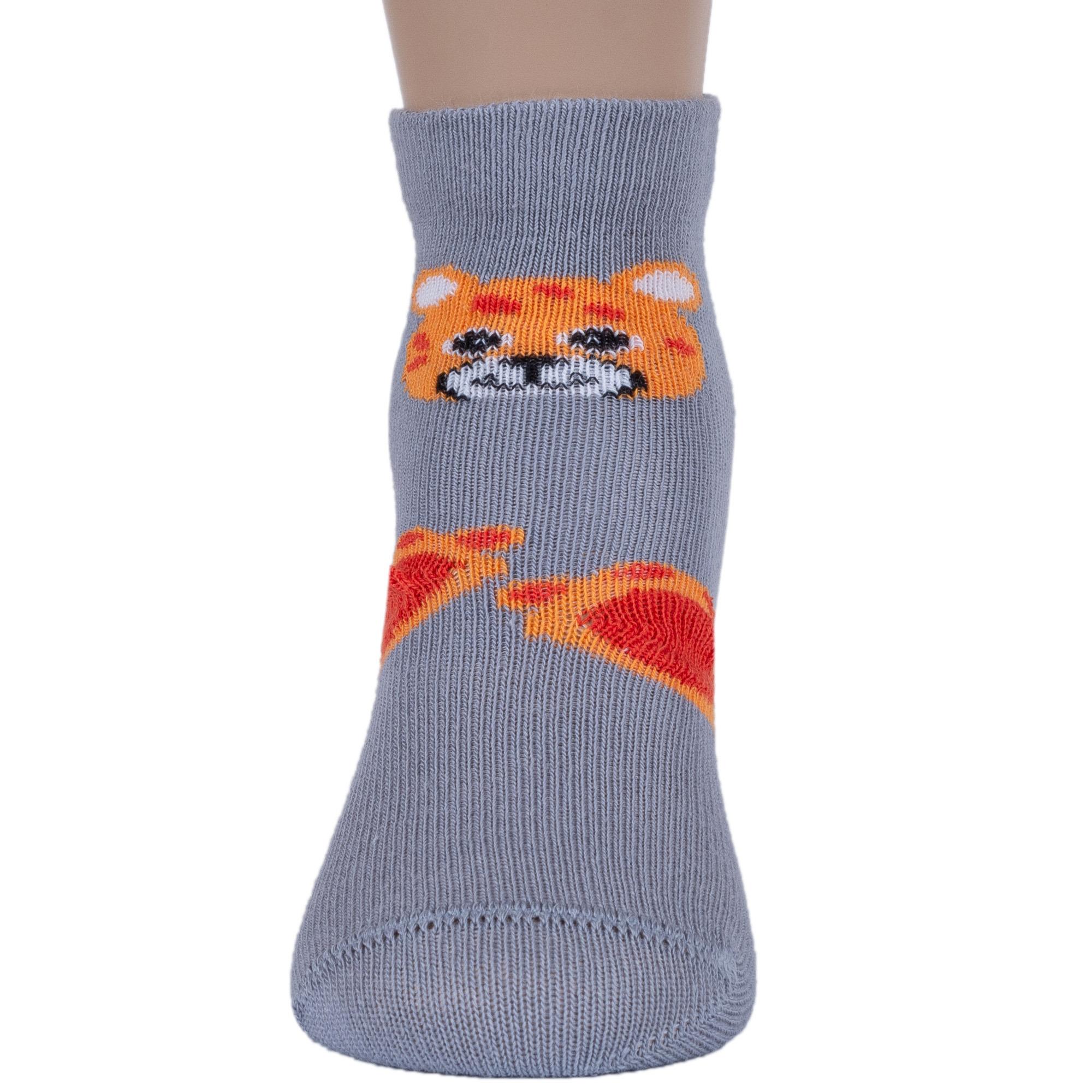 Круглогодичные укороченные детские носки, цвет серый, повседневные, шов обычный (не бесшовные), принт (рисунок): животные, с узором, крупные контрастные рисунки, состав: 75% хлопок, 23% полиамид, 2% эластан, арт. 18С3086. Производитель «Брестский чулочный комбинат ОАО, Беларусь» под брендом «Брестские (бчк)».