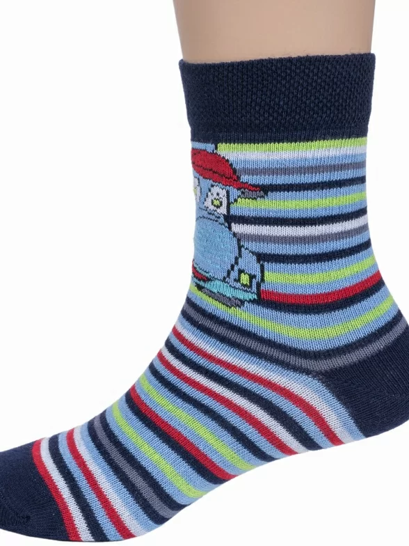 Симпатичные детские носки в тонкую цветную полоску, дополненную мультяшным принтом. Однотонные элементы выгодно дополняют расцветку. Носки сделаны из мягкого приятного трикотажа и отличаются удобной резинкой.