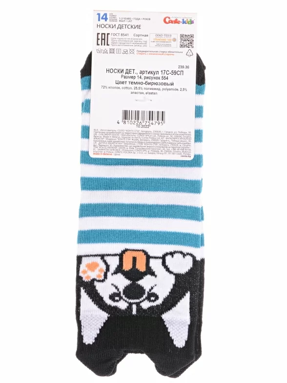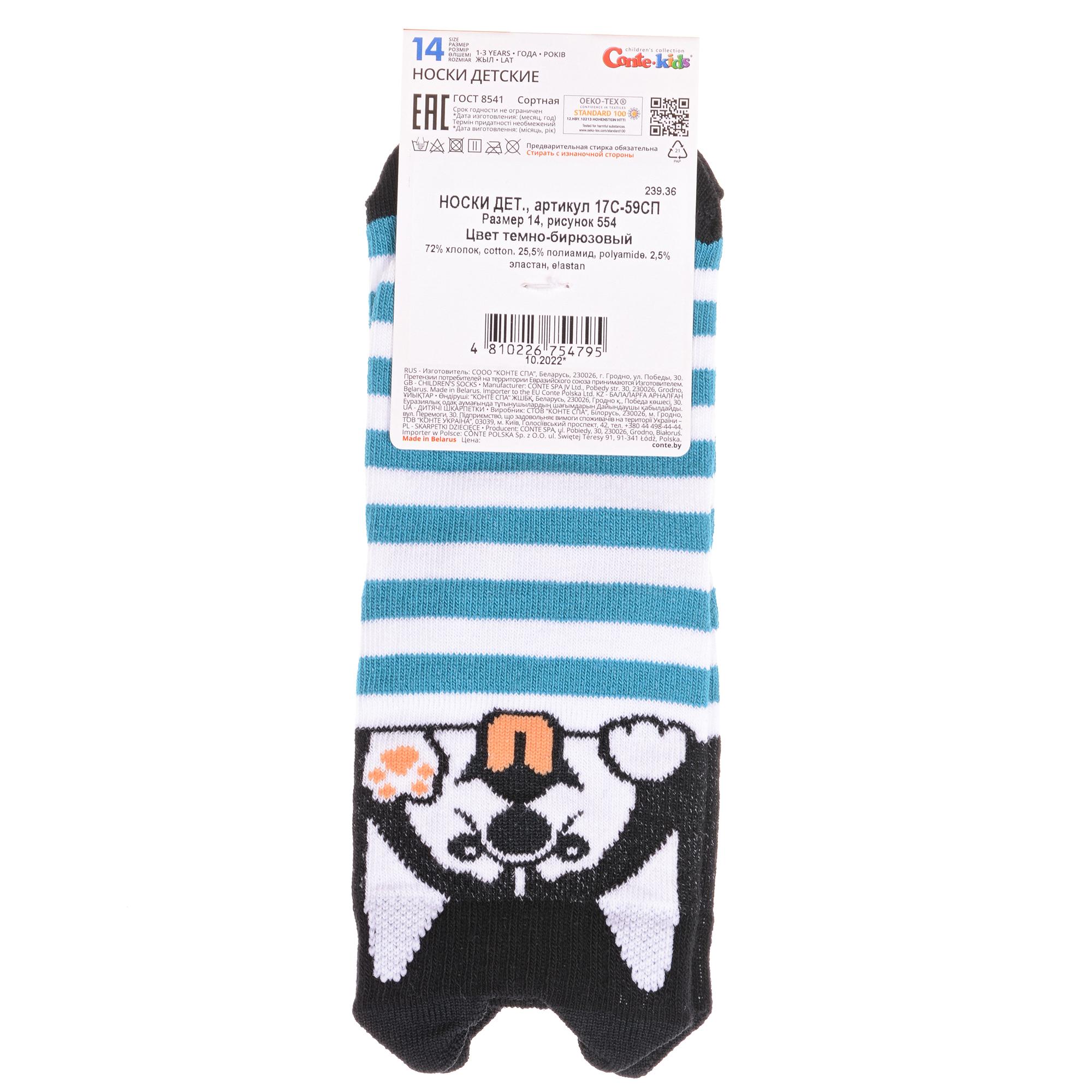 Круглогодичные укороченные детские носки, цвет бирюзовый, прикольные, состав: 72% хлопок, 25,5% полиамид, 2,5% эластан, фабричный артикул 17С-59СП. Производитель «Conte, Беларусь» под брендом «Conte».