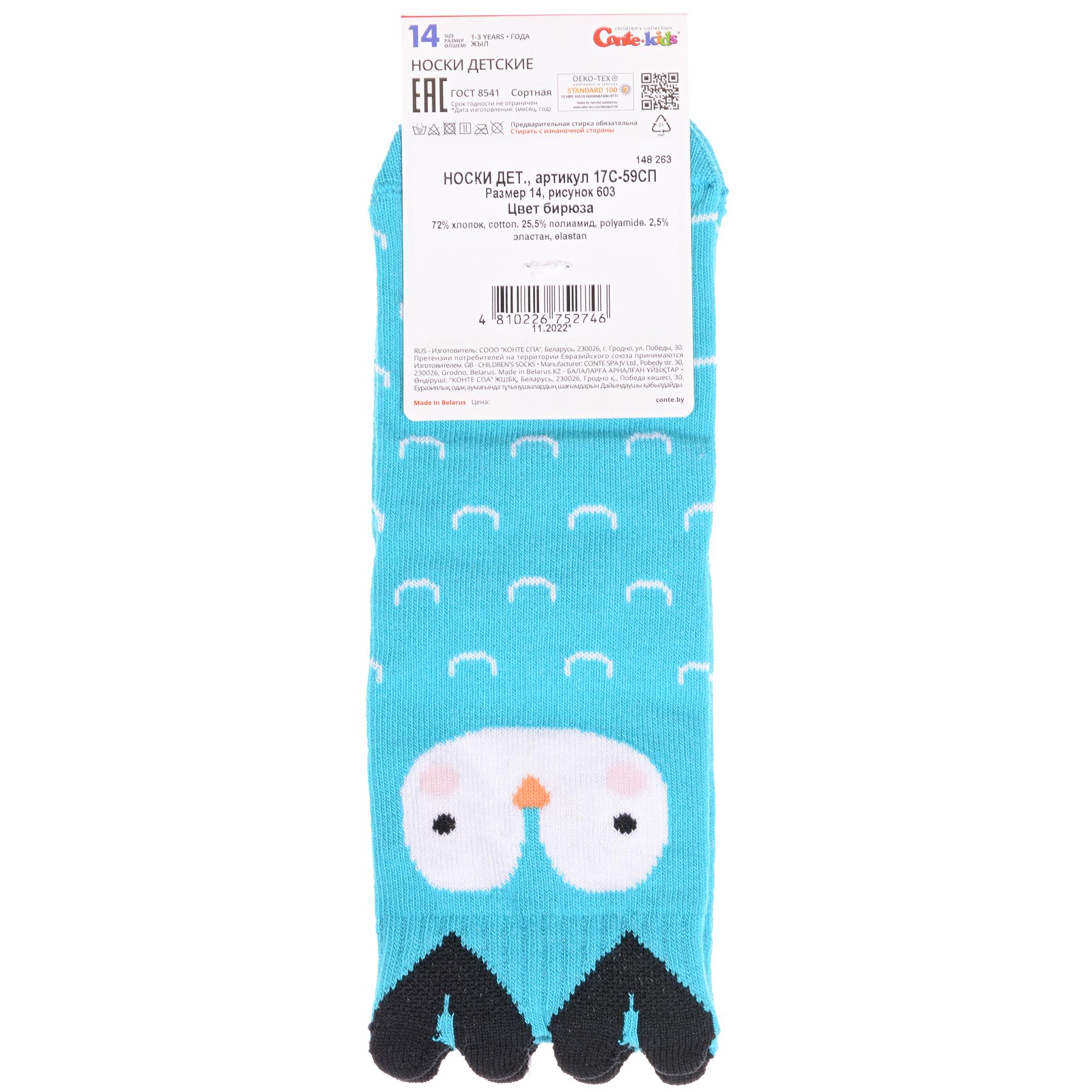 Круглогодичные укороченные детские носки, цвет бирюзовый, прикольные, состав: 72% хлопок, 25,5% полиамид, 2,5% эластан, фабричный артикул 17С-59СП. Производитель «Conte, Беларусь» под брендом «Conte».
