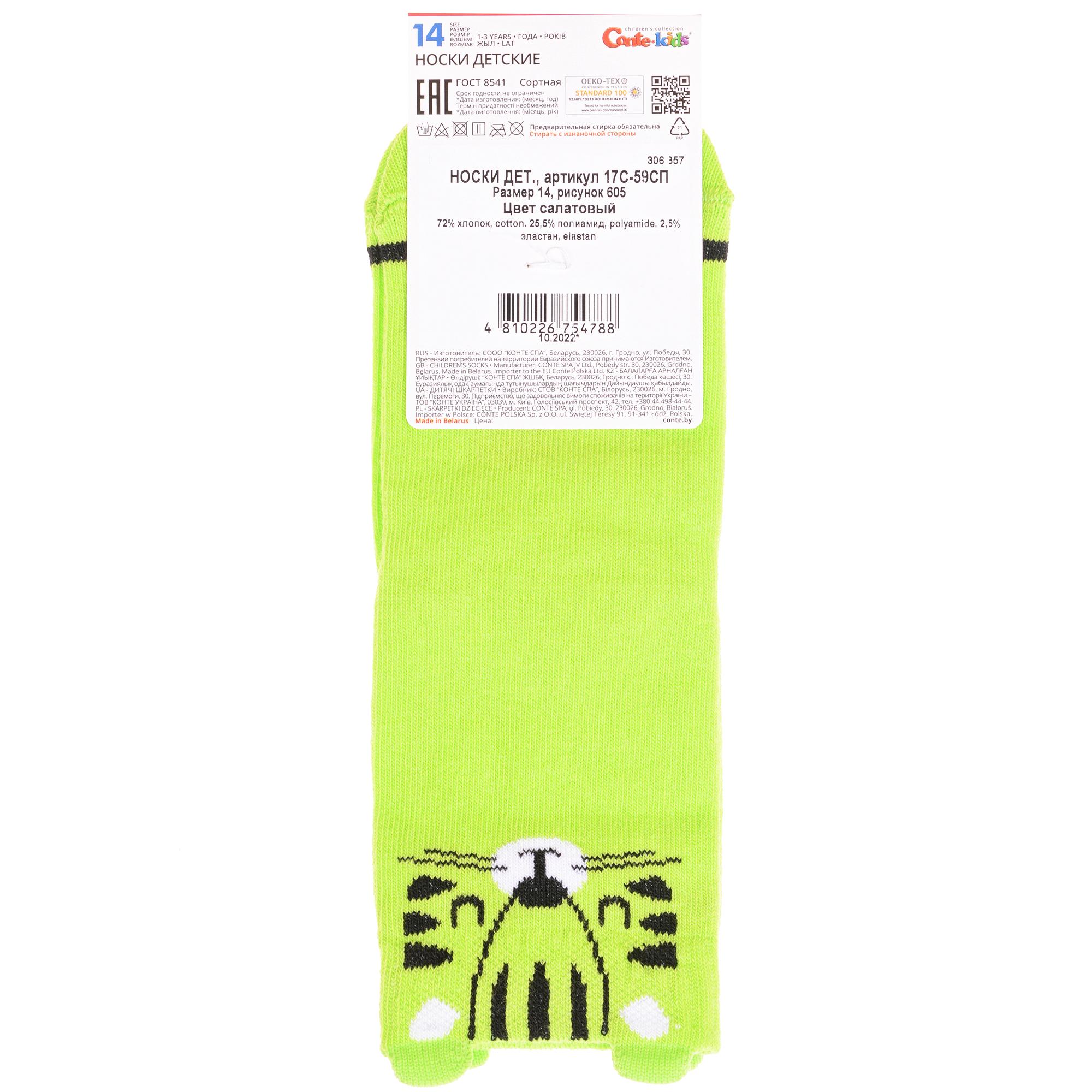 Круглогодичные укороченные детские носки, цвет салатовый, прикольные, состав: 72% хлопок, 25,5% полиамид, 2,5% эластан, фабричный артикул 17С-59СП. Производитель «Conte, Беларусь» под брендом «Conte».