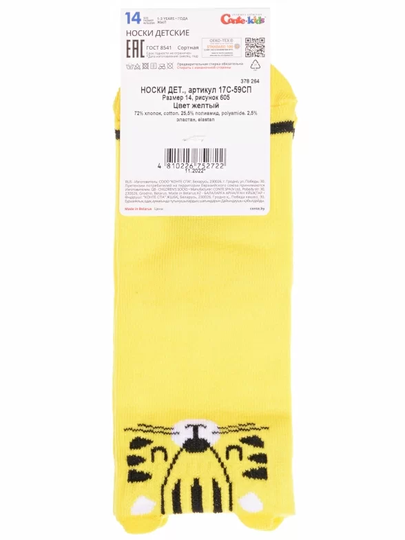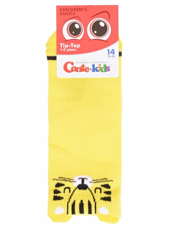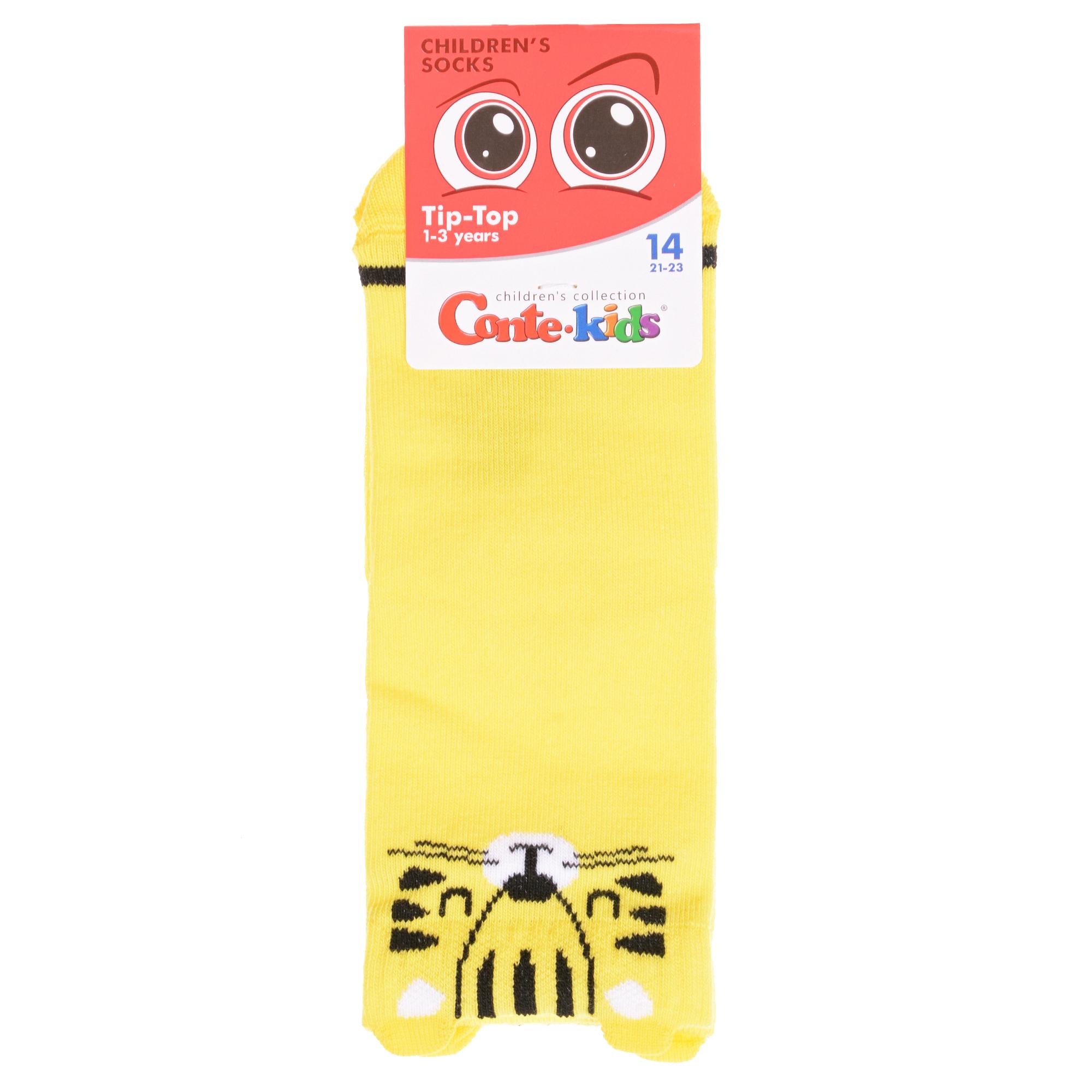 Круглогодичные укороченные детские носки, цвет желтый, прикольные, состав: 72% хлопок, 25,5% полиамид, 2,5% эластан, фабричный артикул 17С-59СП. Производитель «Conte, Беларусь» под брендом «Conte».