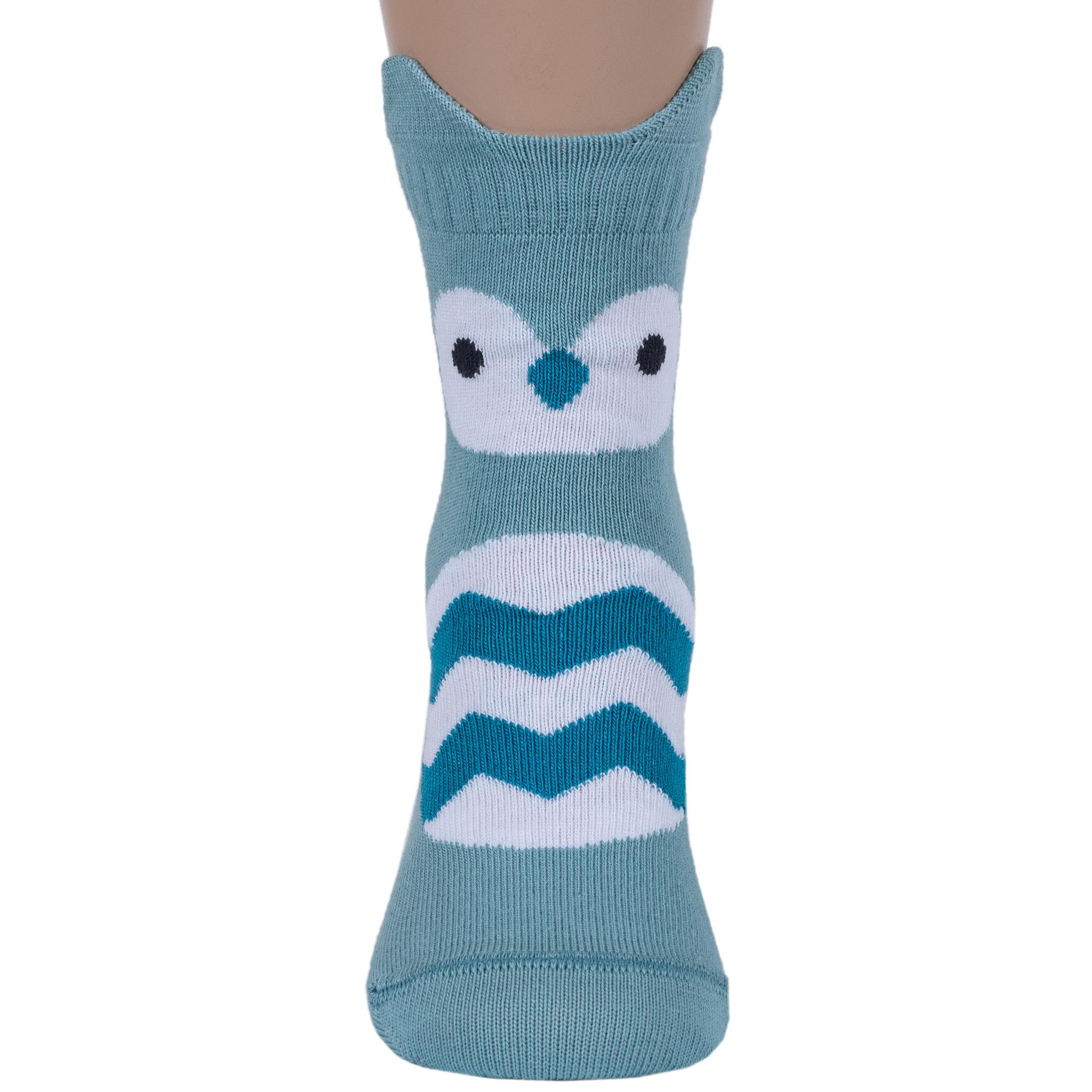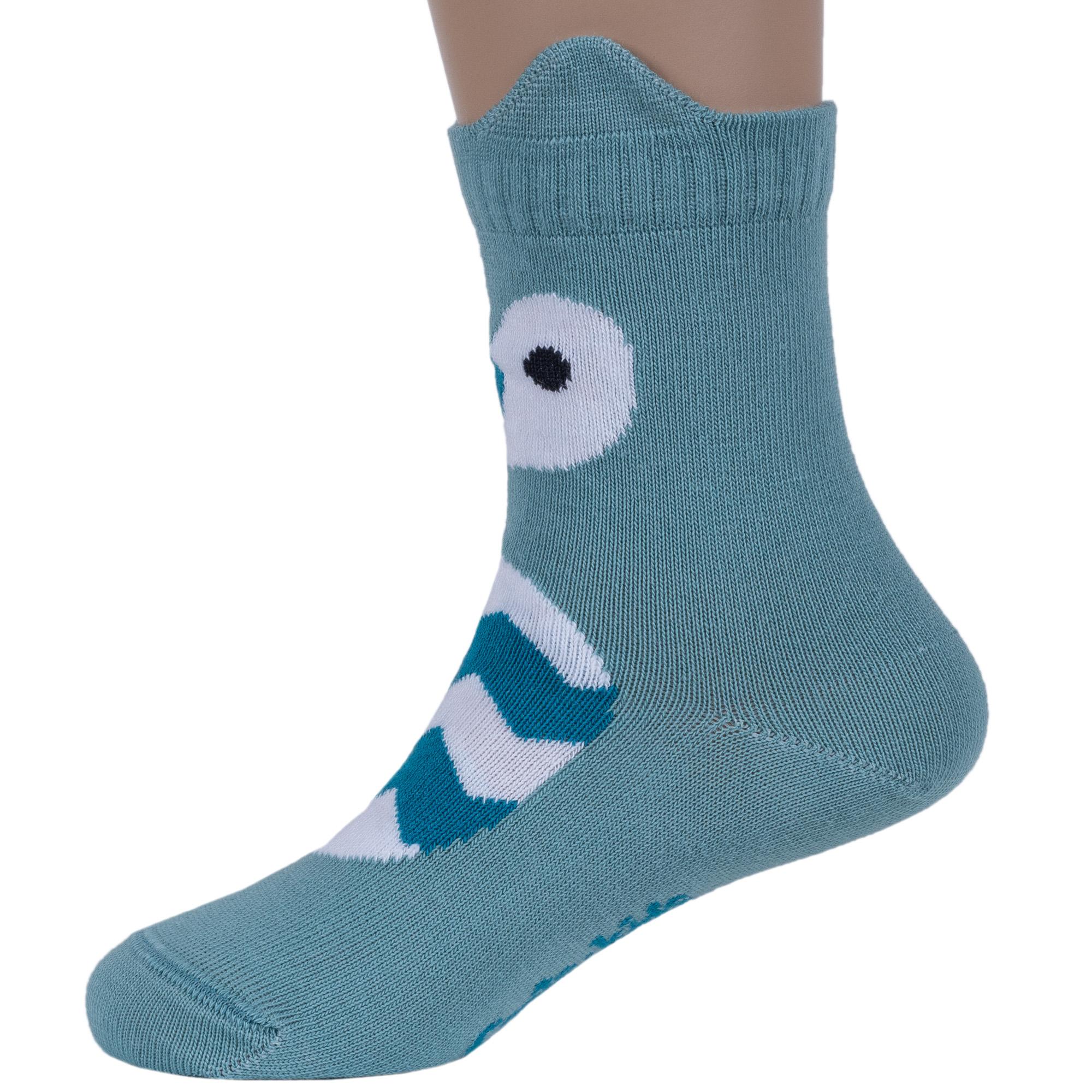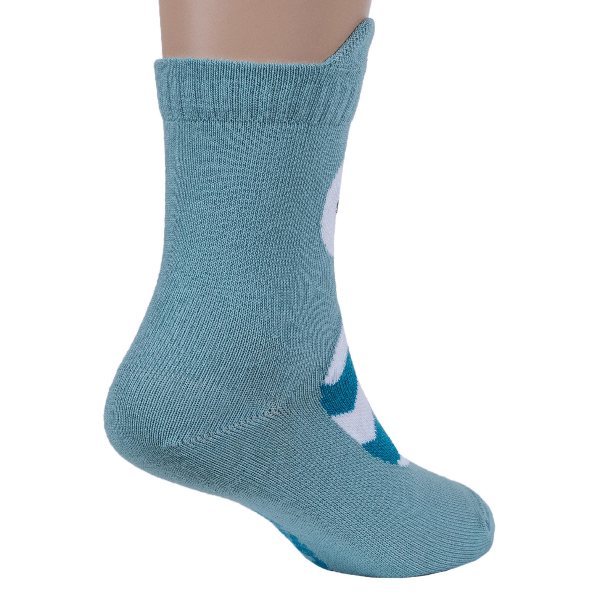 Круглогодичные укороченные детские носки, цвет бирюзовый, повседневные, шов кеттельный (бесшовная технология), принт (рисунок): животные, с узором, крупные контрастные рисунки, состав: 72% хлопок, 25.5% полиамид, 2.5% эластан, арт. 17С-59СП. Производитель «Conte, Беларусь» под брендом «Conte».