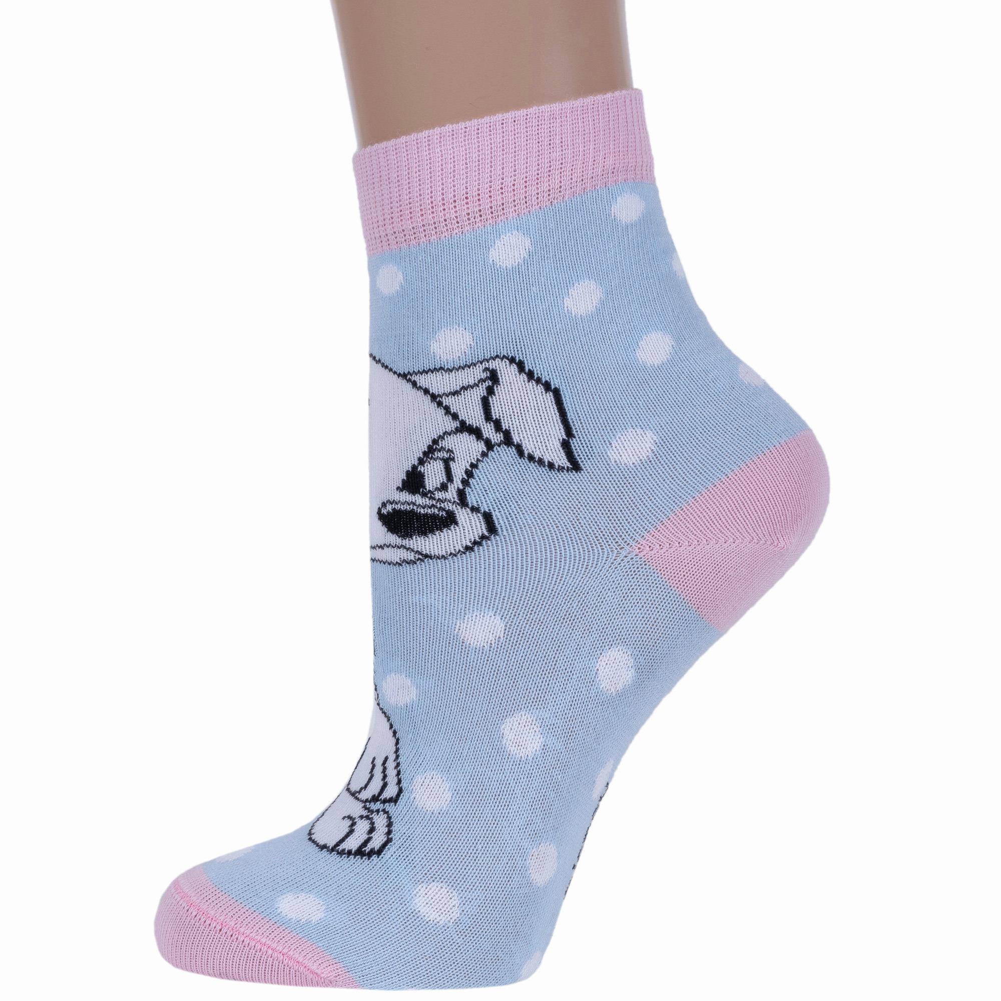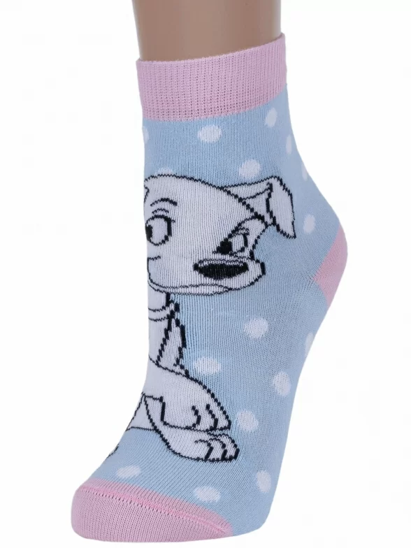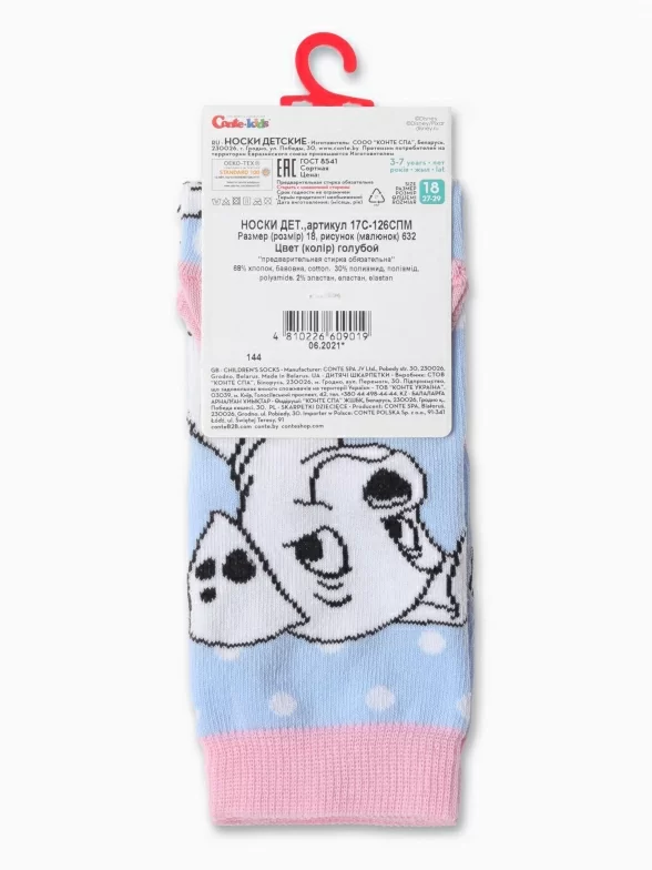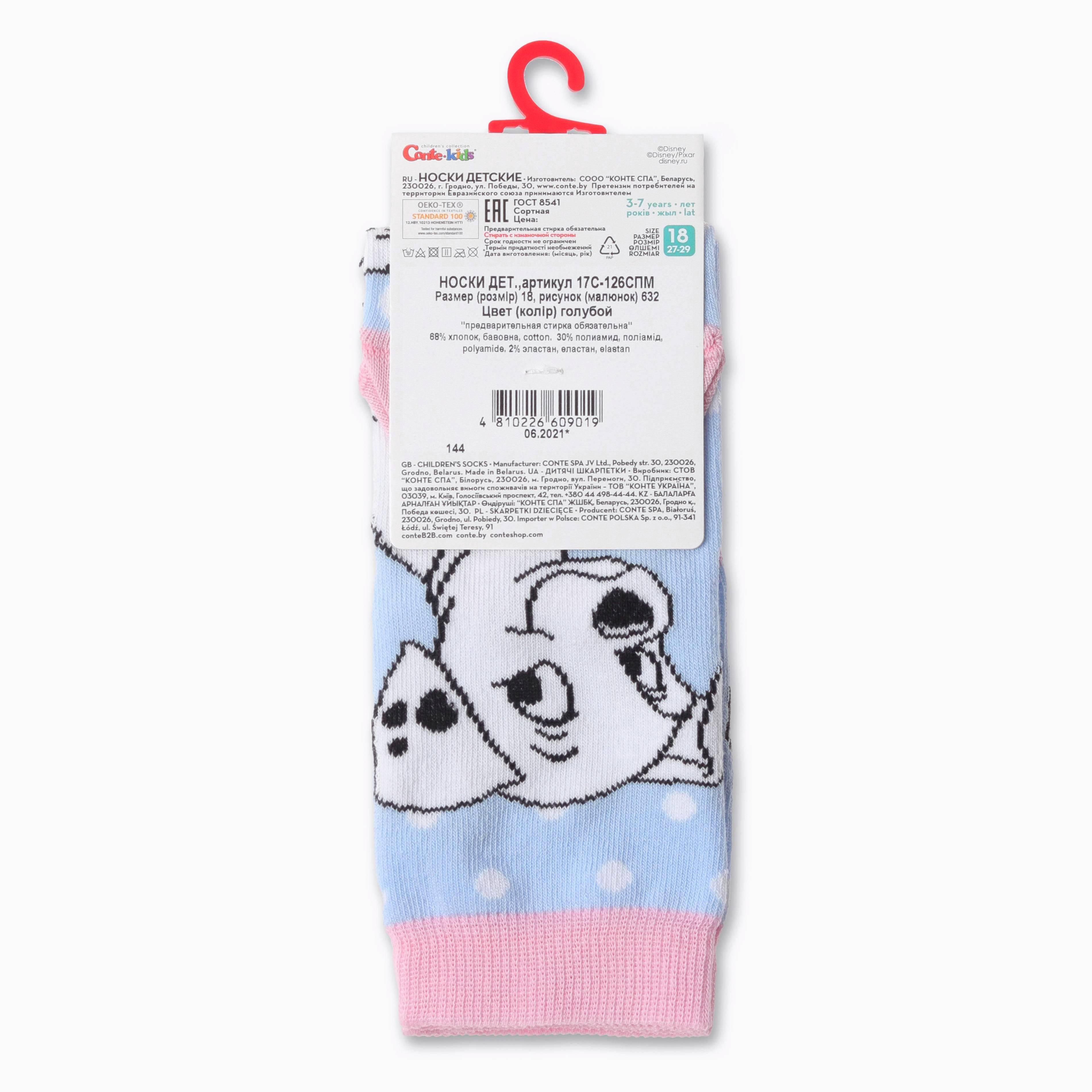 Круглогодичные укороченные детские носки, цвет голубой, повседневные, шов кеттельный (бесшовная технология), принт (рисунок): фильмы / сериалы / мультики, животные, с узором, крупные контрастные рисунки, состав: 68% хлопок, 30% полиамид, 2% эластан, арт. 17С-126СПМ. Производитель «Conte, Беларусь» под брендом «Conte».