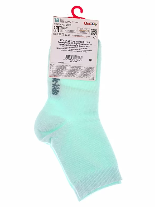 Круглогодичные укороченные детские носки, цвет бирюзовый, классические, состав: 72% хлопок, 25.5% полиамид, 2.5% эластан, фабричный артикул 5С-11СП. Производитель «Conte, Беларусь» под брендом «Conte».