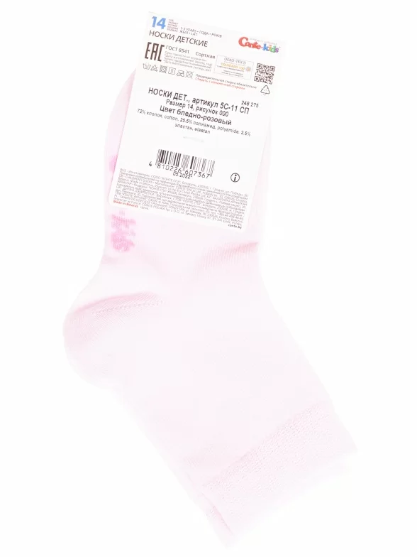 Круглогодичные укороченные детские носки, цвет розовый, классические, состав: 72% хлопок, 25.5% полиамид, 2.5% эластан, фабричный артикул 5С-11СП. Производитель «Conte, Беларусь» под брендом «Conte».