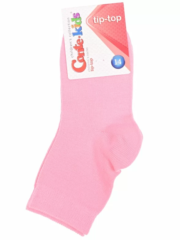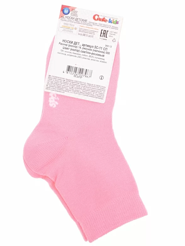 Круглогодичные укороченные детские носки, цвет розовый, классические, шов кеттельный (бесшовная технология), принт (рисунок): однотонный, без рисунков/узоров, состав: 72% хлопок, 25.5% полиамид, 2.5% эластан, арт. 5С-11СП. Производитель «Conte, Беларусь» под брендом «Conte».