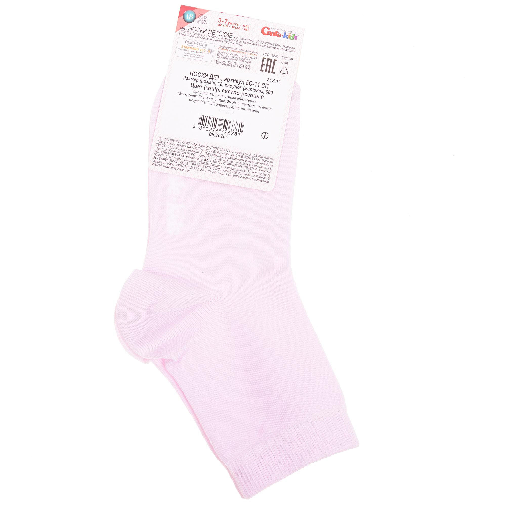 Круглогодичные укороченные детские носки, цвет розовый, классические, шов кеттельный (бесшовная технология), принт (рисунок): однотонный, без рисунков/узоров, состав: 72% хлопок, 25.5% полиамид, 2.5% эластан, арт. 5С-11СП. Производитель «Conte, Беларусь» под брендом «Conte».